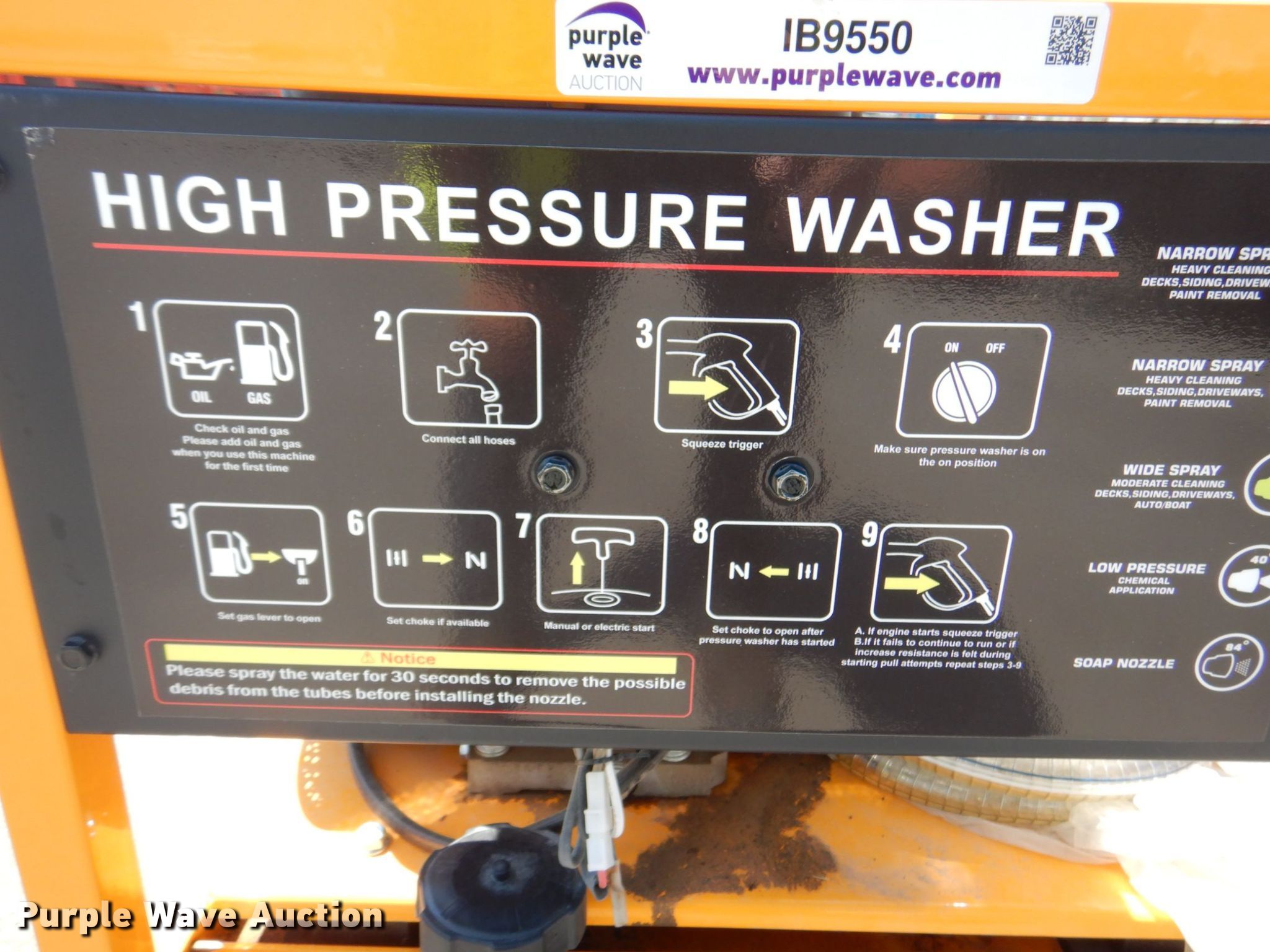 Purple Wave is selling a used Pressure Washer in Nebraska. This item is a 2023 AGT Industrial HPW4000 hot pressure washer with the following: Model: PW420, Cylinders: 1, Fuel type: Gas