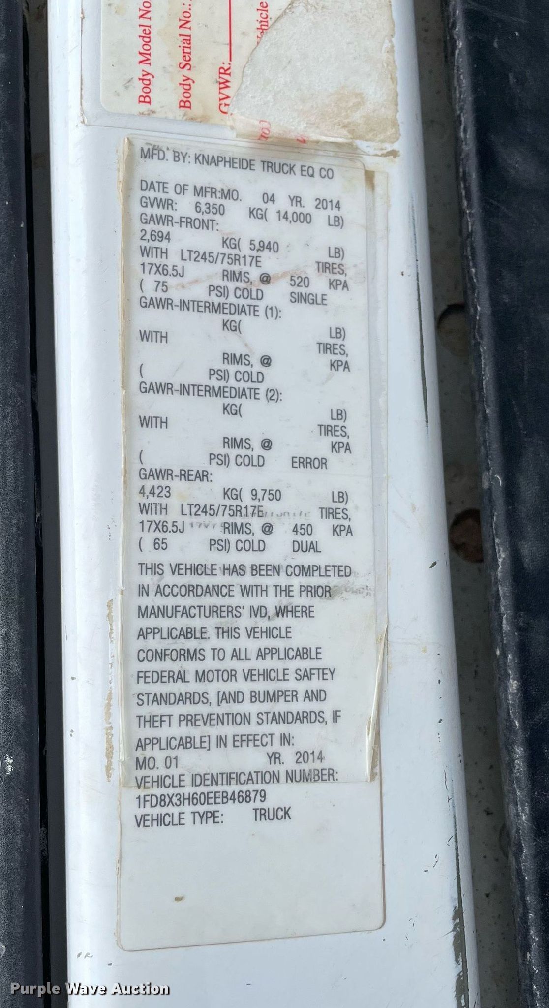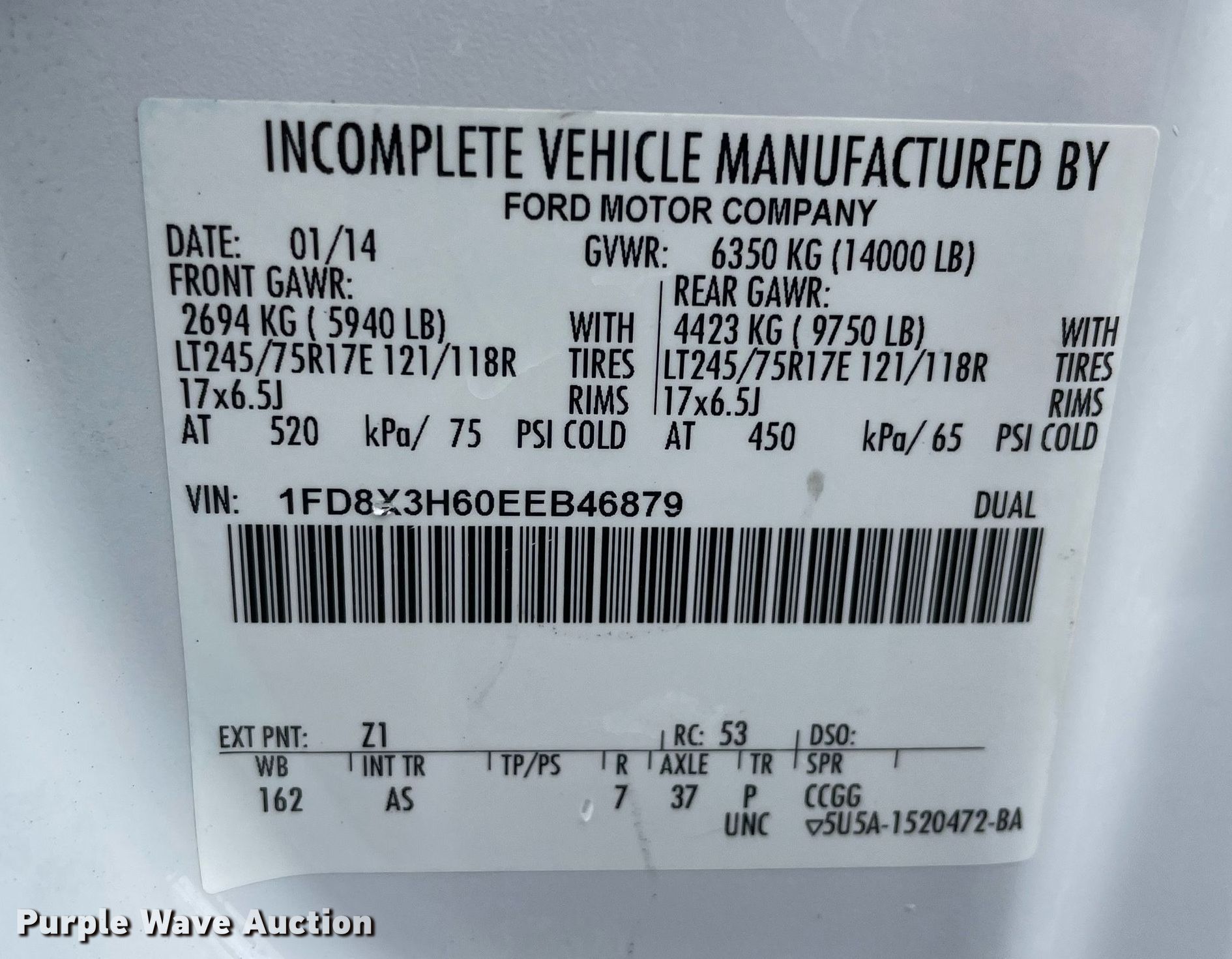 - VIN: 1FD8X3H60EEB46879