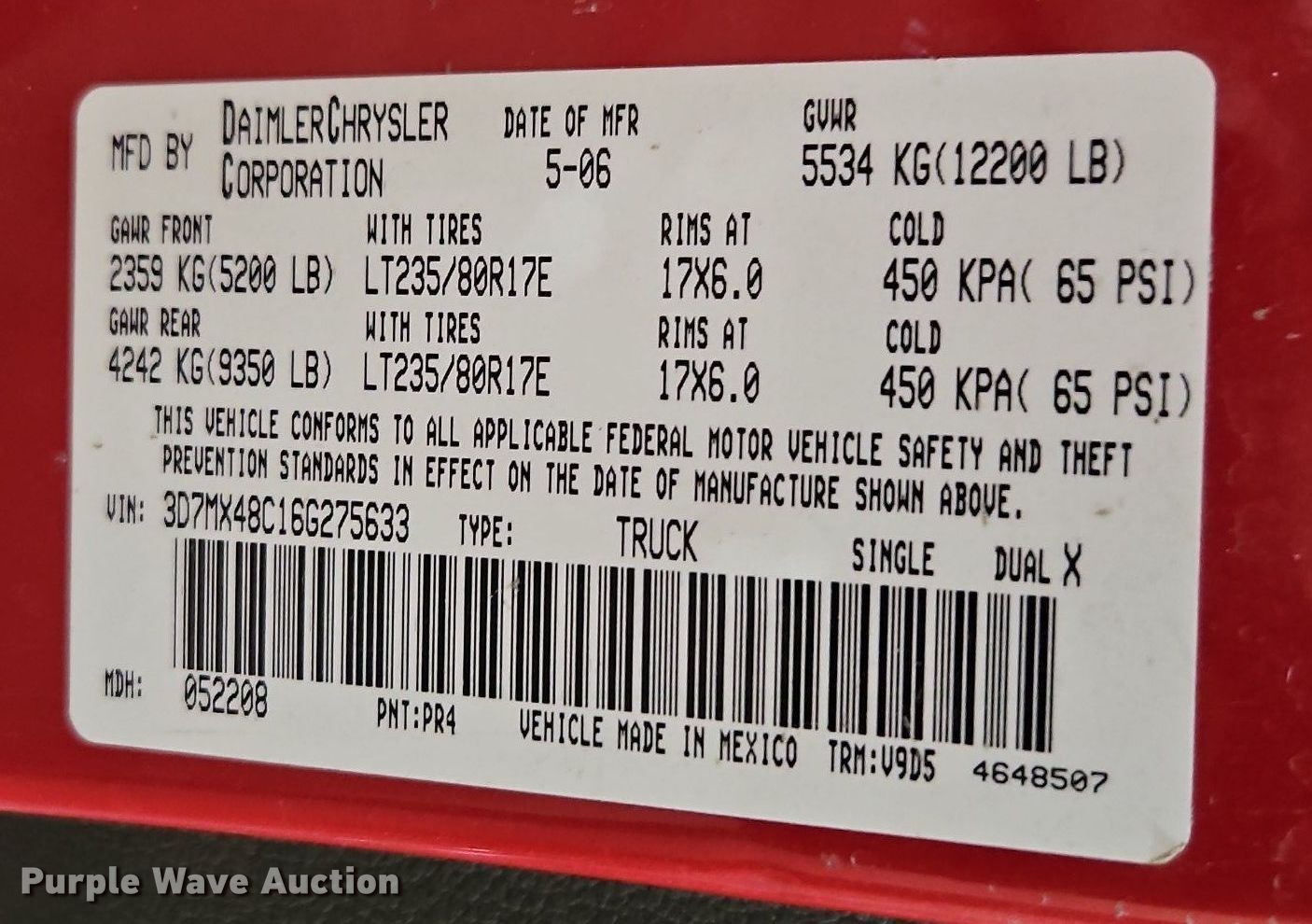 Purple Wave is selling a used 3/4 or 1 Ton Pickup or Van in Kansas. This item is a 2006 Dodge Ram 3500 Crew Cab flatbed pickup truck with the following: Miles: 241,396 on odometer, VIN: 3D7MX48C16G275633