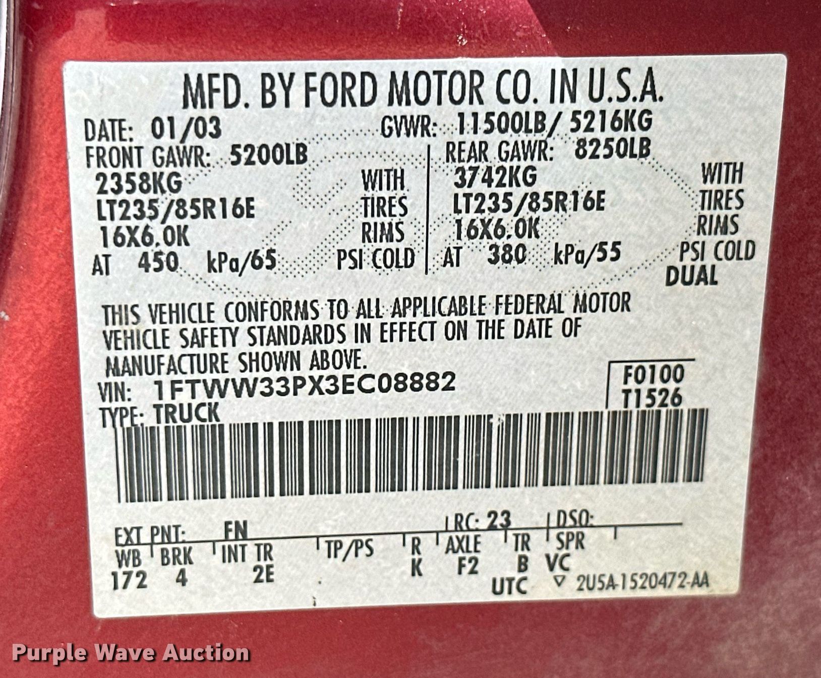 - VIN: 1FTWW33PX3EC08882