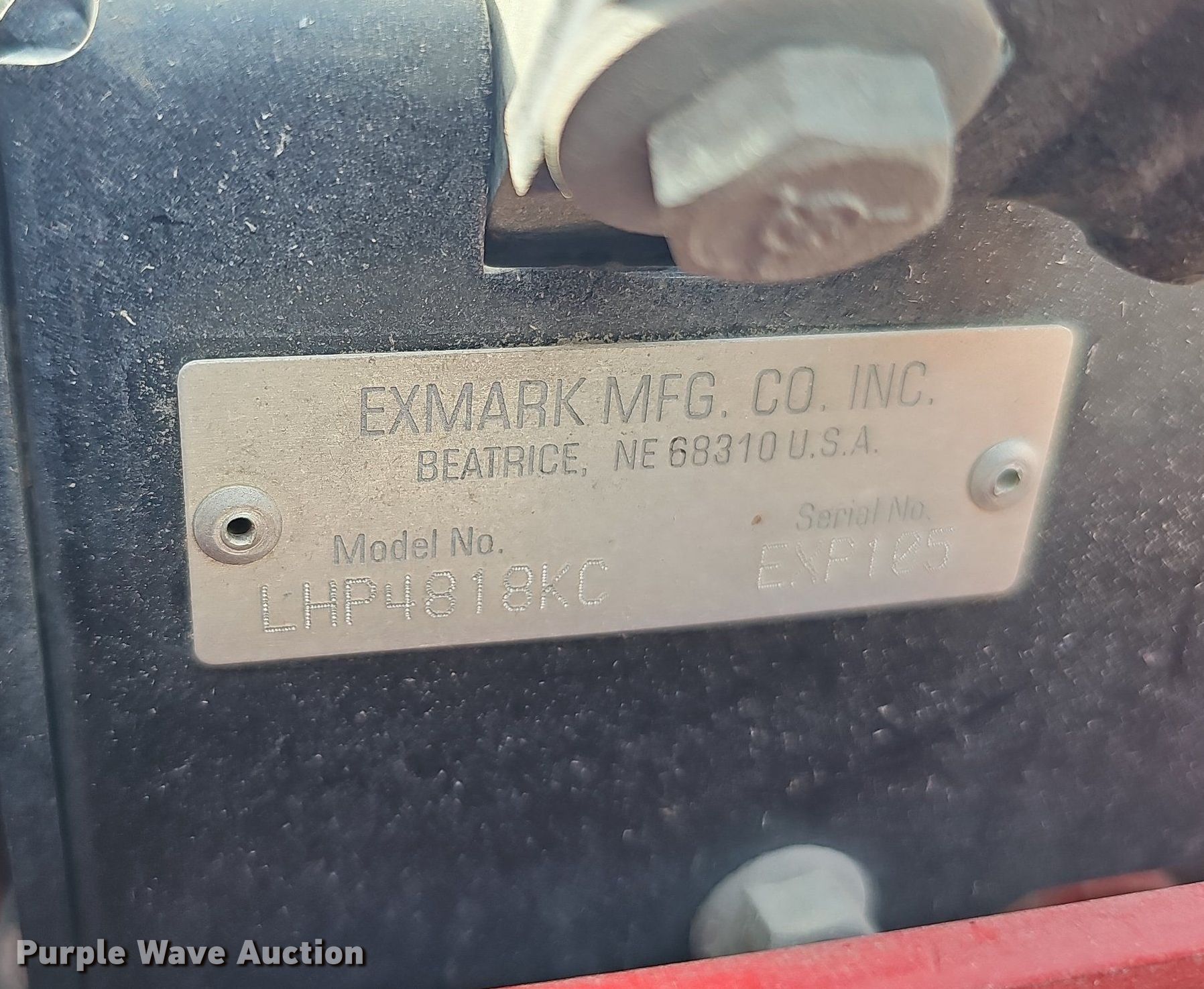 Purple Wave is selling a used Lawn Mower in Nebraska. This item is a Exmark Lazer ZHP LHP4818KC ZTR lawn mower with the following: Hours: 934 on meter, Cutting width: 48", Serial: EXP105