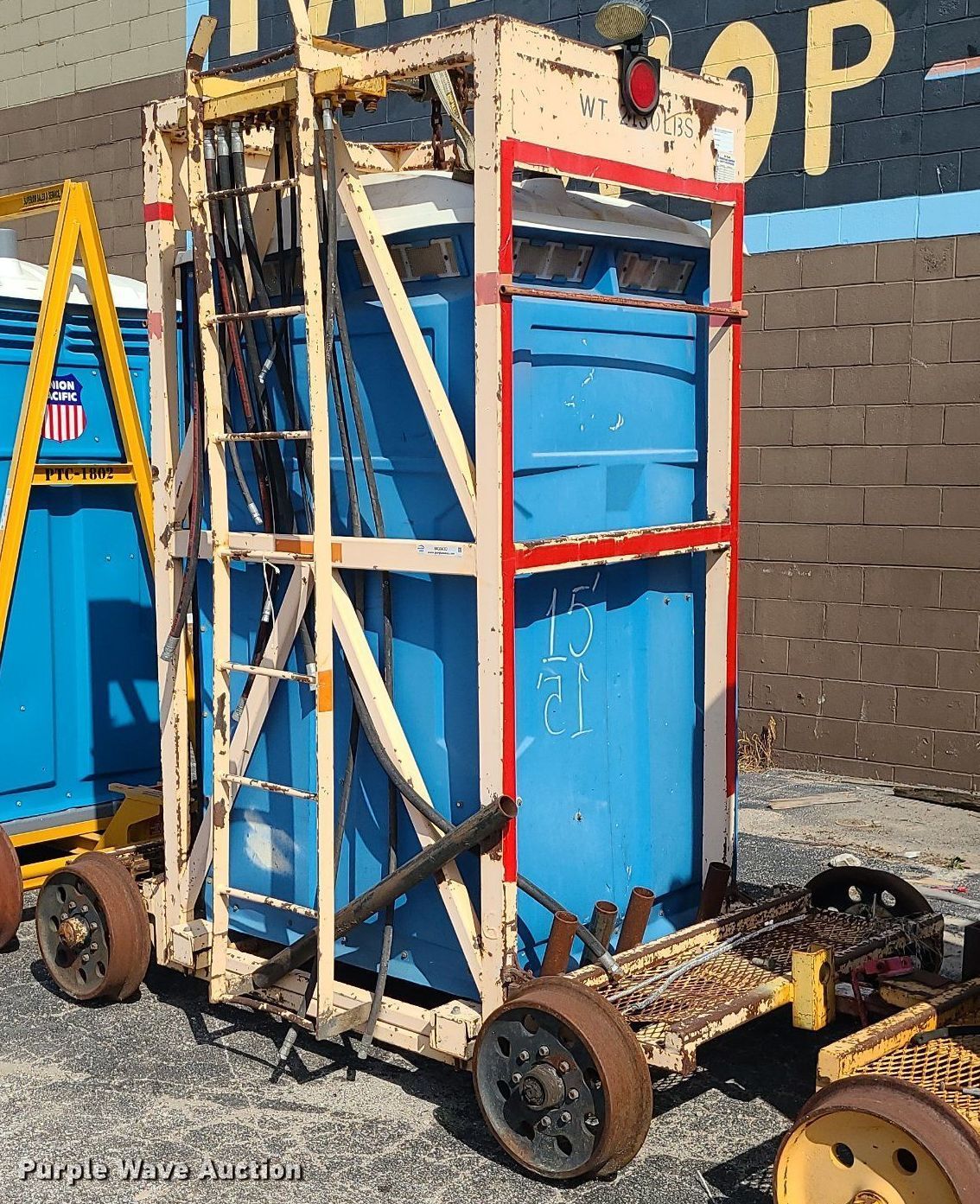 Purple Wave is selling a used Other Industrial or Business in Missouri. This item is a Railroad cart with the following: Porta-potty, Hydraulic hose storage, Lifting eye