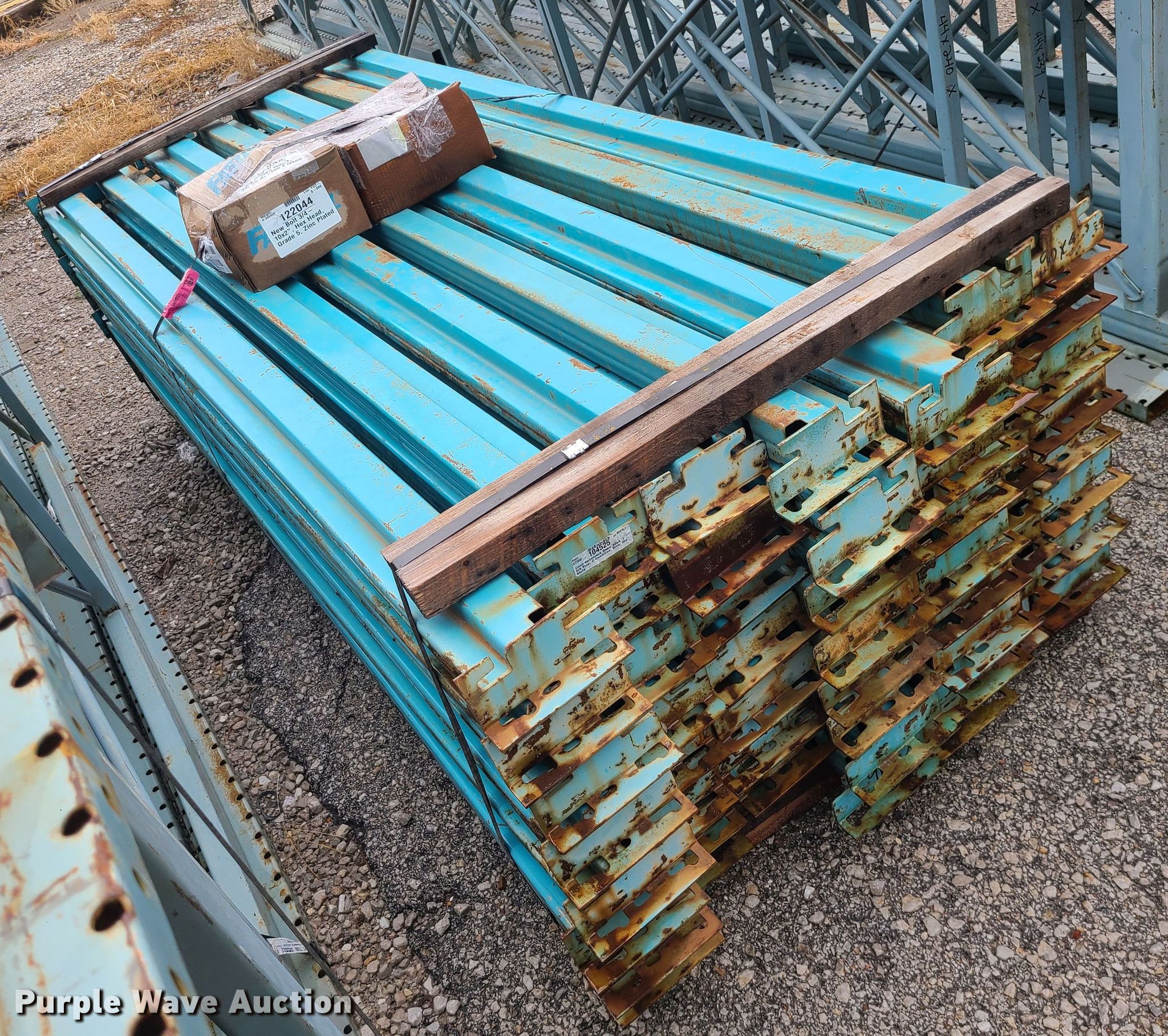 Purple Wave is selling a used Pallet Racking in Missouri. This item is a Speedrack pallet racking with the following: (11) 44" x 19' uprights, (56) 90" cross-members, (112) connector clips, Unit #: 864195