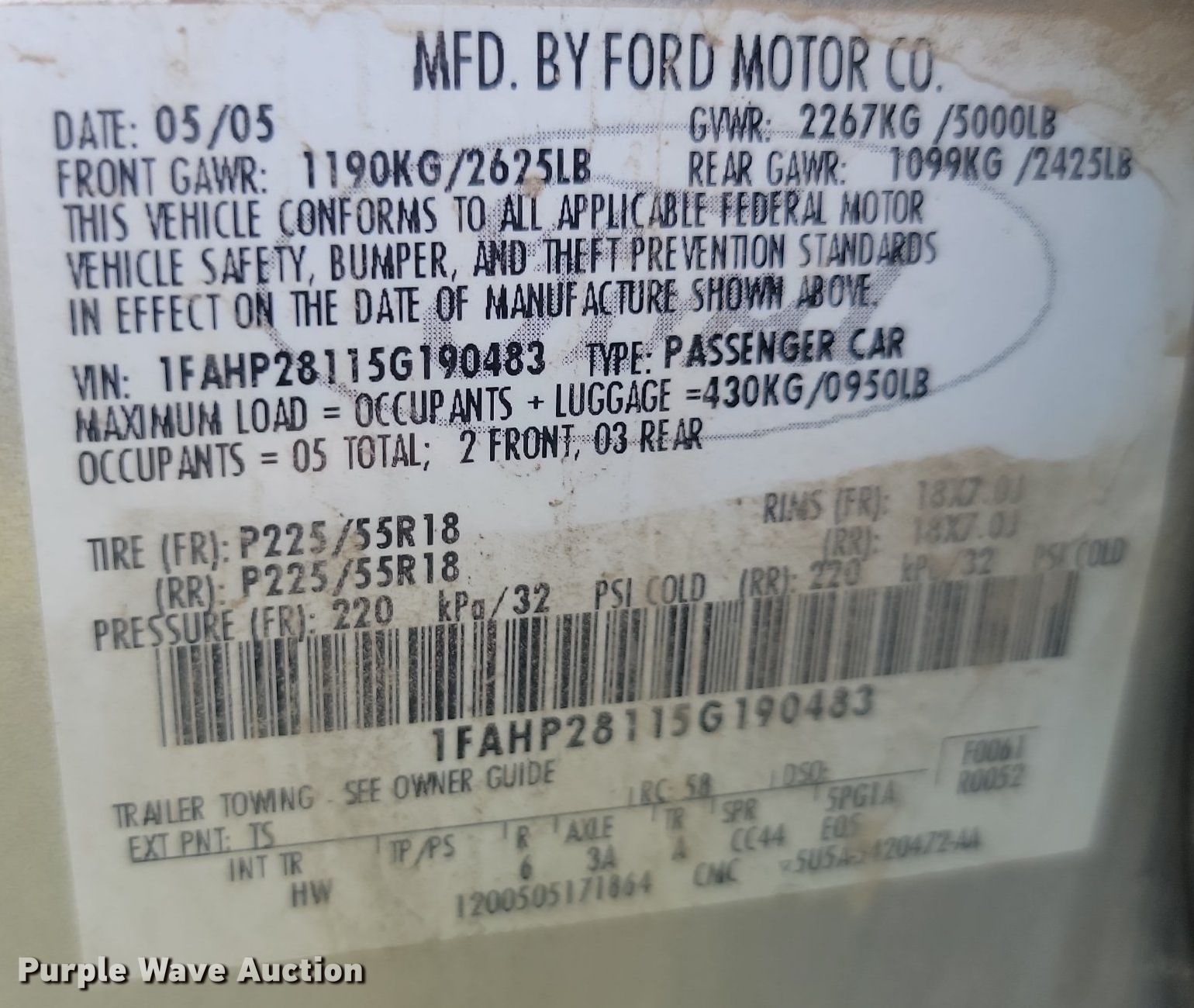 Purple Wave is selling a used Passenger Vehicle in South Dakota. This item is a 2005 Ford Five Hundred with the following: Miles: 210,934 on odometer, VIN: 1FAHP28115G190483