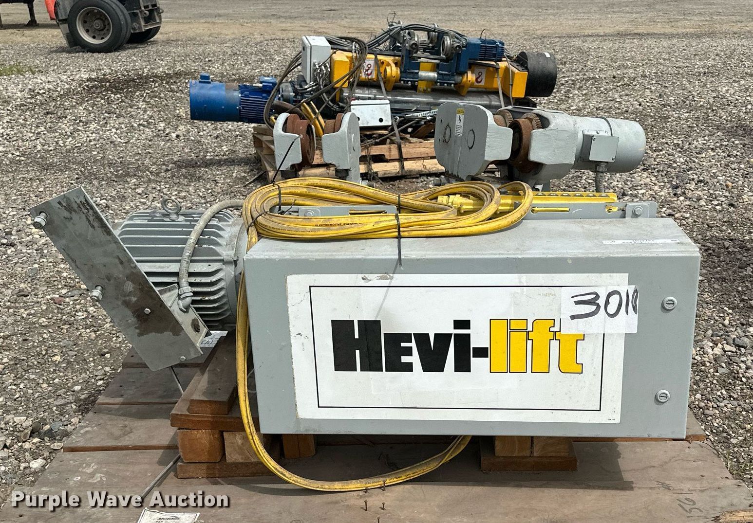 Purple Wave is selling a used Tools in Minnesota. This item is a Morris Material Handling Hevi-Lift hoist with the following: Lift height: 22' 3", Capacity: 2,000 lbs, Volts: 460, Phase: Three, Serial: TP-12187