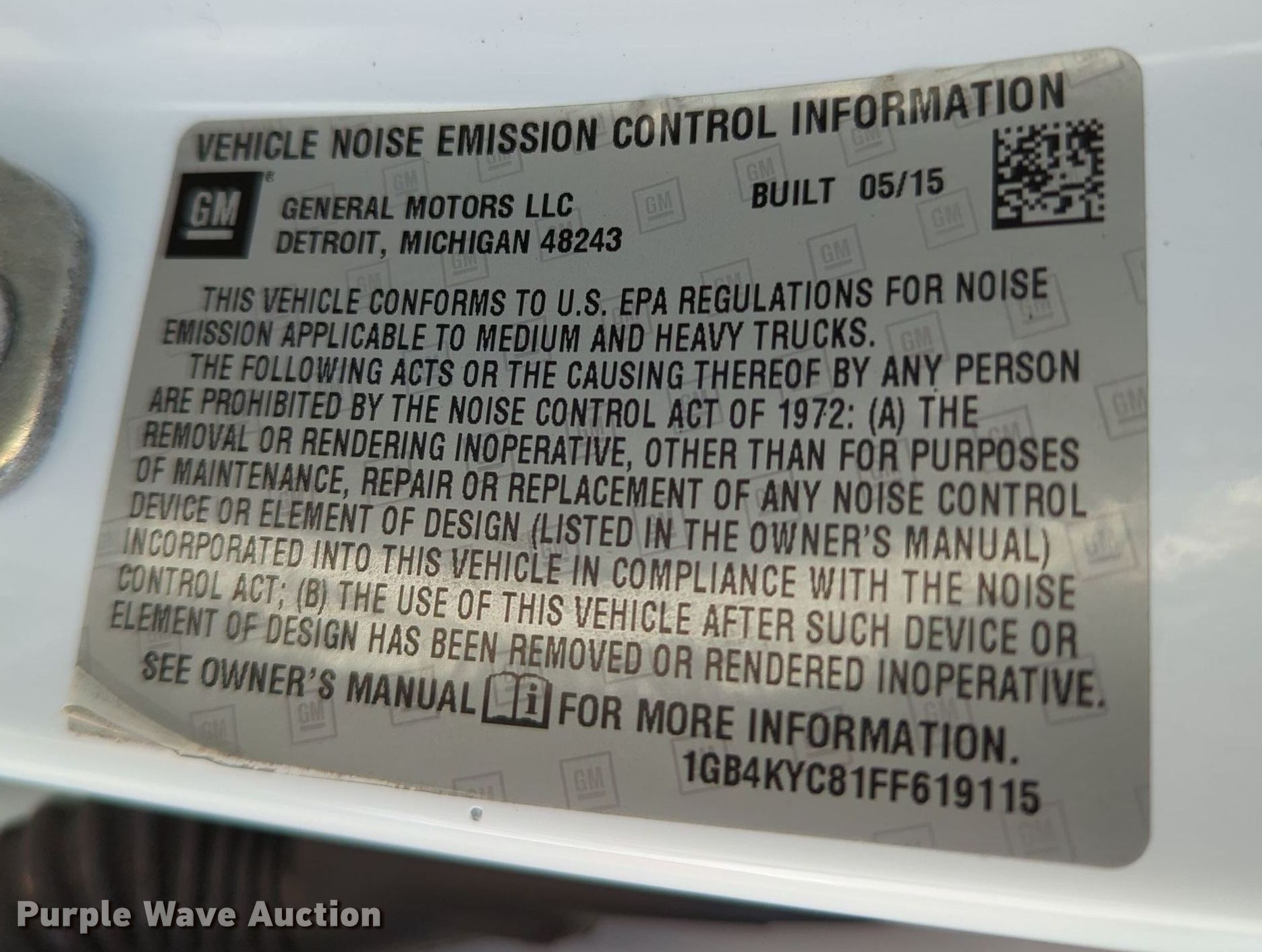 Purple Wave is selling a used 3/4 or 1 Ton Pickup or Van in Oklahoma. This item is a 2015 Chevrolet Silverado 3500HD Crew Cab utility bed pickup truck with the following: Miles: 148,199 on odometer, VIN: 1GB4KYC81FF619115