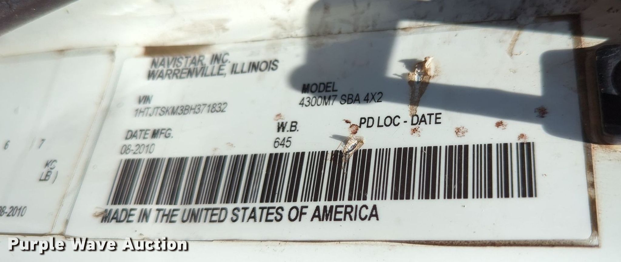 Purple Wave is selling a used Flat Bed Truck in Oklahoma. This item is a 2011 International DuraStar 4300 flatbed truck with the following: Miles: 179,725 on odometer, VIN: 1HTJTSKM3BH371832