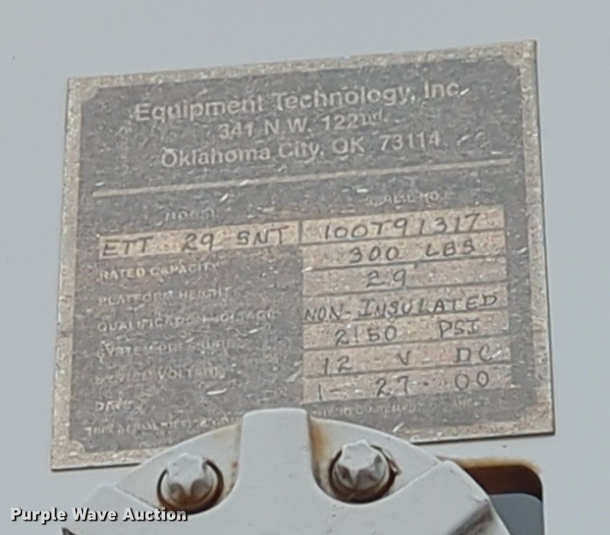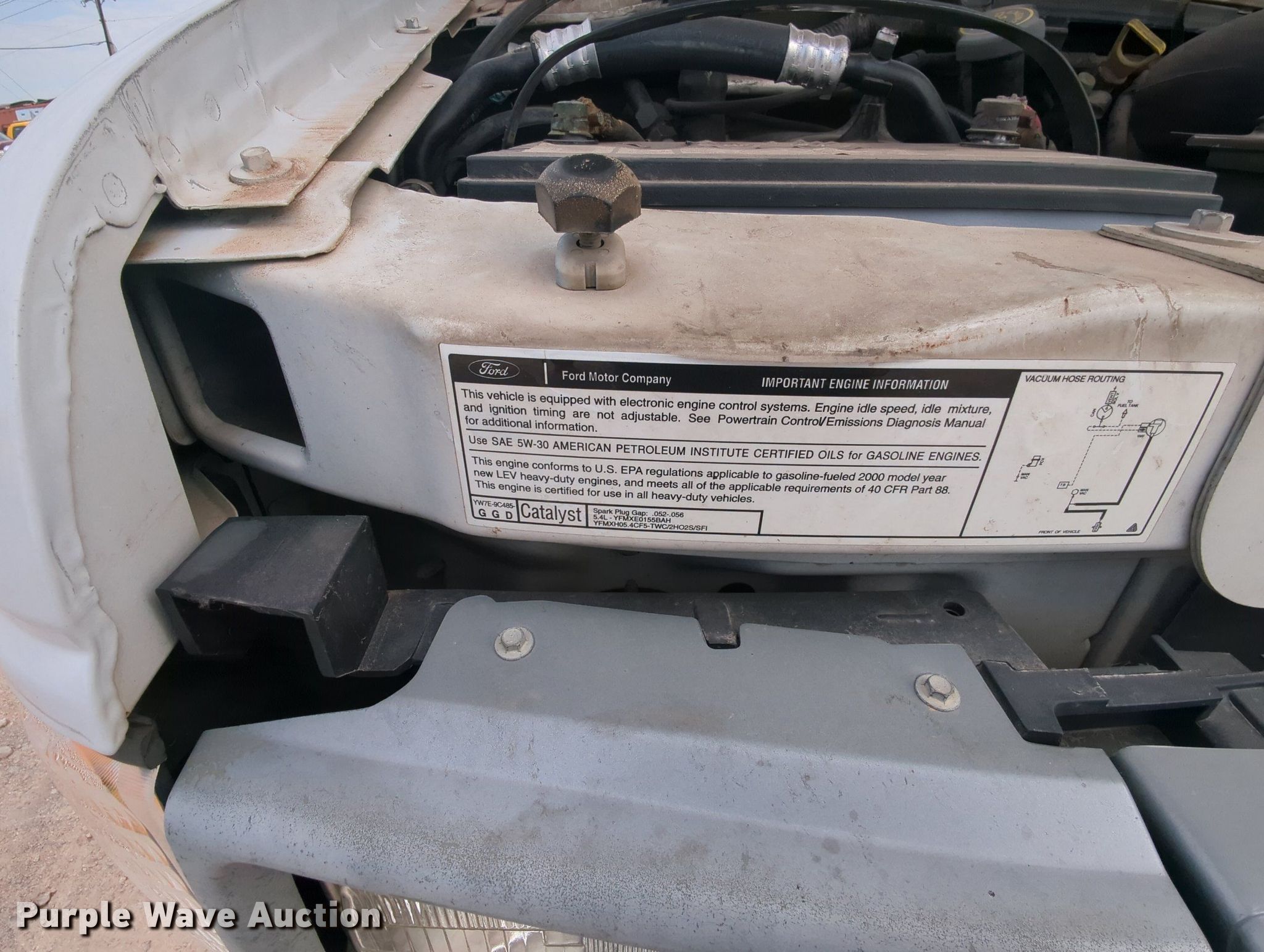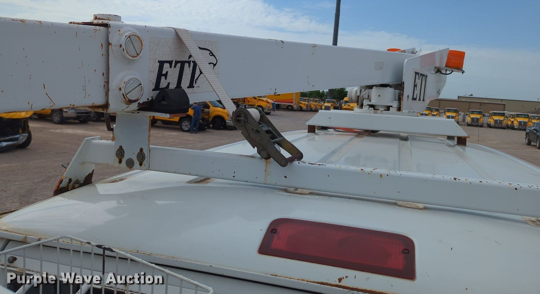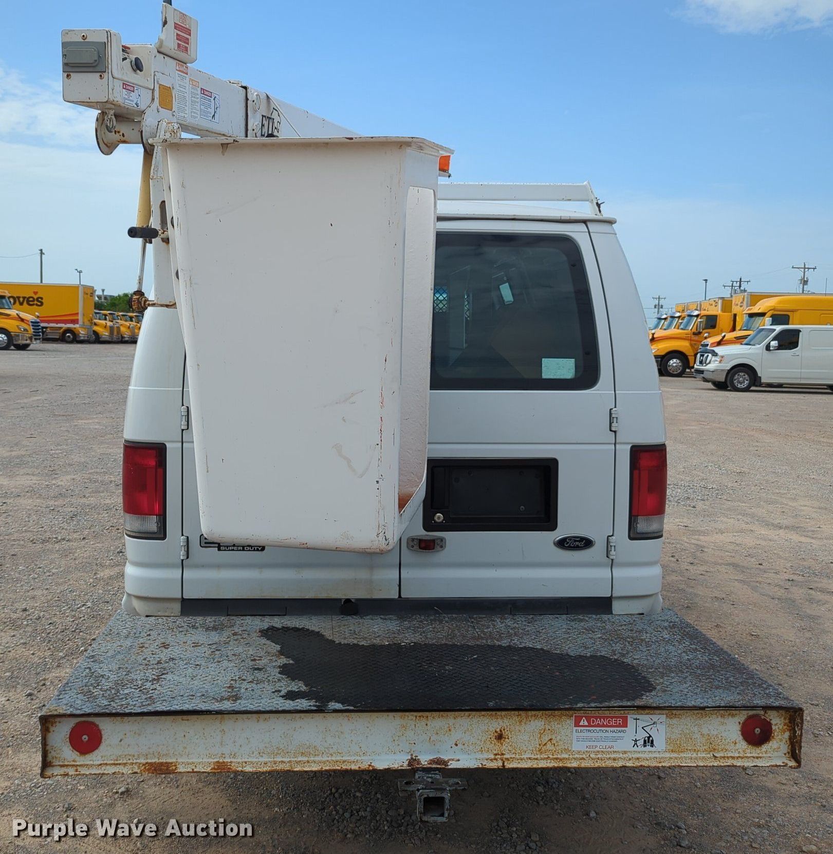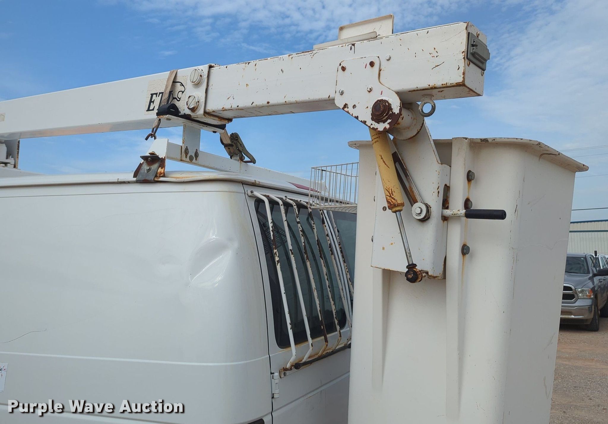 2000 Ford E350 Super Duty van with bucket lift. Miles: 117,778 on odometer, VIN: 1FTSE34L1YHA30752. Engine Displacement: 5.4 L V8 SOHC, Cylinders: 8, Fuel type: Gas. Transmission Automatic. Chassis Axles: Single, Suspension: Spring, Brakes: Hydraulic, PTO. Interior AC, Heat. Features Boom ETI ETT 29 SNY, Boom length: 13', Maximum lift capacity: 300 lbs, Maximum lift height: 29', Boom type: Telescopic, Man basket, Boom controls Ground, Platform/ basket.. Tires Size: 245/75R16. Notes Dash warning indicator: Check engine. Oklahoma title. Title distribution may be delayed up to 30 days from verification of funds. Gemini Motor Transport. 10220 W Reno Ave. Oklahoma City, OK 73127