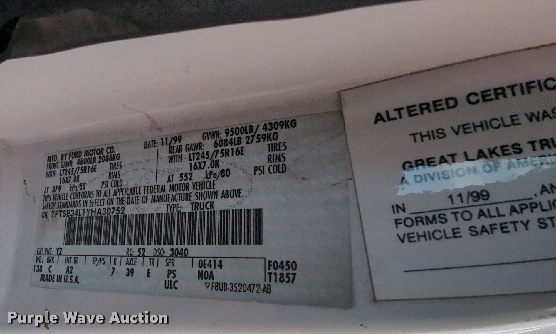 Purple Wave is selling a used 3/4 or 1 Ton Pickup or Van in Oklahoma. This item is a 2000 Ford E350 Super Duty van with bucket lift with the following: Miles: 117,778 on odometer, VIN: 1FTSE34L1YHA30752