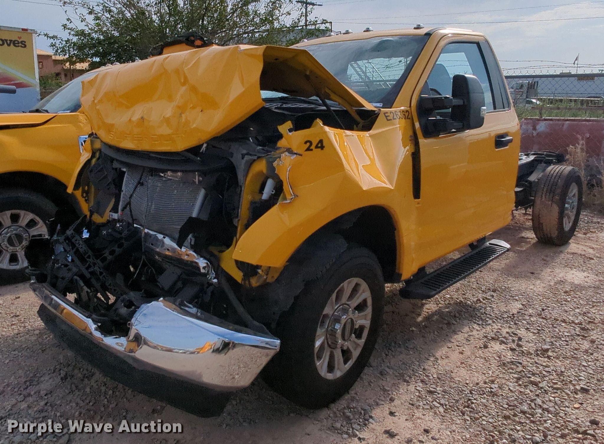 This 2022 Ford F350 Super Duty pickup truck cab and chassis will sell to the highest bidder regardless of price.