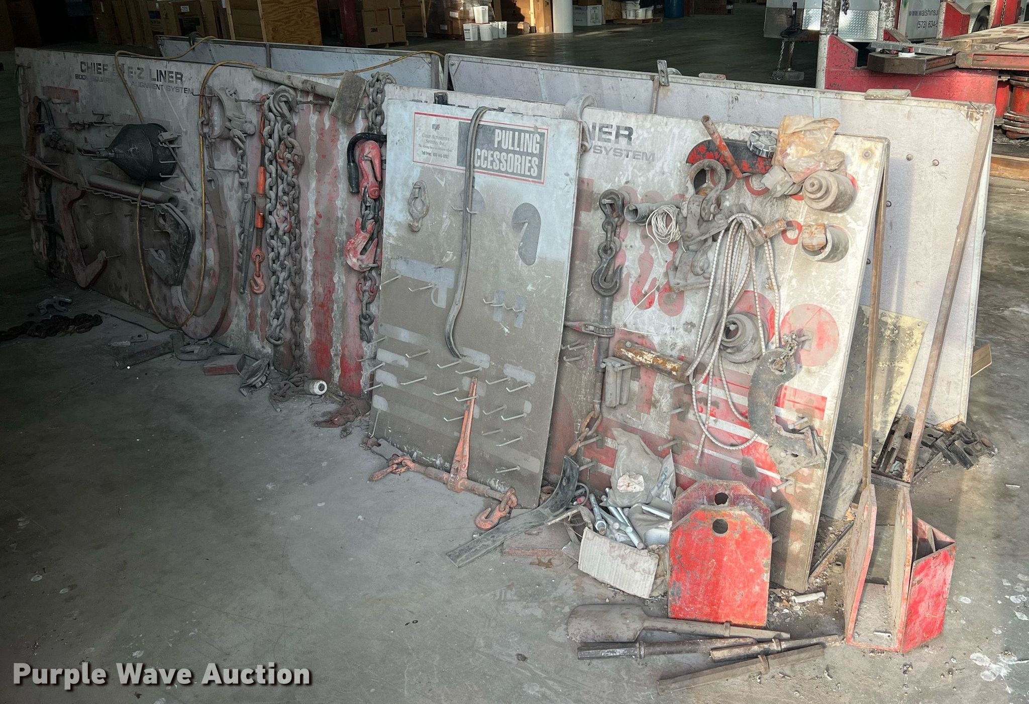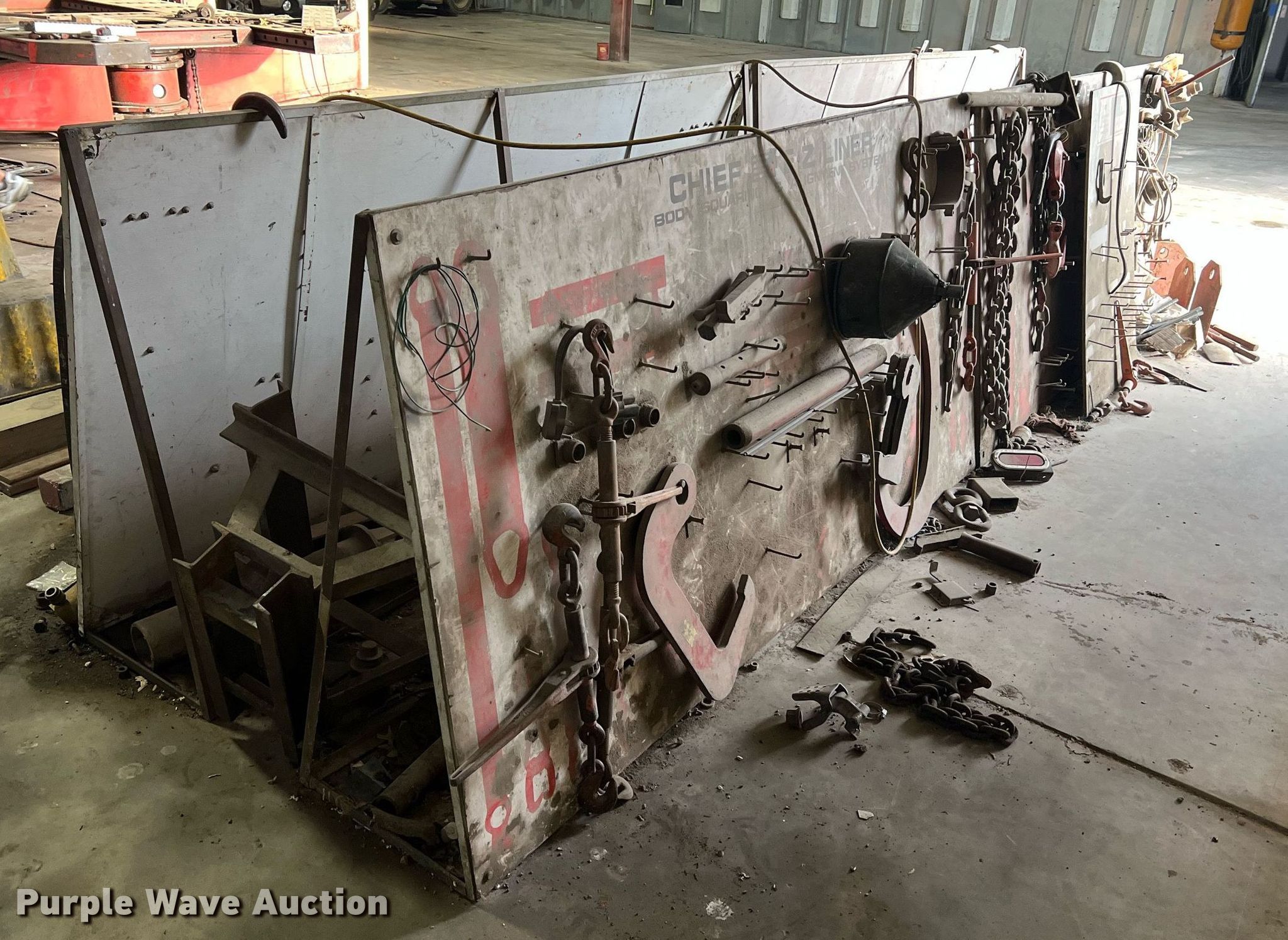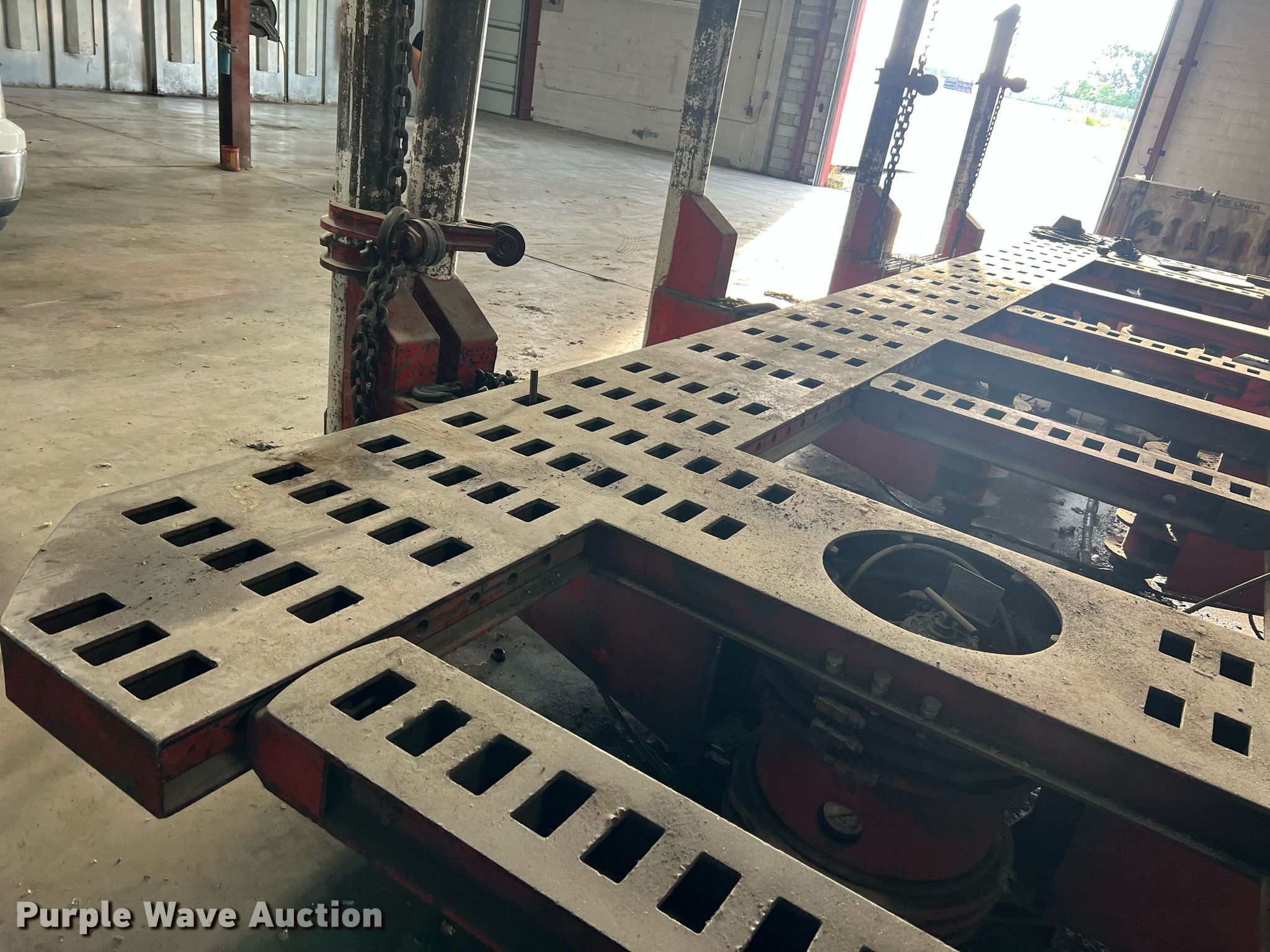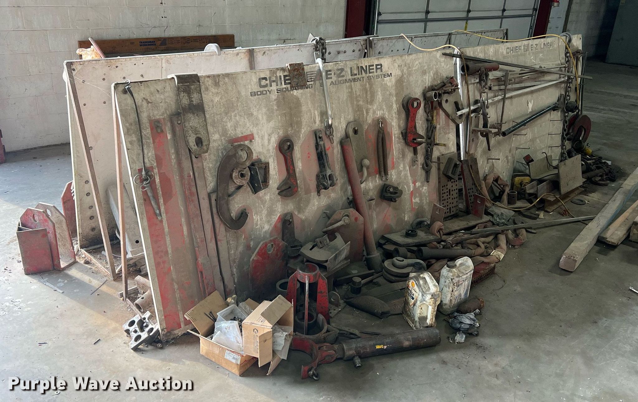 Purple Wave is selling a used Tools in Missouri. This item is a Chief EZ-Liner frame straightener with the following: Approx. 31'L x 13'9"W overall, Towers: 10, Pulling capacity: 100 tons