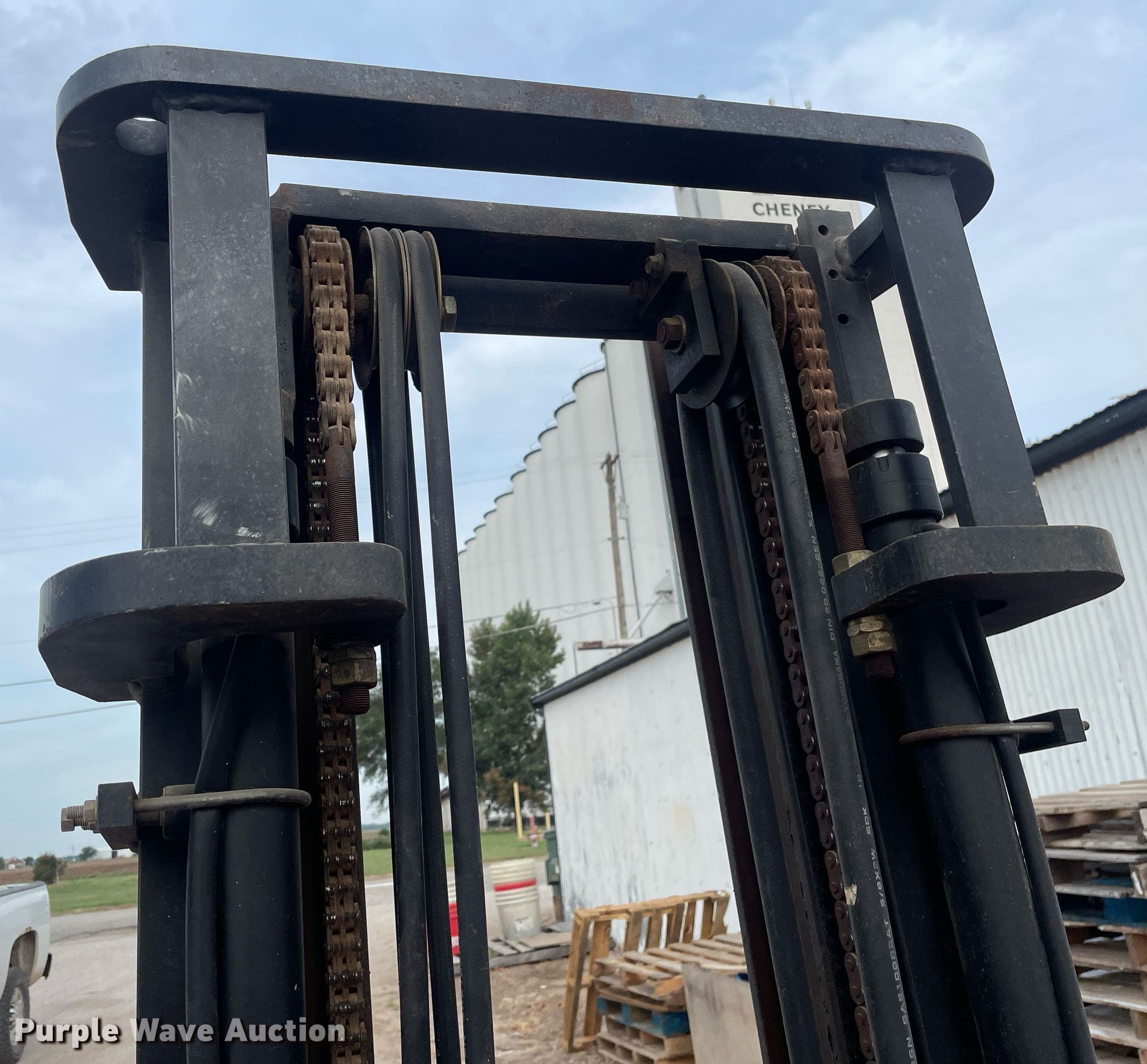 Tailift FG25P-GML forklift. Hours: 3,592 on meter, Serial: 317517B. Engine Cylinders: 4, Fuel type: Dual fuel. Transmission Powershift. Features Maximum lift capacity: 2,900 lbs, Maximum lift height: 196", Mast stages: 3, Side shift, Mast tilt, Fork length: 41". Tires Front: 700x12, Rear: 6.00-9. Notes Ignition switch issues, Non-operational unit. Farmers Cooperative Elevator. 101 S Adams St. Cheney, KS 67025