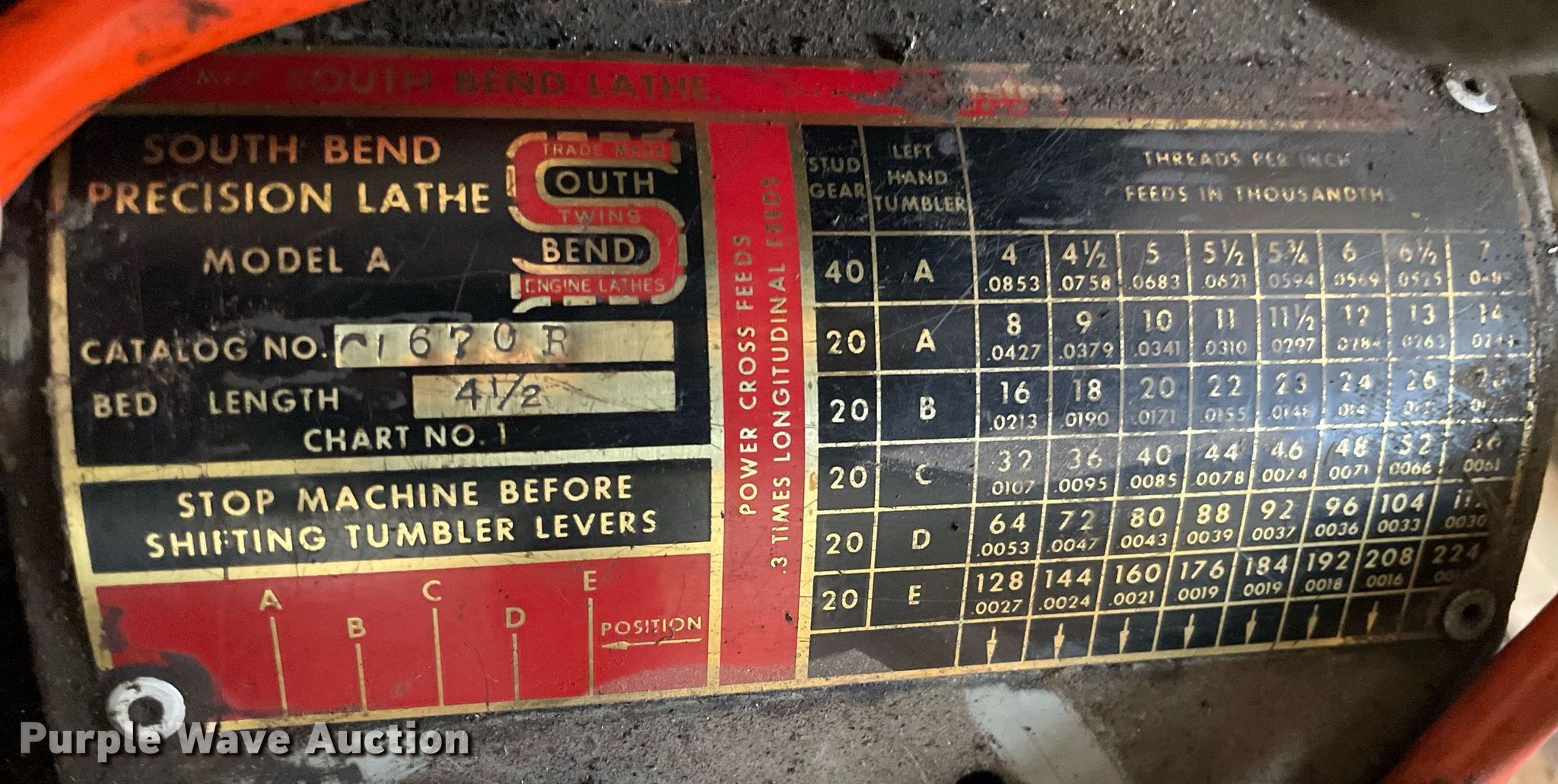 Purple Wave is selling a used Tools in Kansas. This item is a South Bend Model A lathe with the following: Westinghouse, Serial: 312P074, Volts: 115/230, Phase: Single