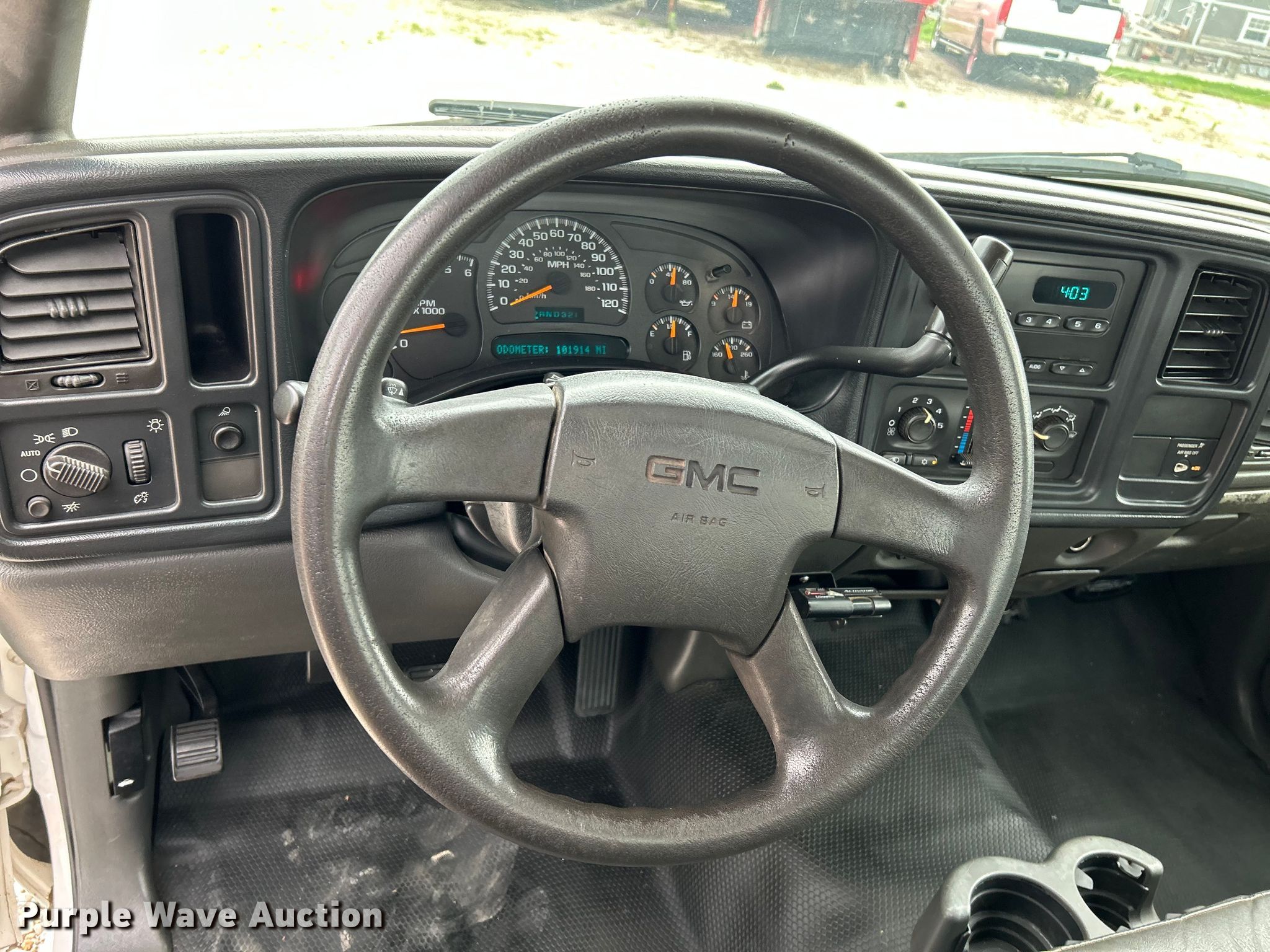 This 2005 GMC Sierra 3500 flatbed pickup truck will sell to the highest bidder regardless of price.
