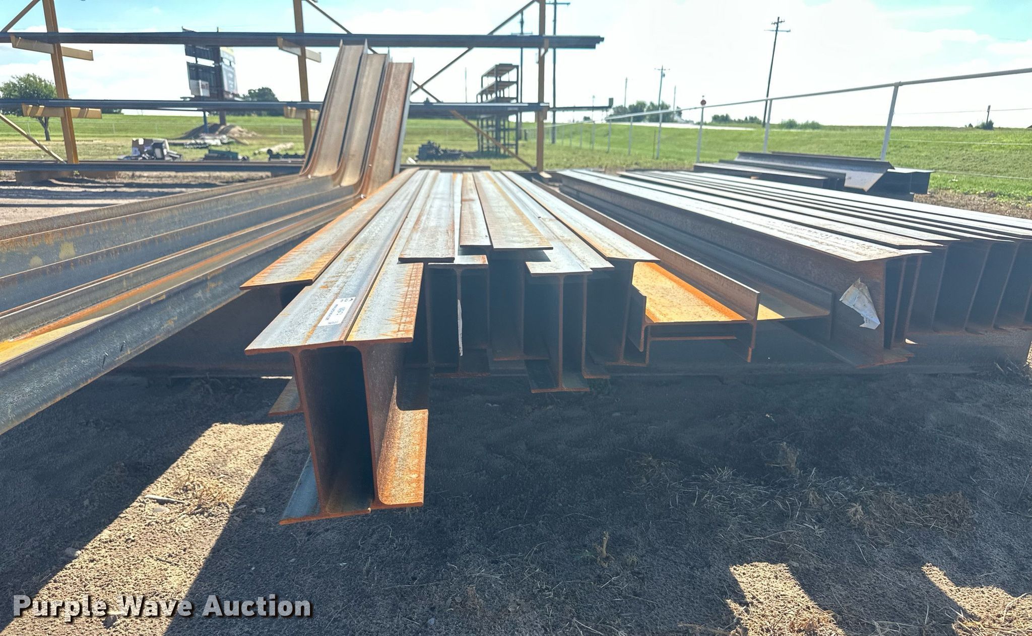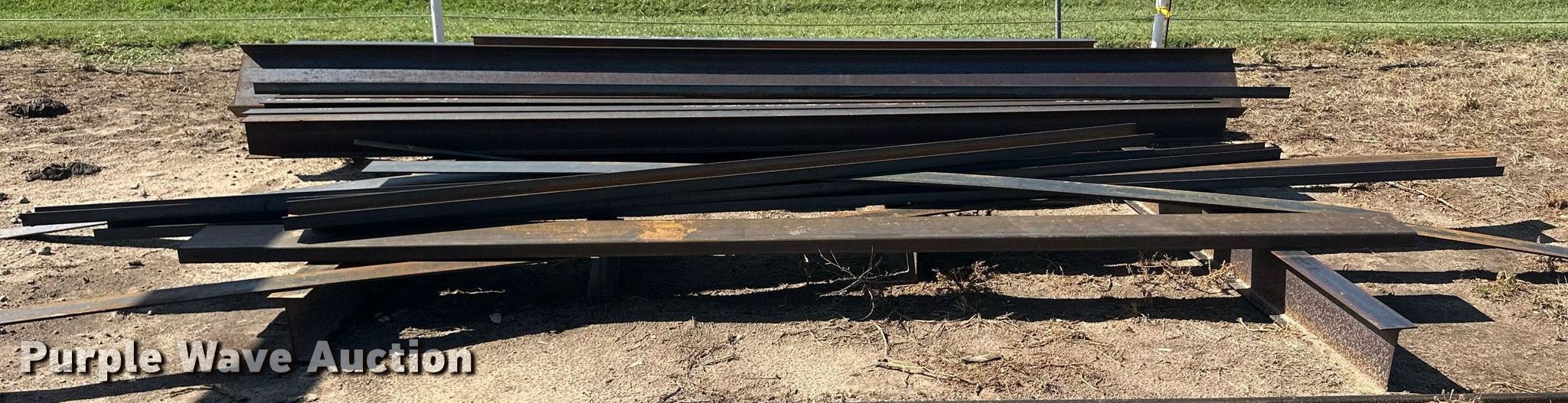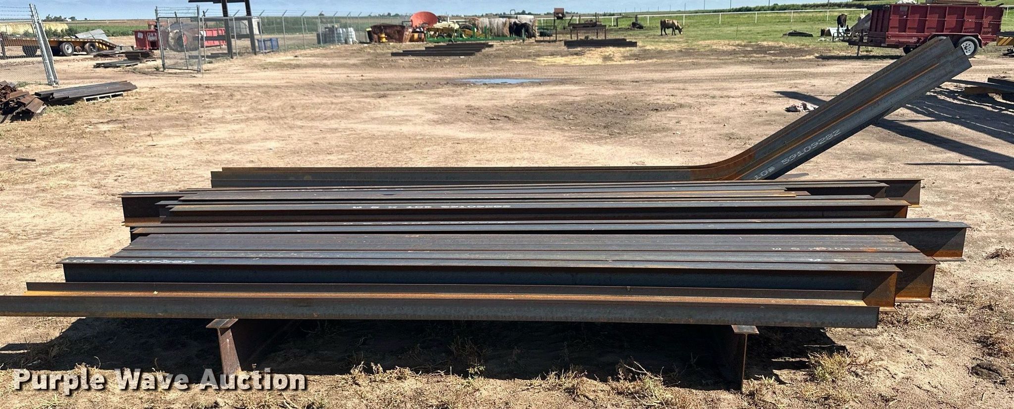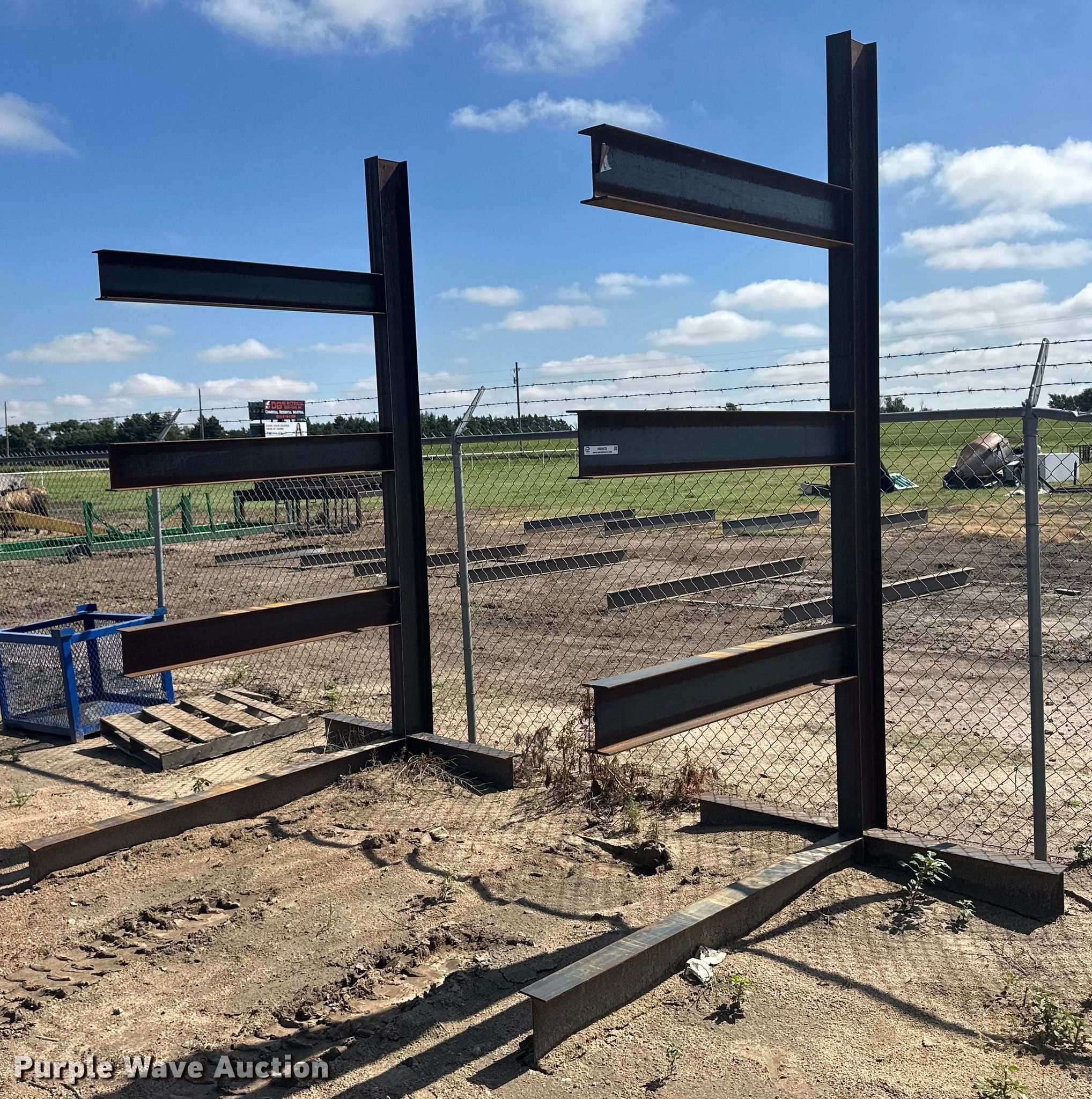 Purple Wave is selling a used Building Materials in Kansas. This item is a Building materials with the following: (6) 18'6" L trailer frame rails, (24) 13'2"L I-beams, C-channel, Lengths: 10' to 40', (2) shelves, 16'L x 33"W x 10'H, 20'6"L x 33"W x 9'H, (2) 6'W x 10'H metal racks