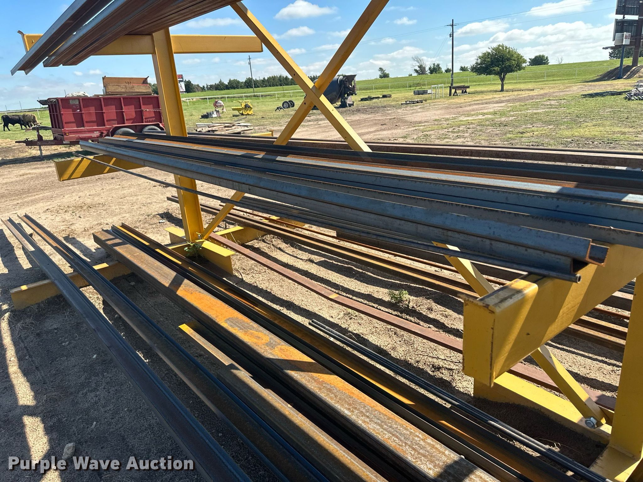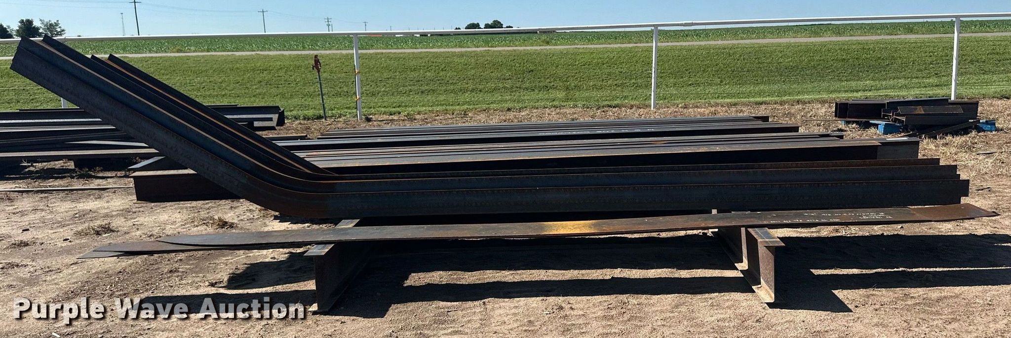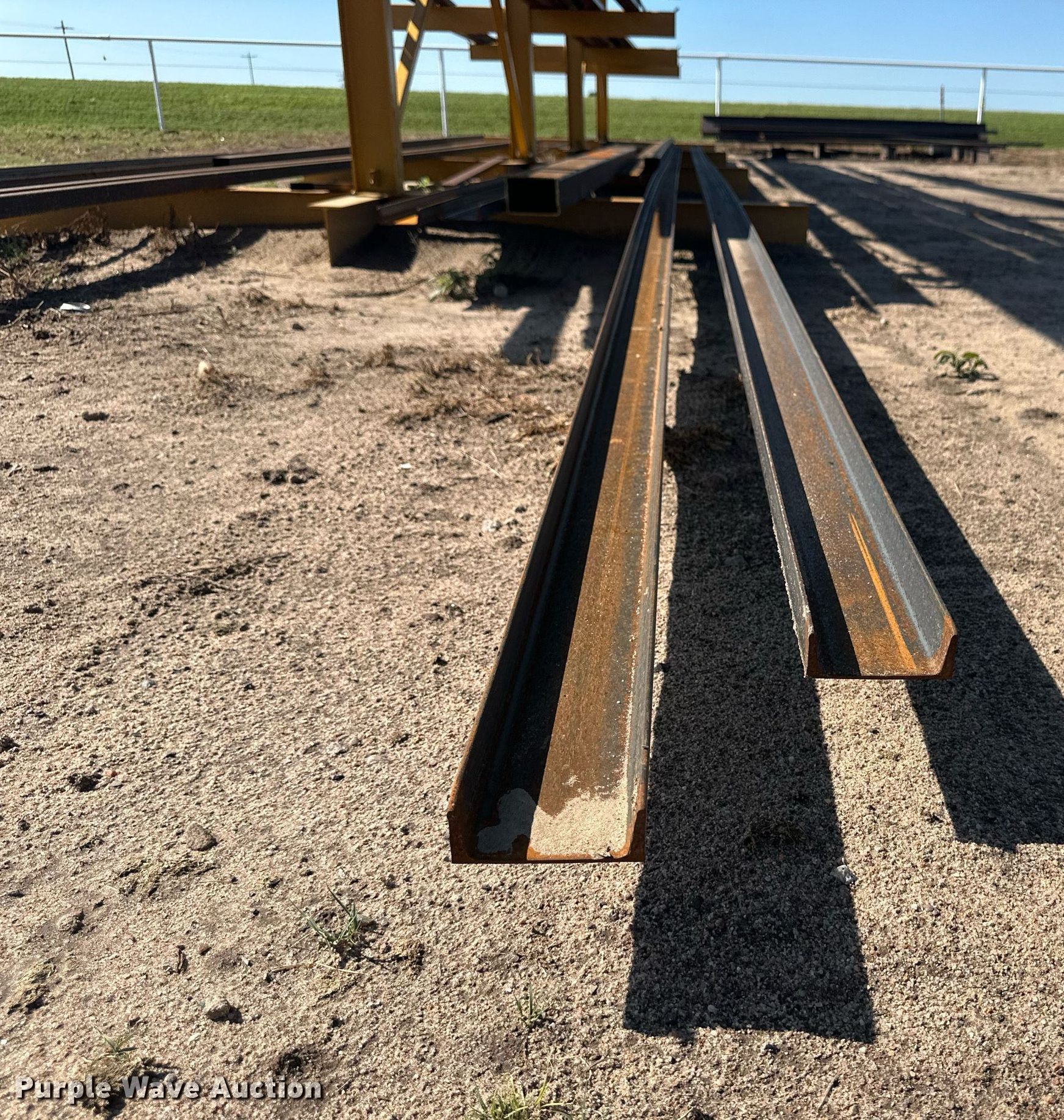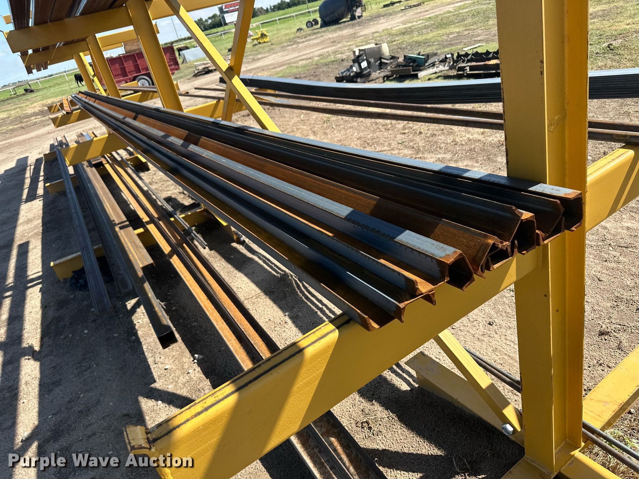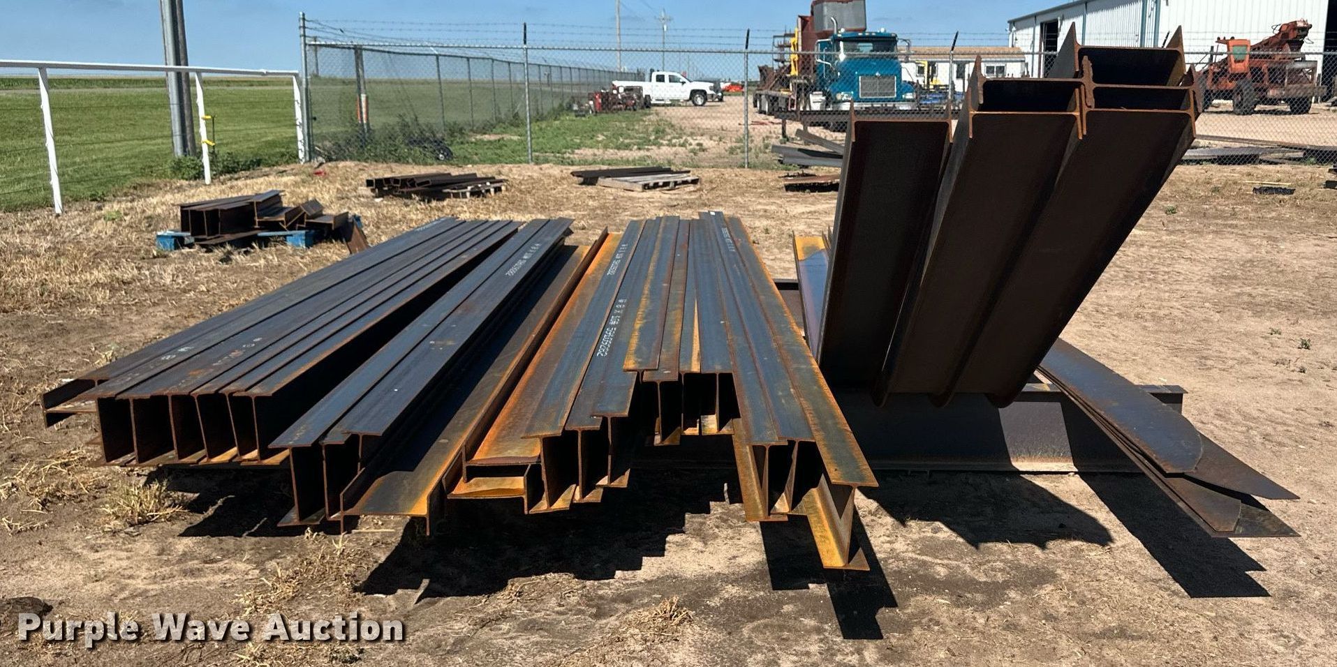 Purple Wave is selling a used Building Materials in Kansas. This item is a Building materials with the following: (6) 18'6" L trailer frame rails, (24) 13'2"L I-beams, C-channel, Lengths: 10' to 40', (2) shelves, 16'L x 33"W x 10'H, 20'6"L x 33"W x 9'H, (2) 6'W x 10'H metal racks