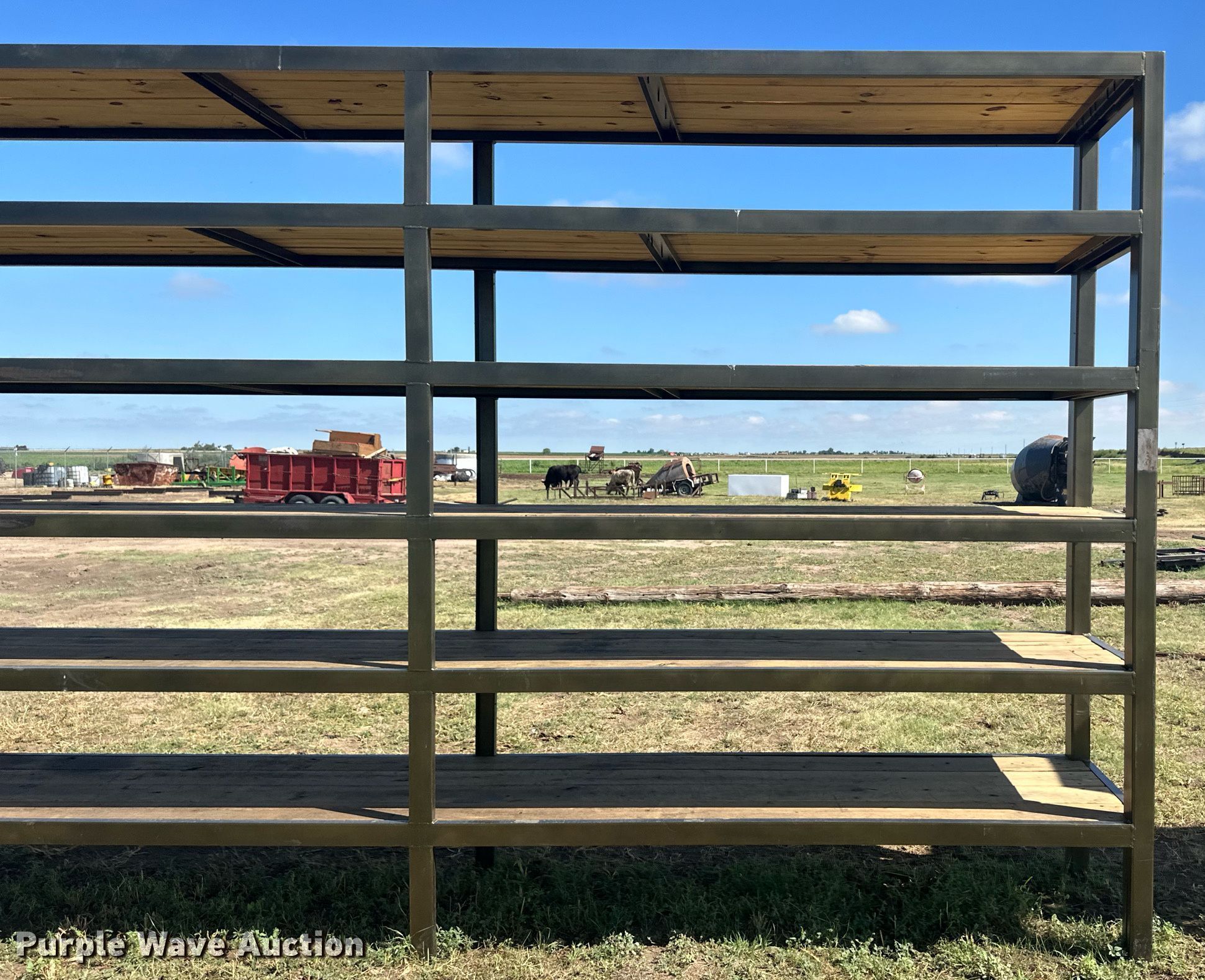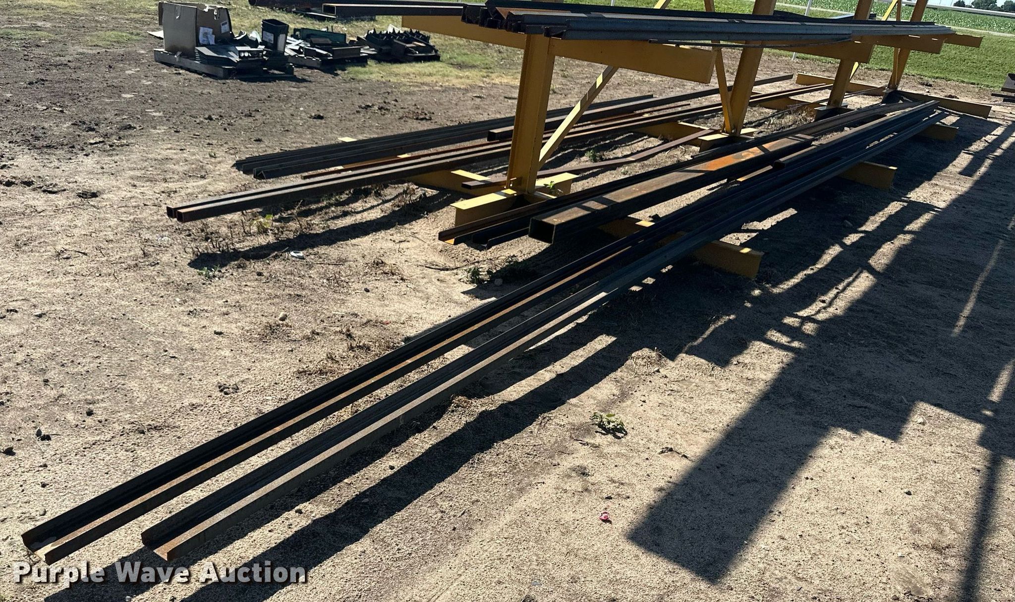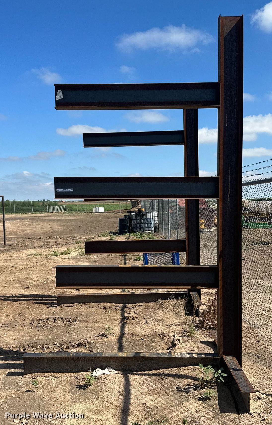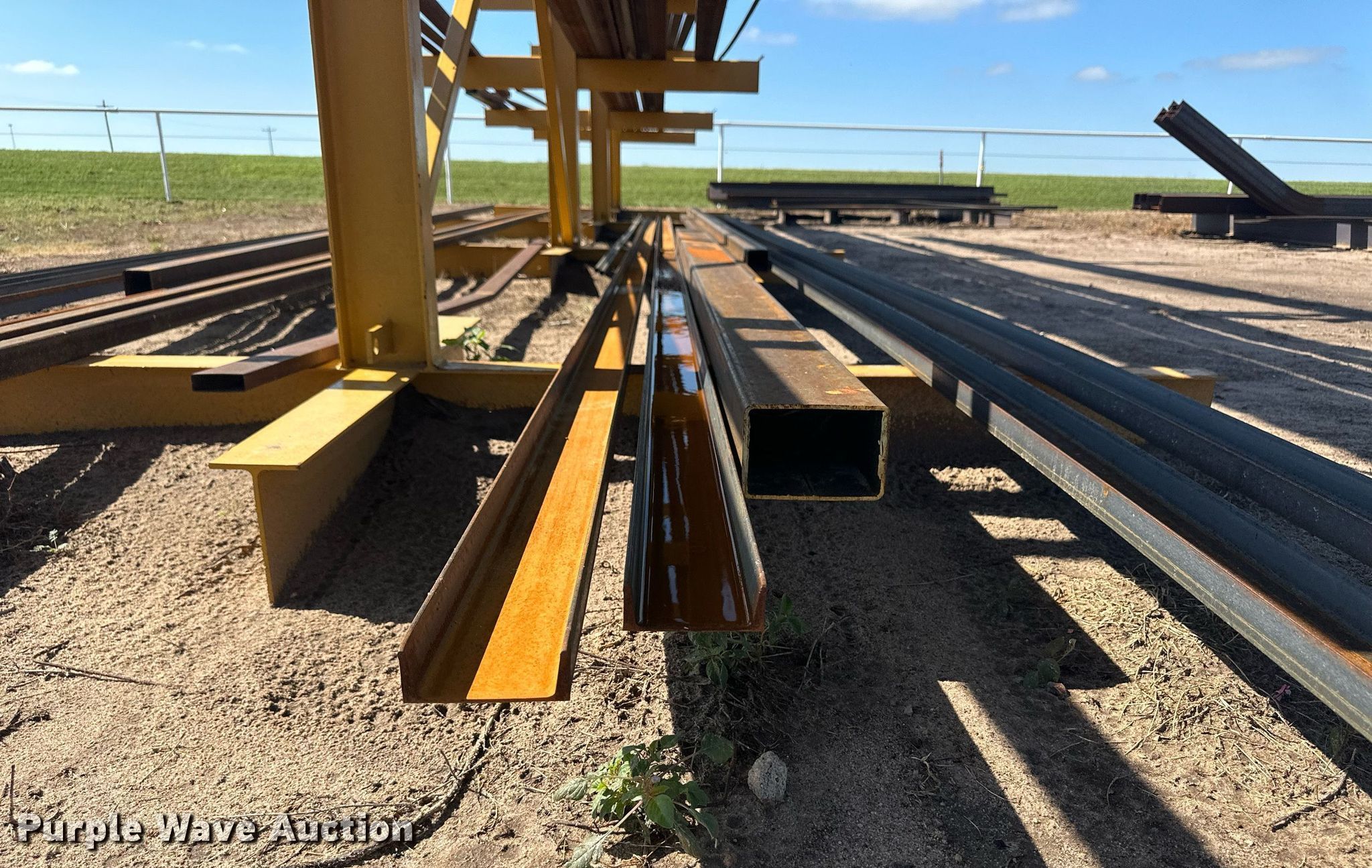 Purple Wave is selling a used Building Materials in Kansas. This item is a Building materials with the following: (6) 18'6" L trailer frame rails, (24) 13'2"L I-beams, C-channel, Lengths: 10' to 40', (2) shelves, 16'L x 33"W x 10'H, 20'6"L x 33"W x 9'H, (2) 6'W x 10'H metal racks