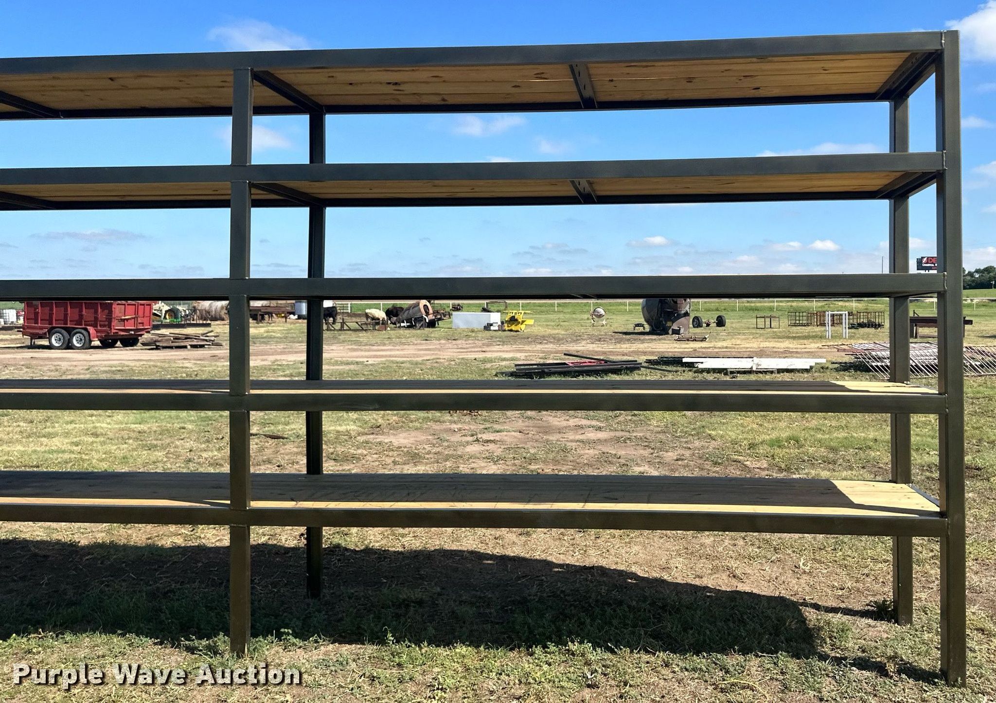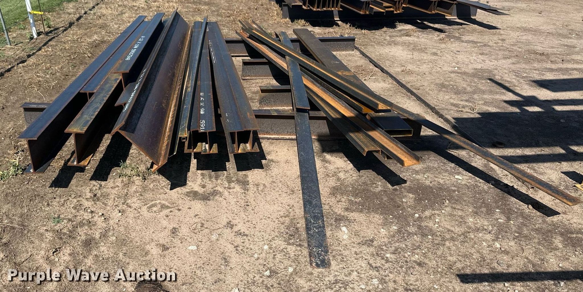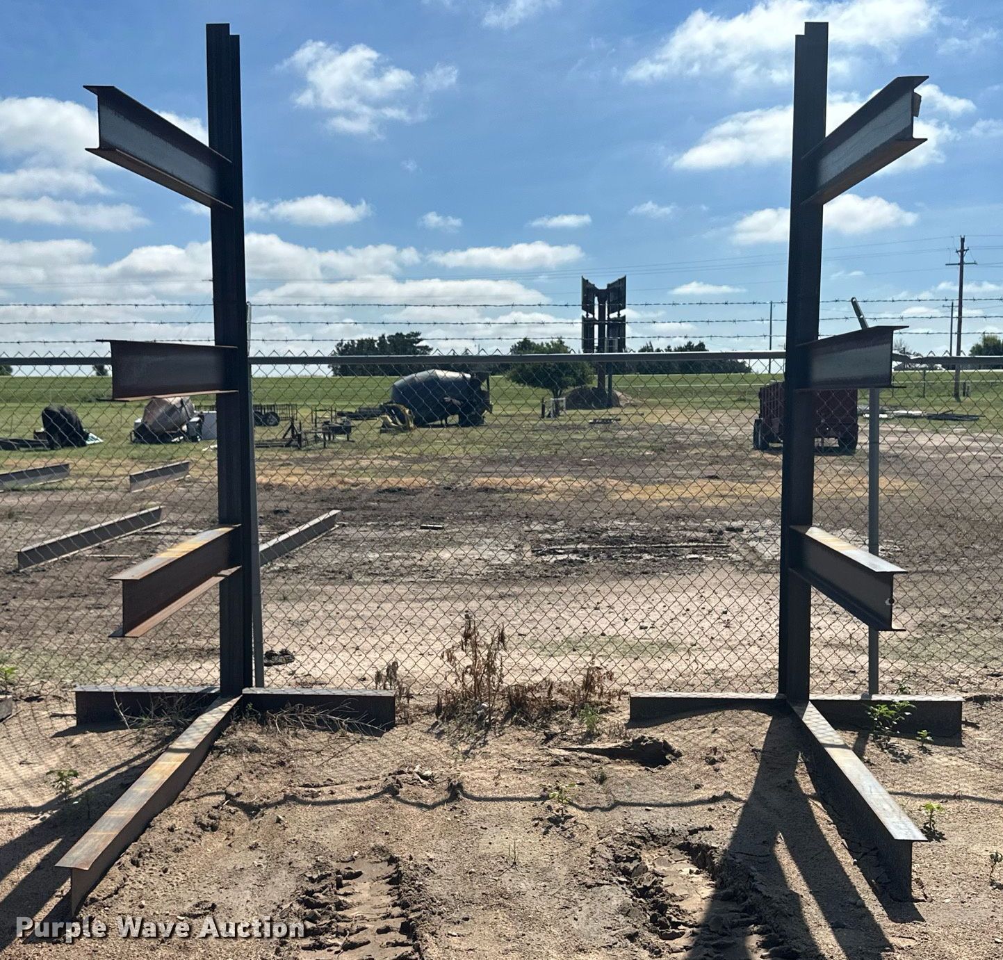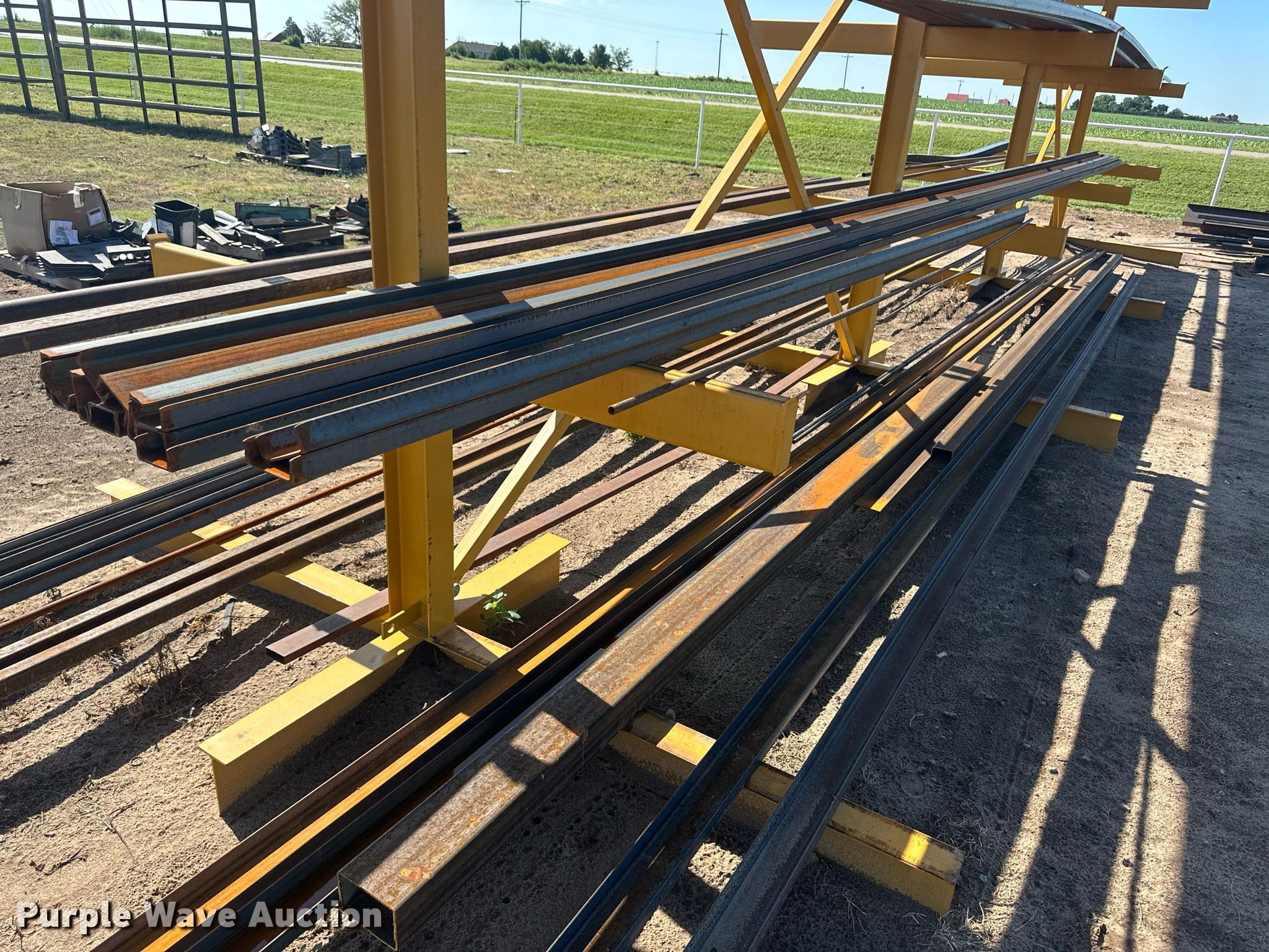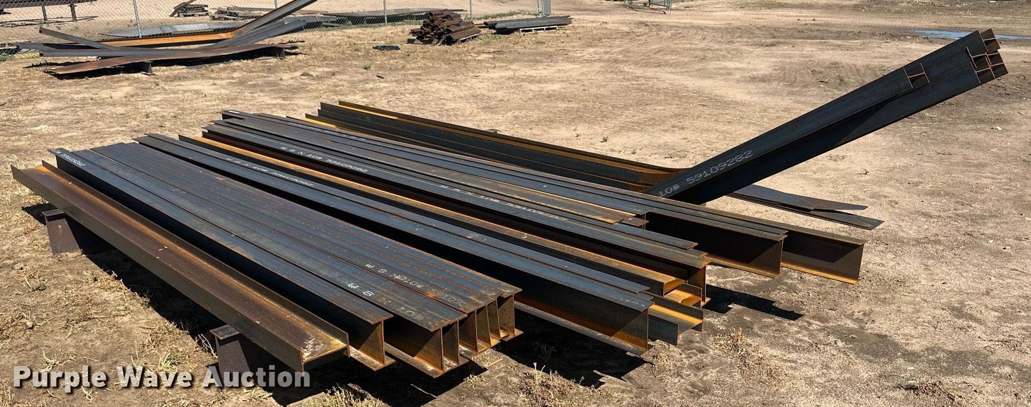 Purple Wave is selling a used Building Materials in Kansas. This item is a Building materials with the following: (6) 18'6" L trailer frame rails, (24) 13'2"L I-beams, C-channel, Lengths: 10' to 40', (2) shelves, 16'L x 33"W x 10'H, 20'6"L x 33"W x 9'H, (2) 6'W x 10'H metal racks