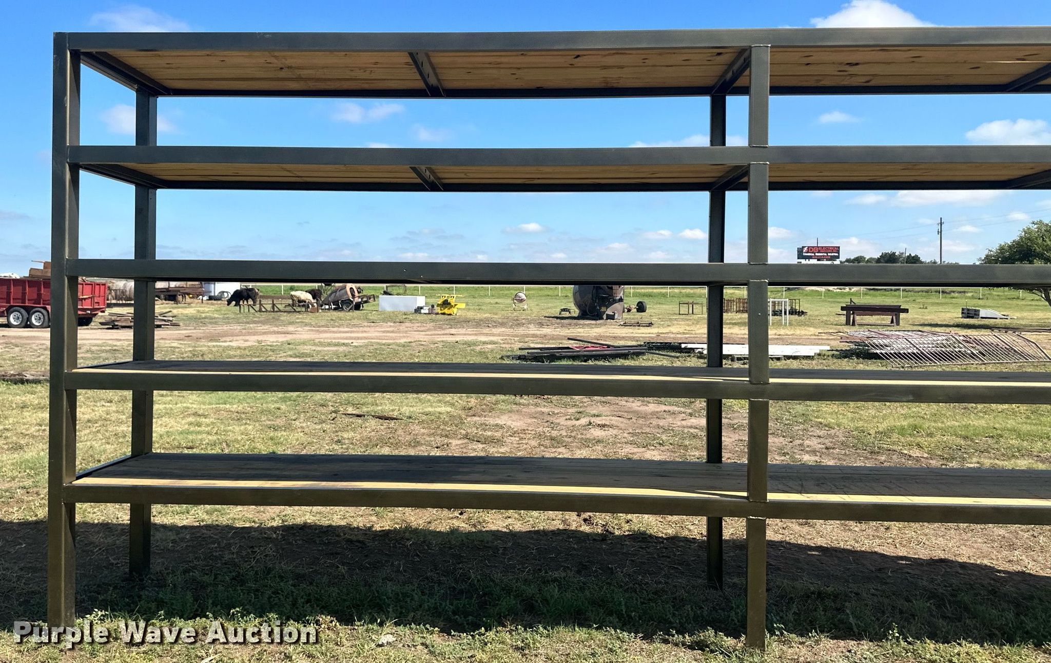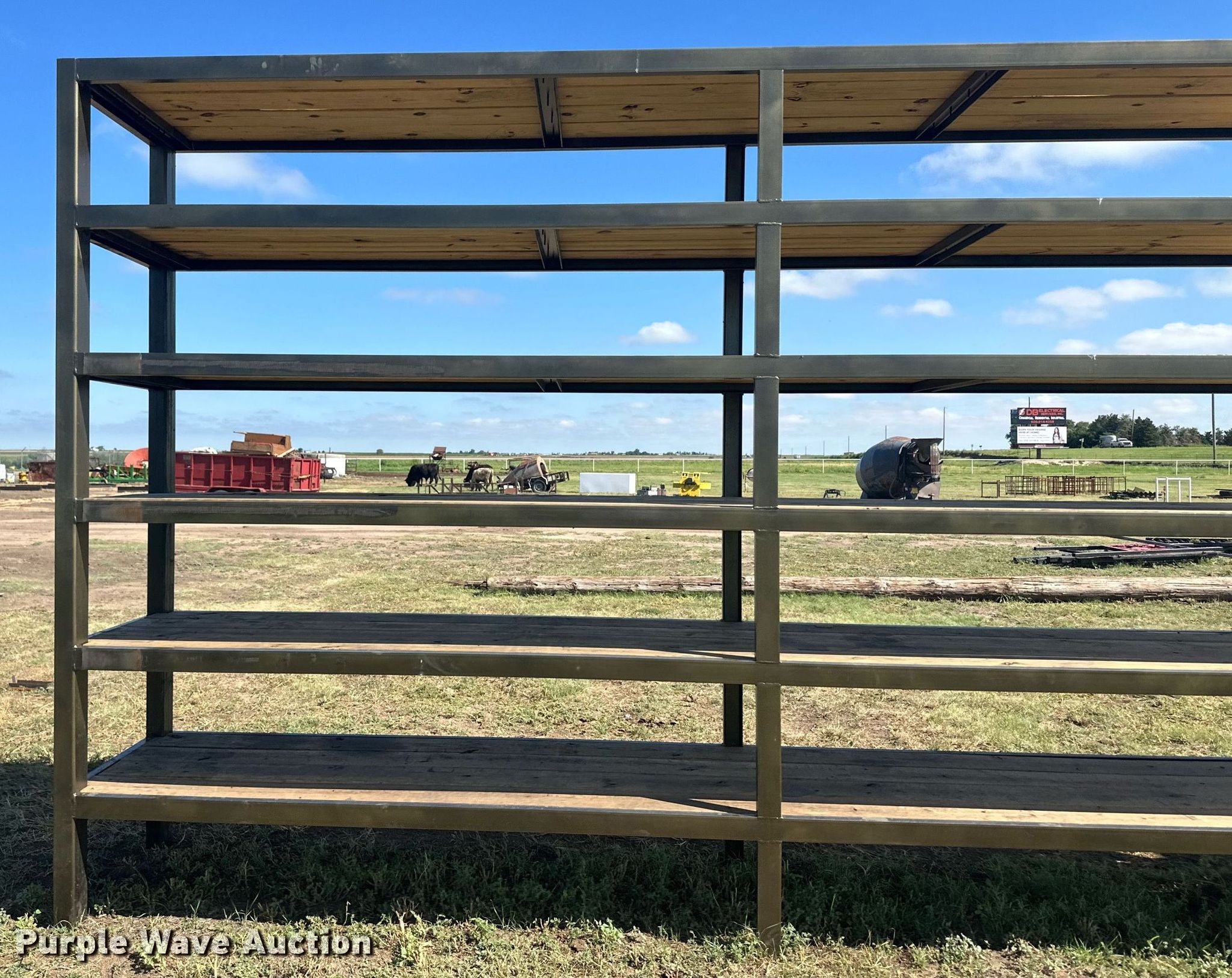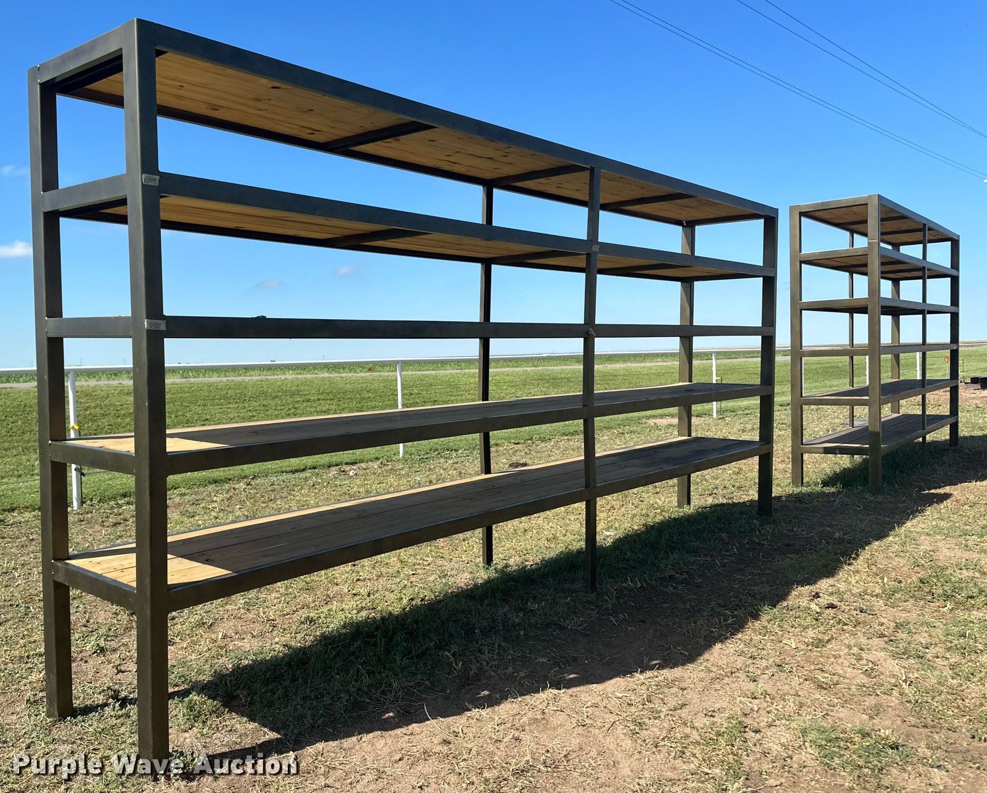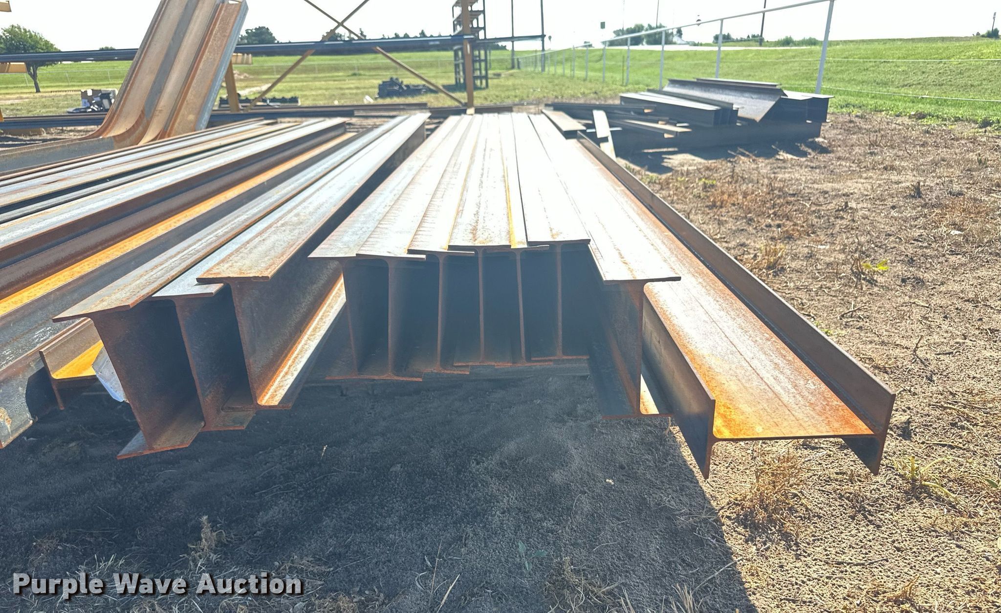 Purple Wave is selling a used Building Materials in Kansas. This item is a Building materials with the following: (6) 18'6" L trailer frame rails, (24) 13'2"L I-beams, C-channel, Lengths: 10' to 40', (2) shelves, 16'L x 33"W x 10'H, 20'6"L x 33"W x 9'H, (2) 6'W x 10'H metal racks