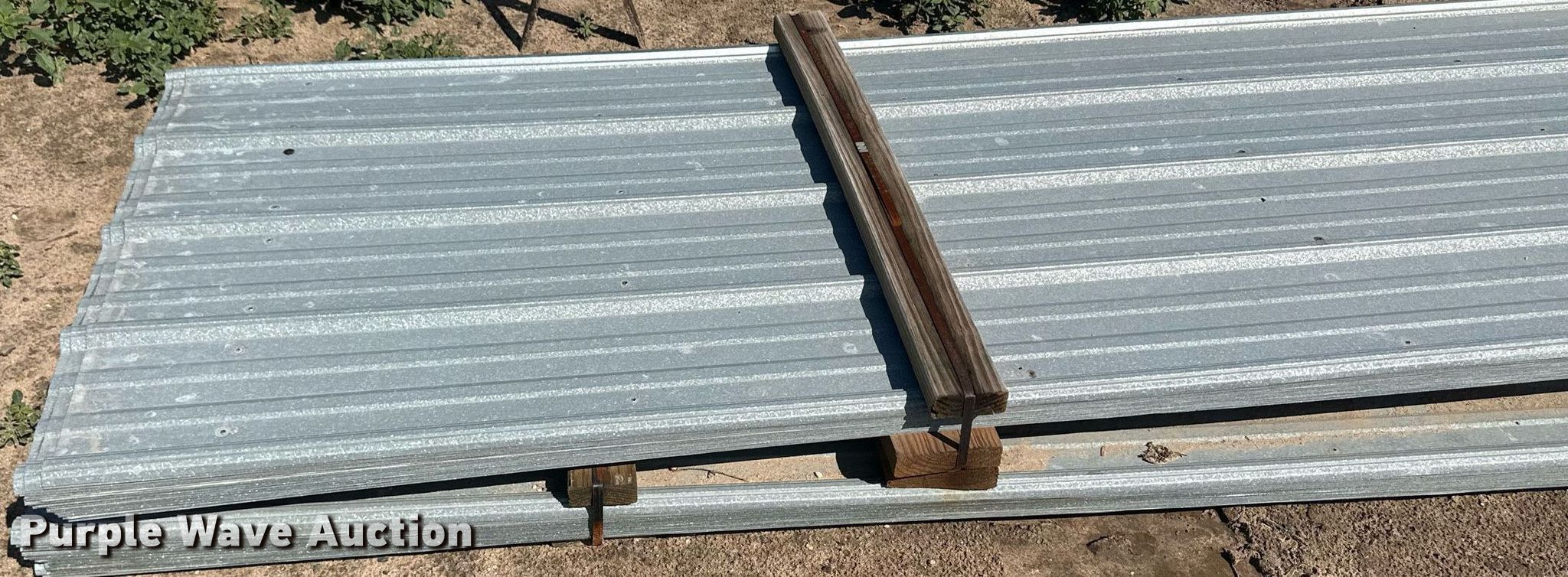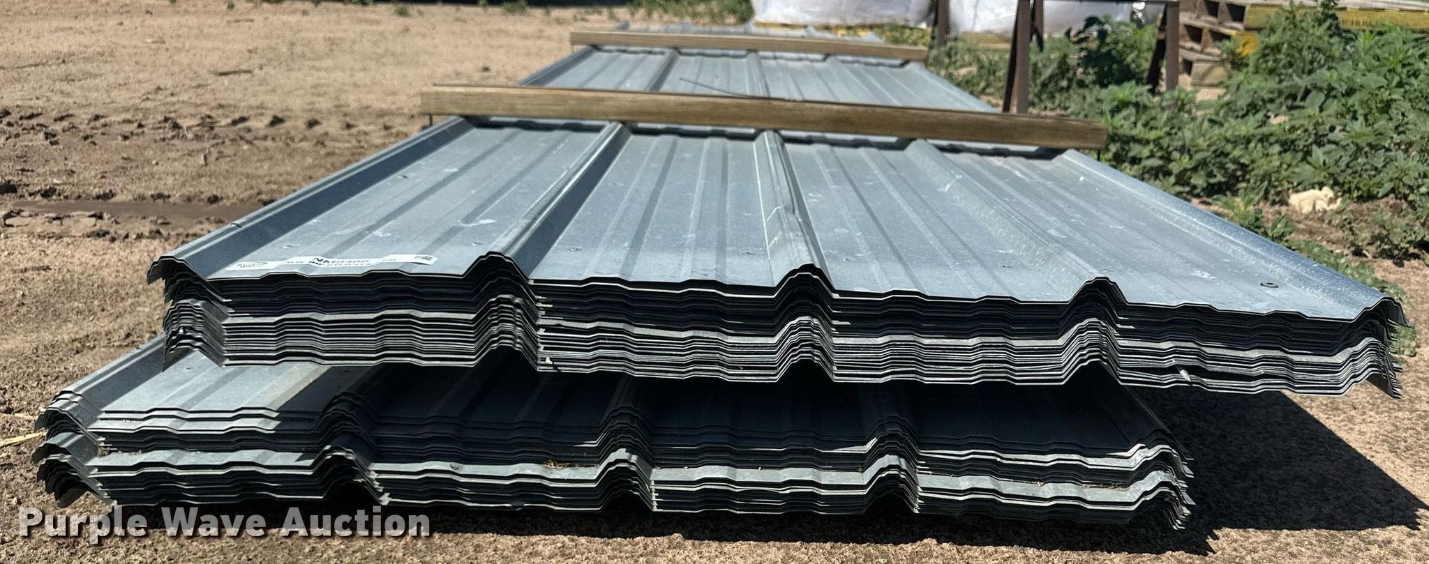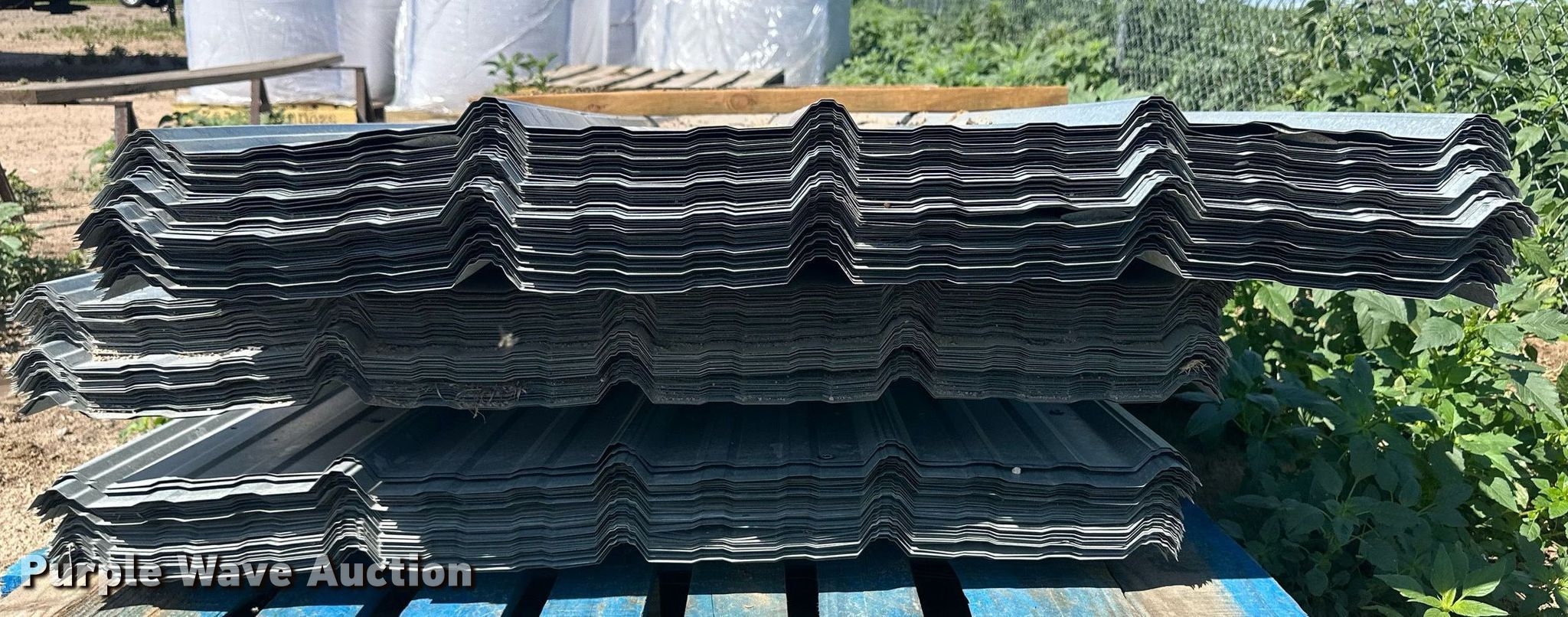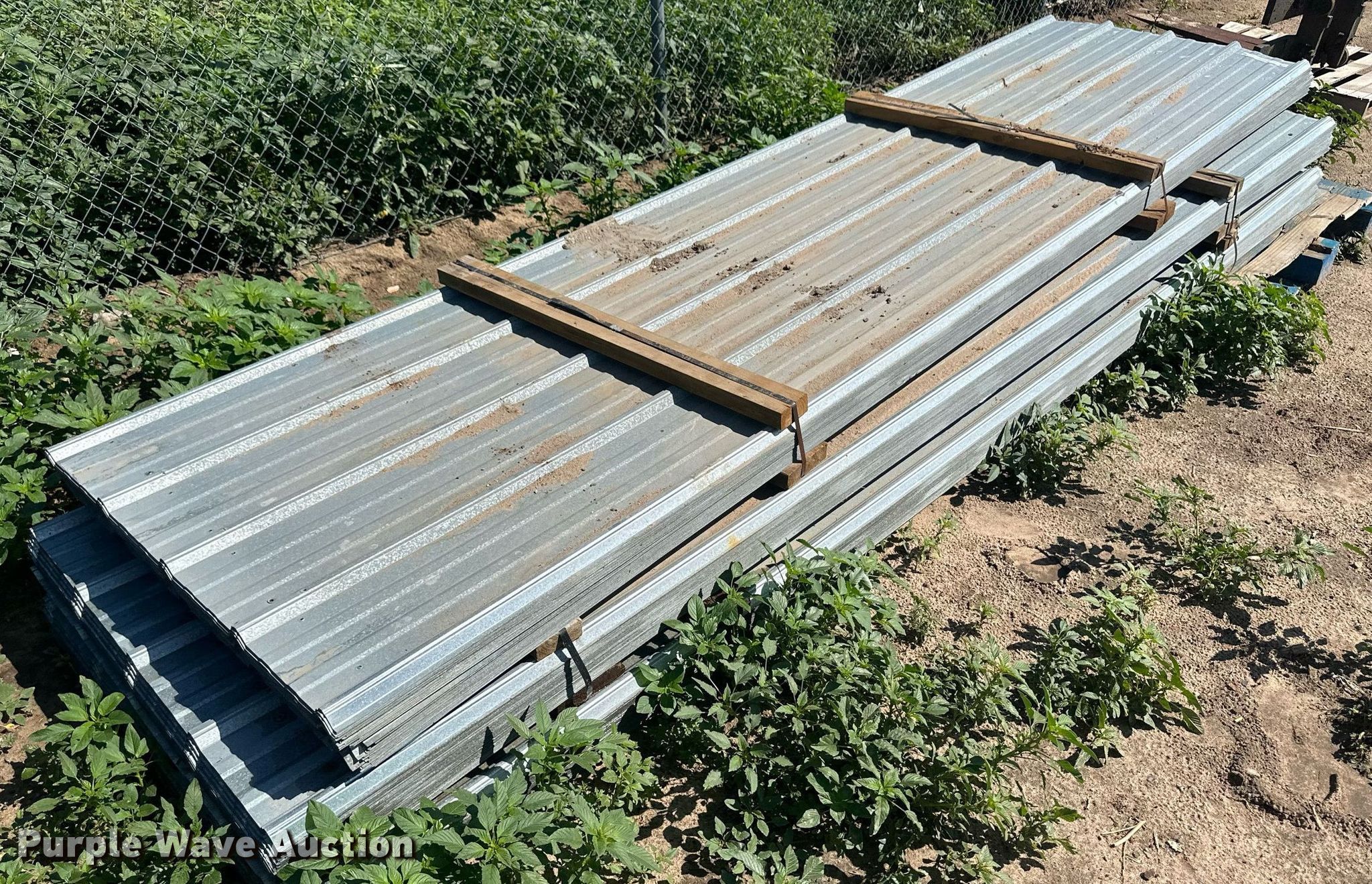 Purple Wave is selling a used Building Materials in Kansas. This item is a Approximately 280 sheets of metal siding/roofing with the following: Dimensions: 12'L x 3'W.