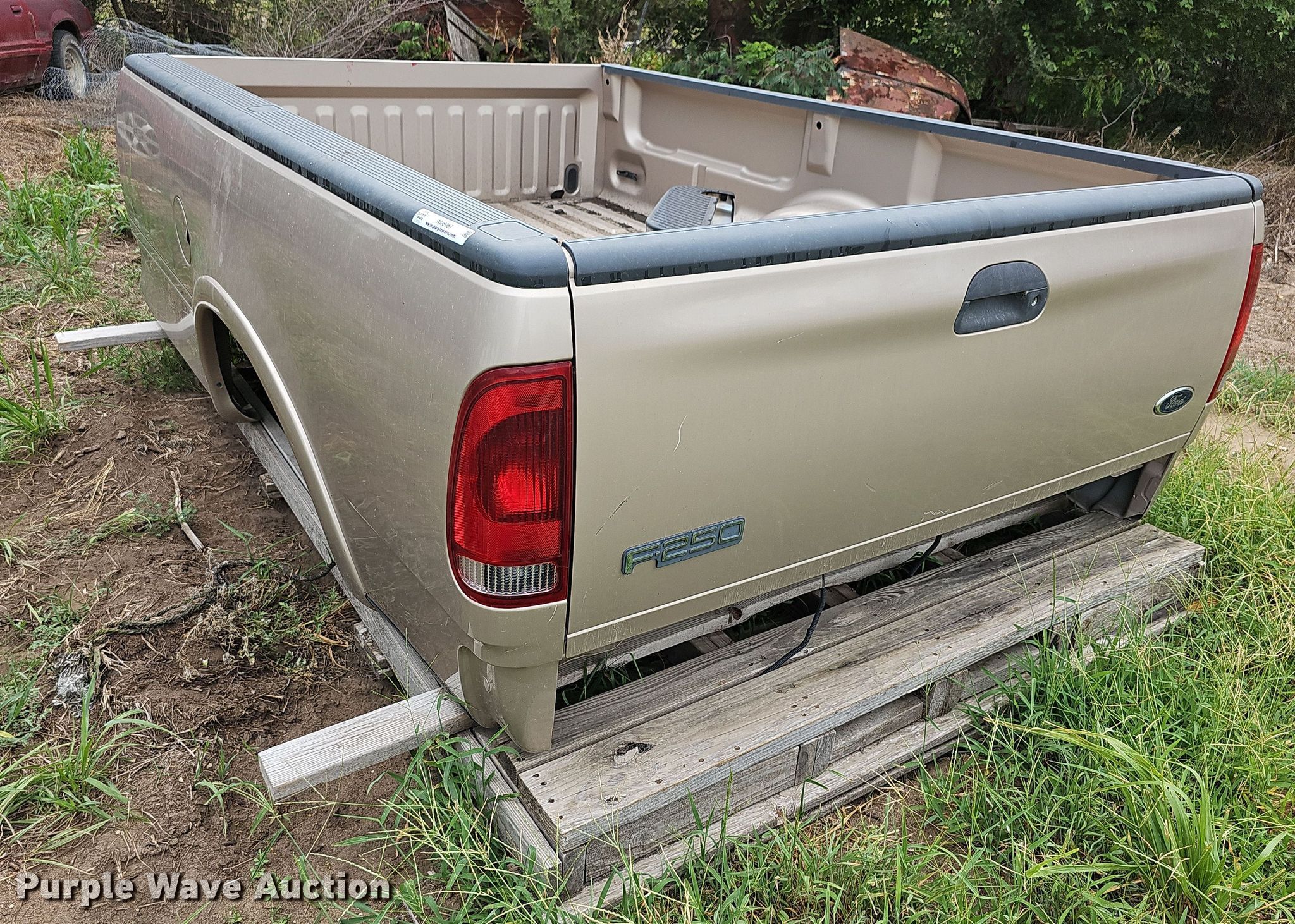Purple Wave is selling a used Automotive Parts or Acces. in Kansas. This item is a Ford F250 pickup truck bed with the following: 8'6" L x 63" W, Bumper, Fits 1999 to 2004 Ford F250