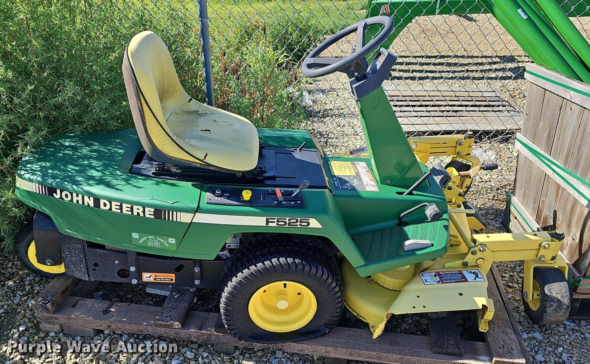 Purple Wave is selling a used Lawn Mower in Kansas. This item is a (2) John Deere F525 lawn mowers with the following: Cutting width: 48", Serial: MOF525X120364, MOF525A130156
