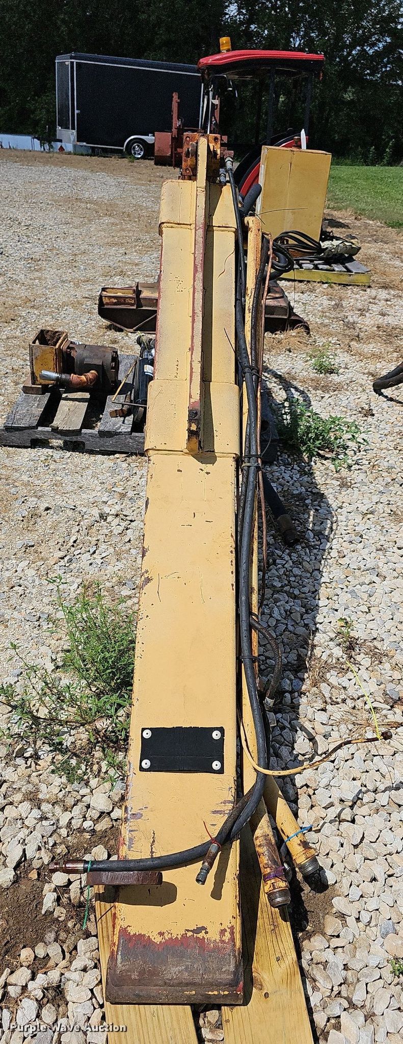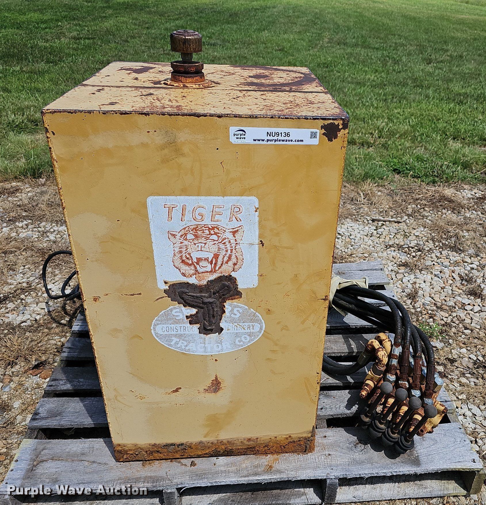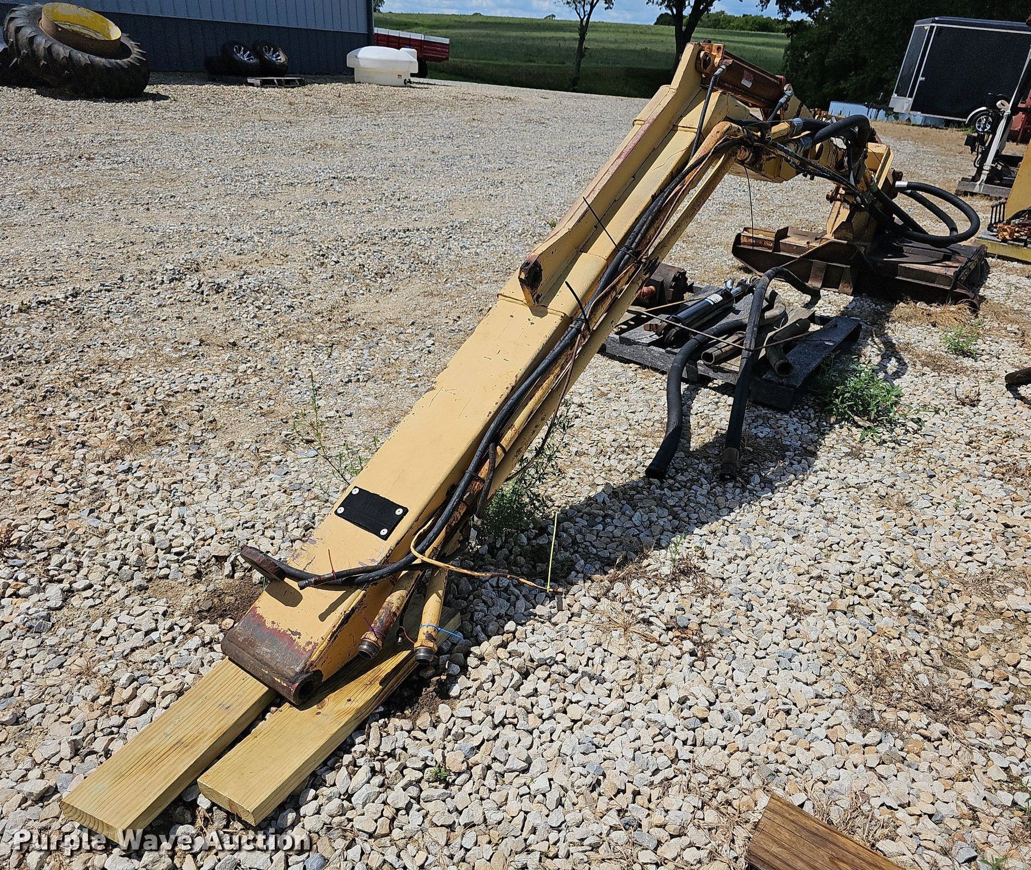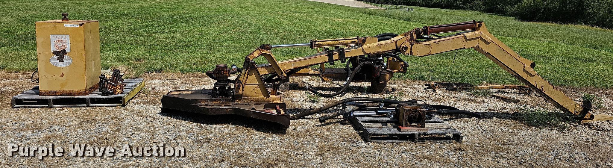 Purple Wave is selling a used Mower, Cutter, Shredder in Kansas. This item is a Tiger side boom rotary mower with the following: Hydraulic tank, Controls, Mounting brackets, Cylinders, Pumps, Hoses, Blades missing