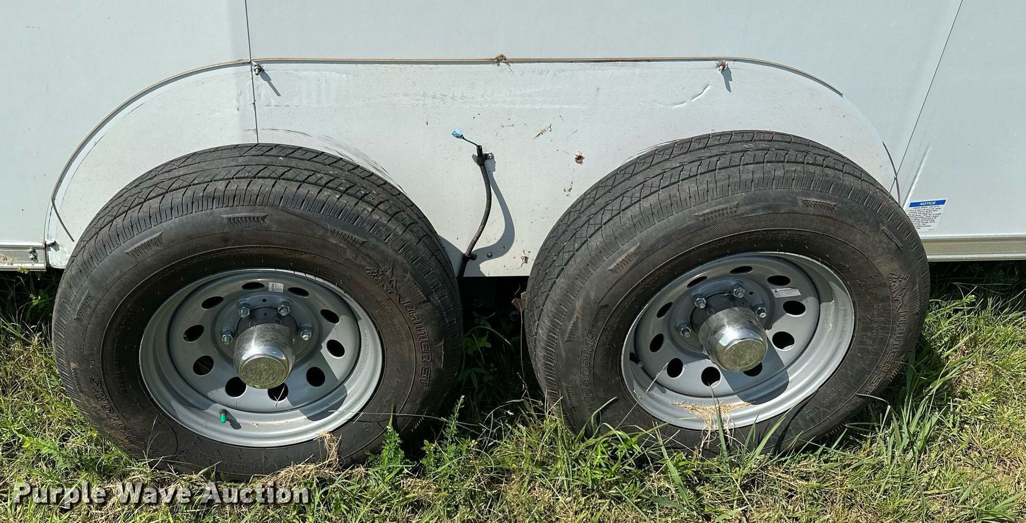 2022 Forest River Continental Cargo enclosed cargo trailer. VIN: 5NHUVA727NY046821, Claim #: 3-812539. Dimensions Overall: 20' 4" L x 102" W, Body: 18' L x 82" W. Features Deck type: Wood, E-track rail system. Chassis Ball hitch: 2 5/16", Landing gear: Single, Suspension: Spring, Brakes: Electric, Axles: Tandem, Sliding, GVWR: 9,800 lbs, GAWR: 4,900 lbs. Tires Steel wheels, Size: 225/75R15. Notes Collision Damage, Non-operational hitch, Non-operational landing gear. Insurance salvage unit.. Oklahoma title. Title distribution may be delayed up to 14 days from verification of funds. Oklahoma Farm Bureau Insurance. Seminole, OK 74868
