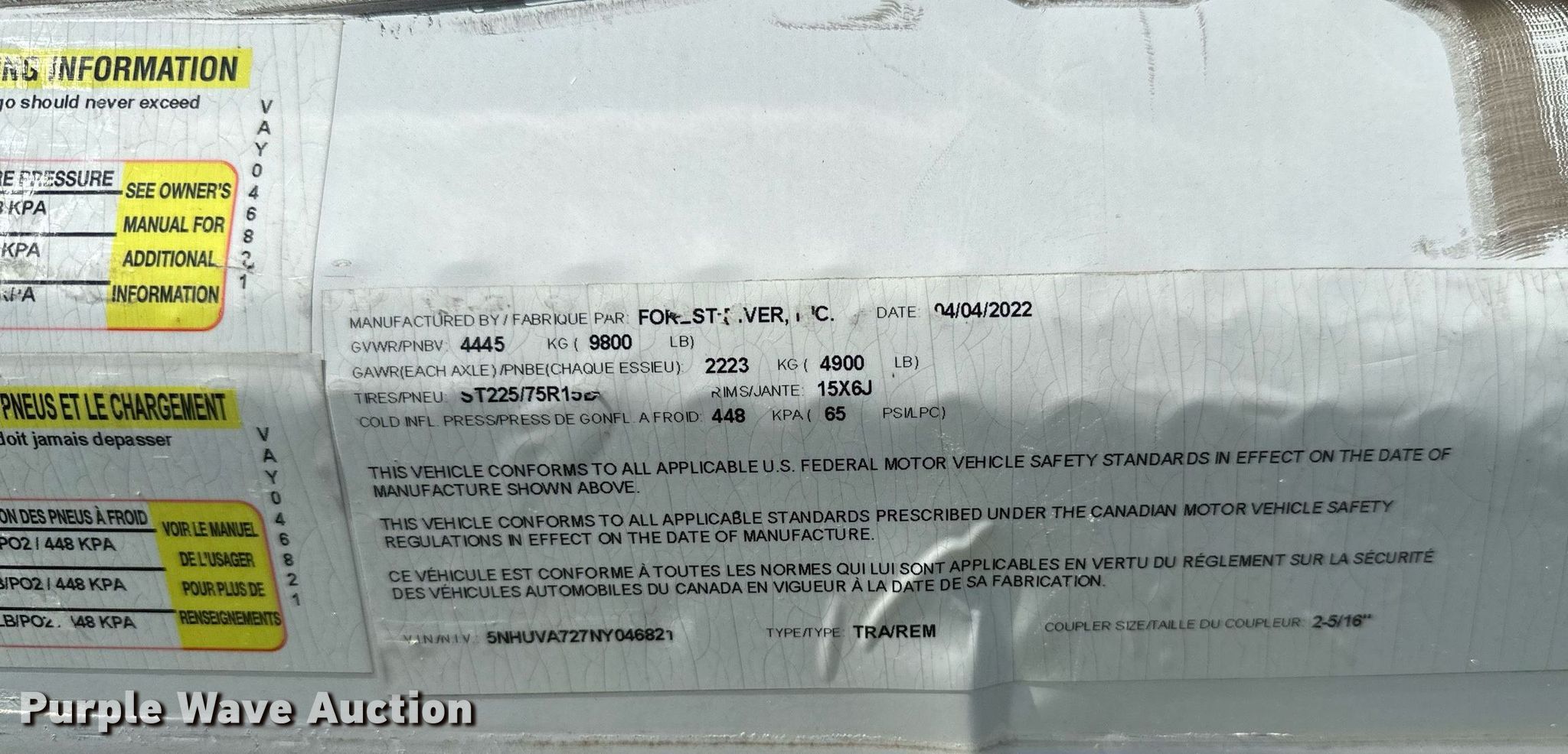 Purple Wave is selling a used Enclosed Cargo Trailer in Oklahoma. This item is a 2022 Forest River Continental Cargo enclosed cargo trailer with the following: VIN: 5NHUVA727NY046821, Claim #: 3-812539