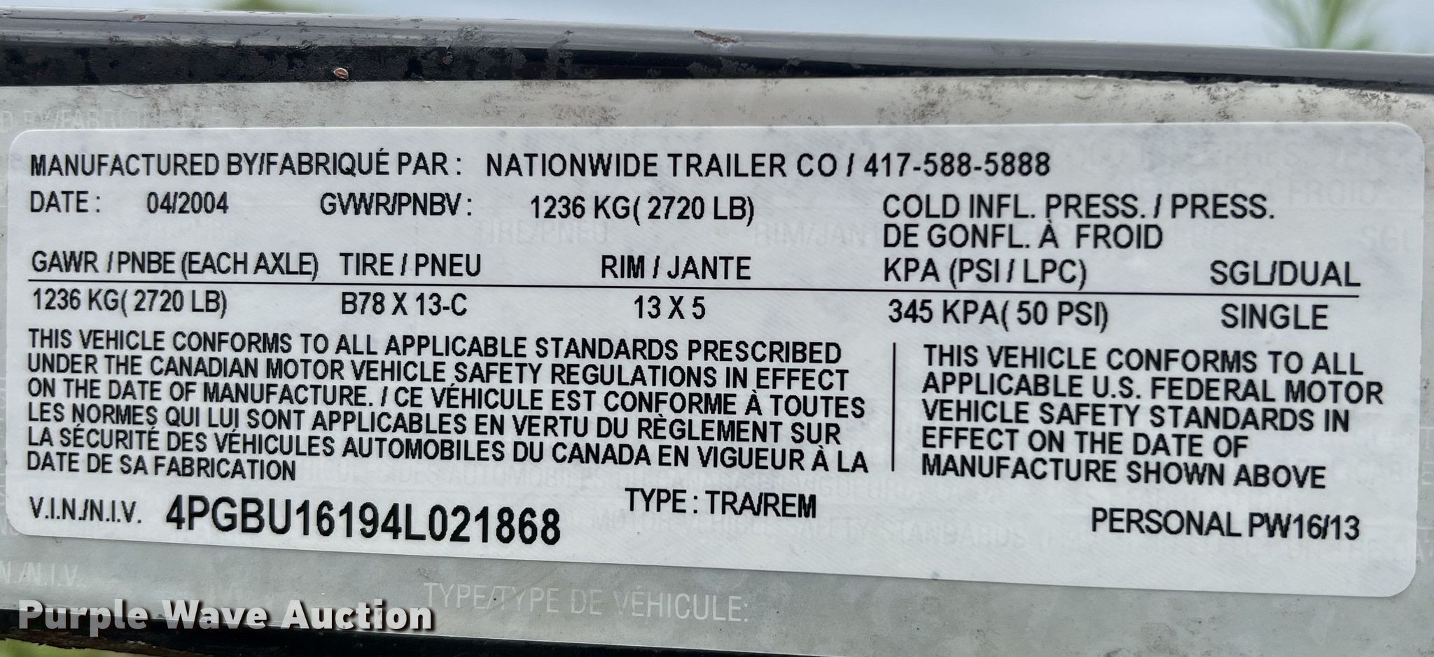 - 2004 Nationwide Trailer Co Personal PW16/13