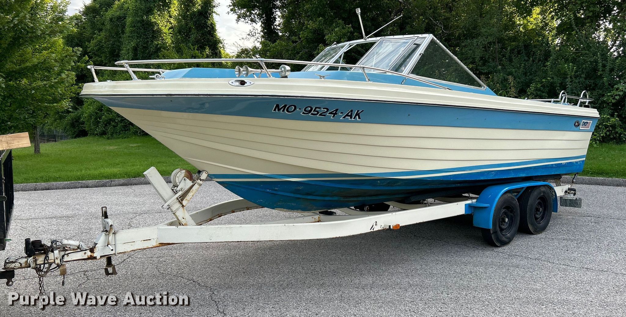 1974 IMP boat. Hours: 551 on meter, Length: 23', Hull ID: XMPK22840674. Engine Engine type: Inboard, Mercury Mercruiser, Cylinders: 8, Fuel type: Gas, HP: 255. Trailer 1974, VIN: 26278, Overall length: 24', Overall width: 80", Axles: Tandem, Tire size: F78-14. Boat: Missouri title. Trailer: Missouri title. Title distribution may be delayed up to 14 days from verification of funds. Thoele Inc.. St. Charles, MO 63301