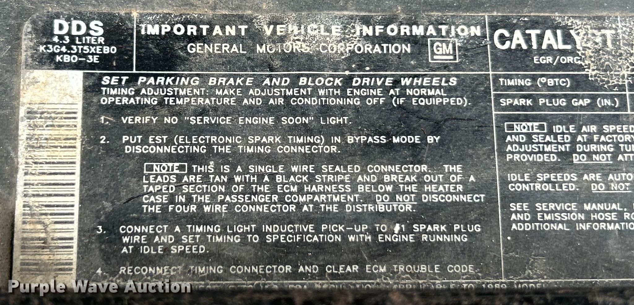 Take a look at this used 1989 GMC S15 Jimmy SUV being sold on August 30th, 2023 in the SOLD! August 30 Vehicles and Equipment Auction made by GMC. Take a look at all of the item information below or take a look at similar auctions for Passenger Vehicles.