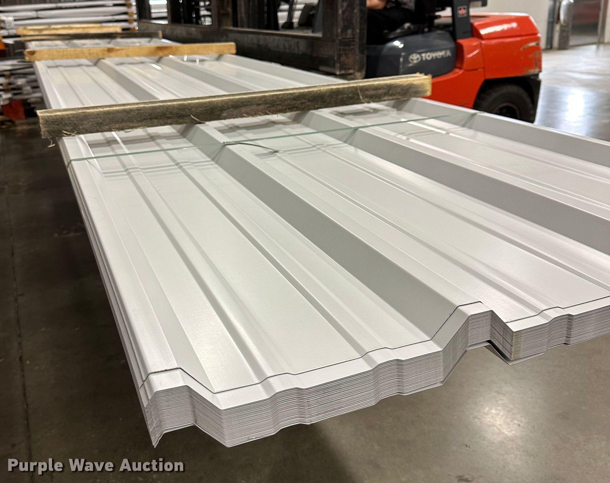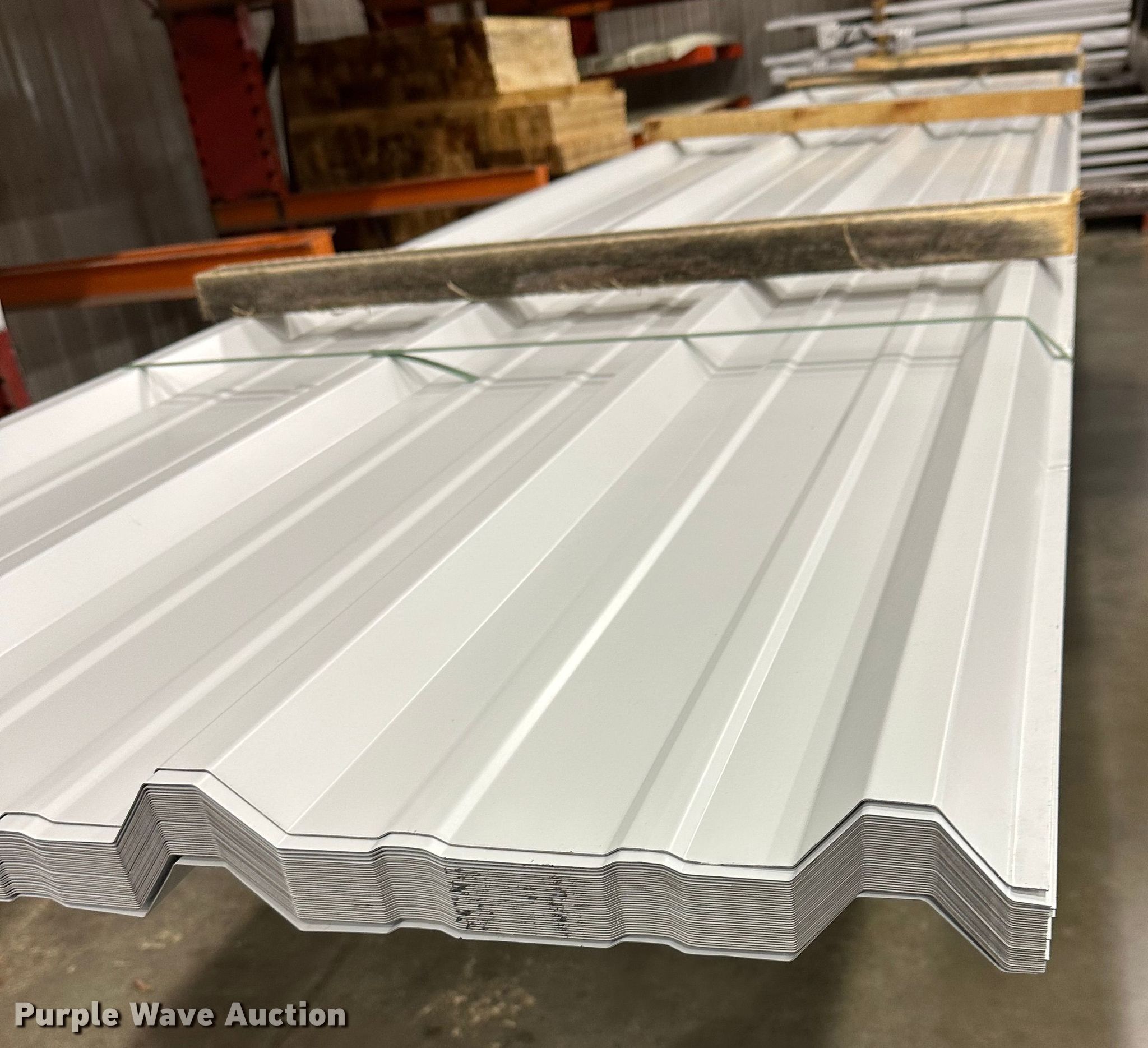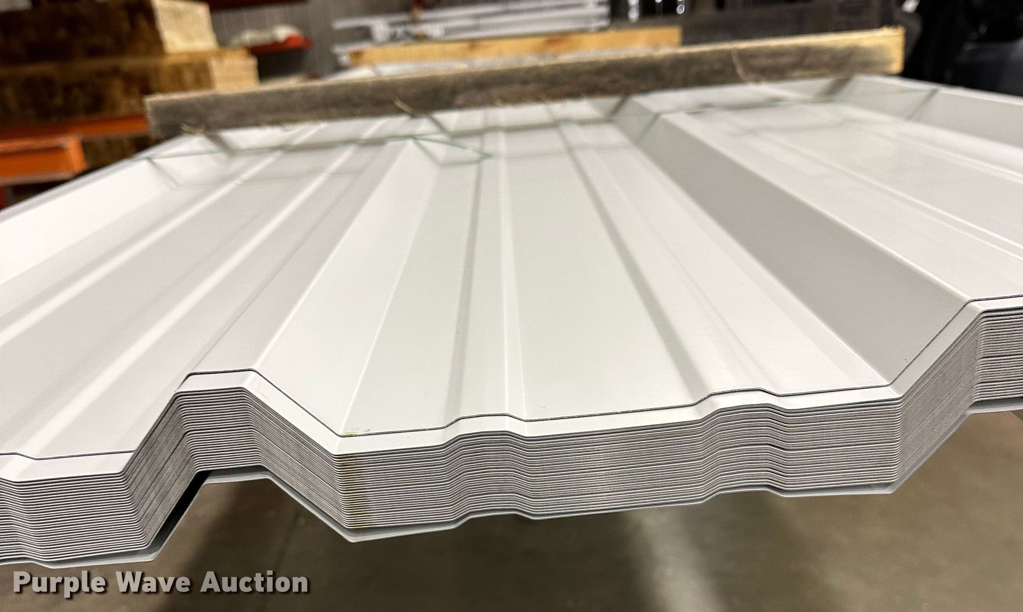 Purple Wave is selling a used Building Materials in North Dakota. This item is a (32) sheets of metal siding/roofing with the following: 29' 6" L x 36" W, R panels, 24 gauge, Color: White, Possible blemishes, Unused