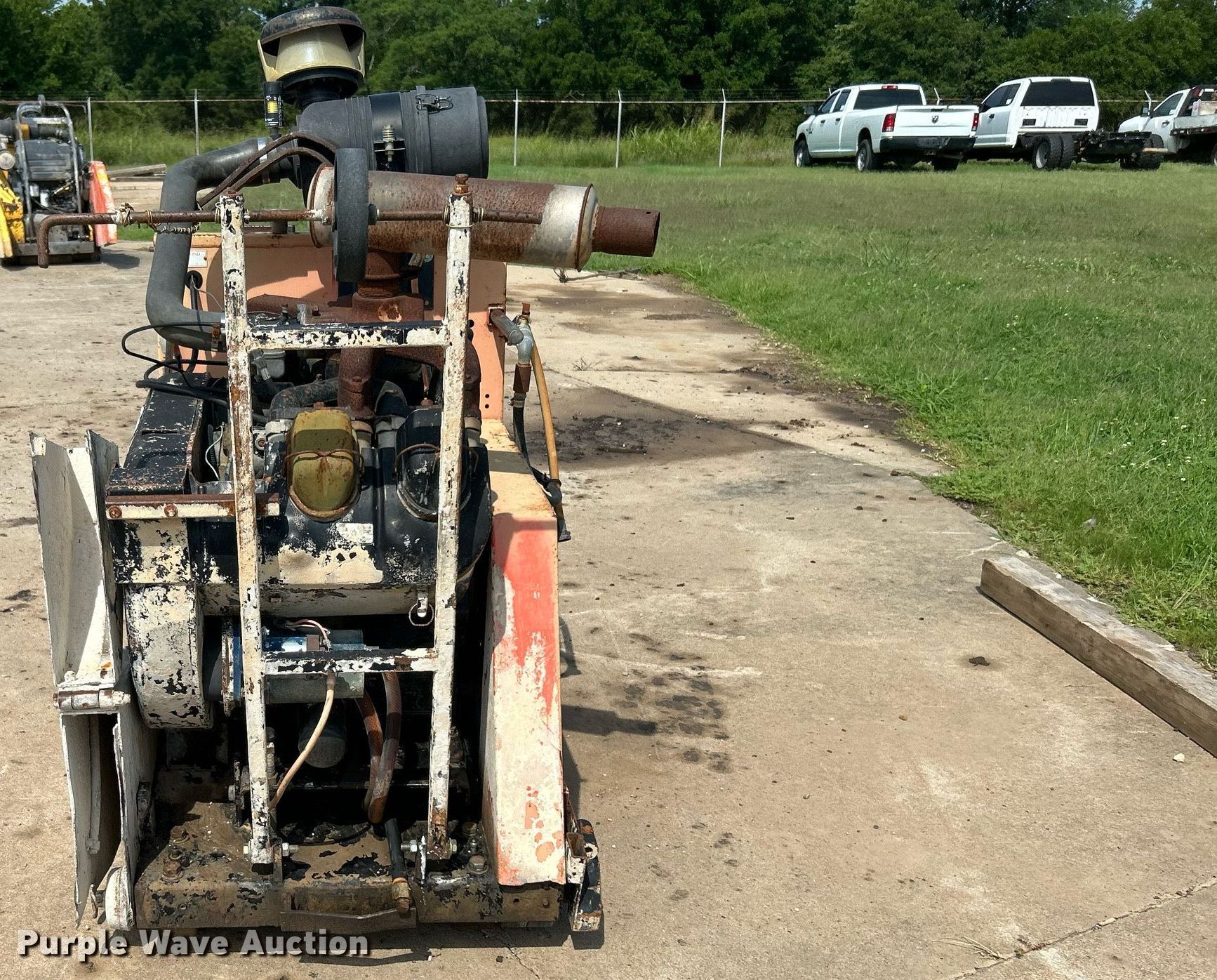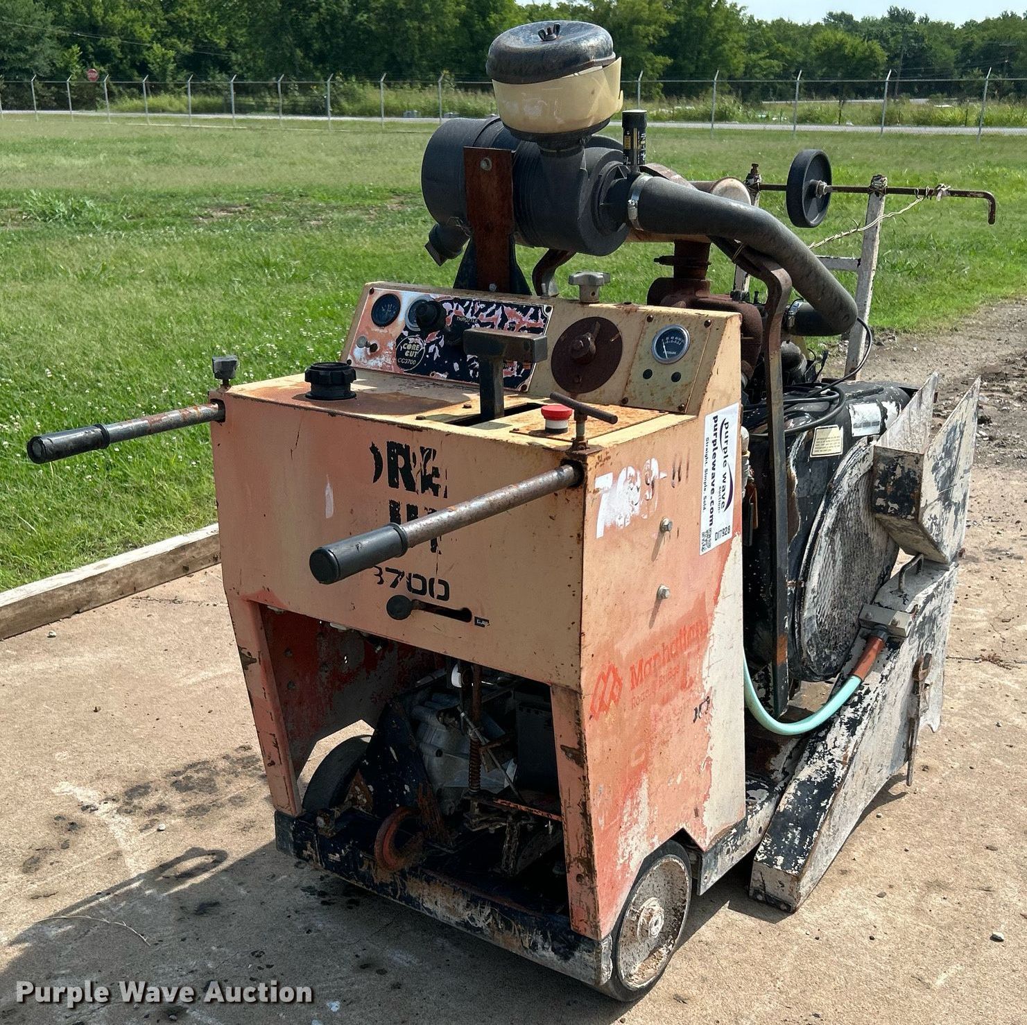 Diamond Core Core Cut CC3700 concrete saw. Hours: 1,437 on meter, Unit #: 99-81. Engine Wisconsin V465D1, Serial: 97020156, Cylinders: 4, Fuel type: Gas. Features Maximum blade capacity: 42" diameter. Notes Hydraulic pump missing, Blade missing, Unknown operating condition. Manhattan Road & Bridge. 2553 South 55th Street East. Muskogee, OK 74403
