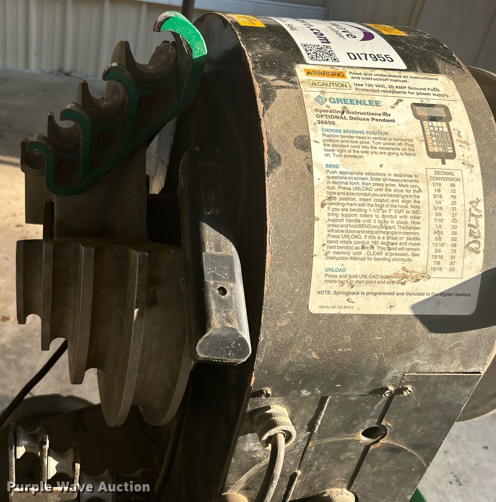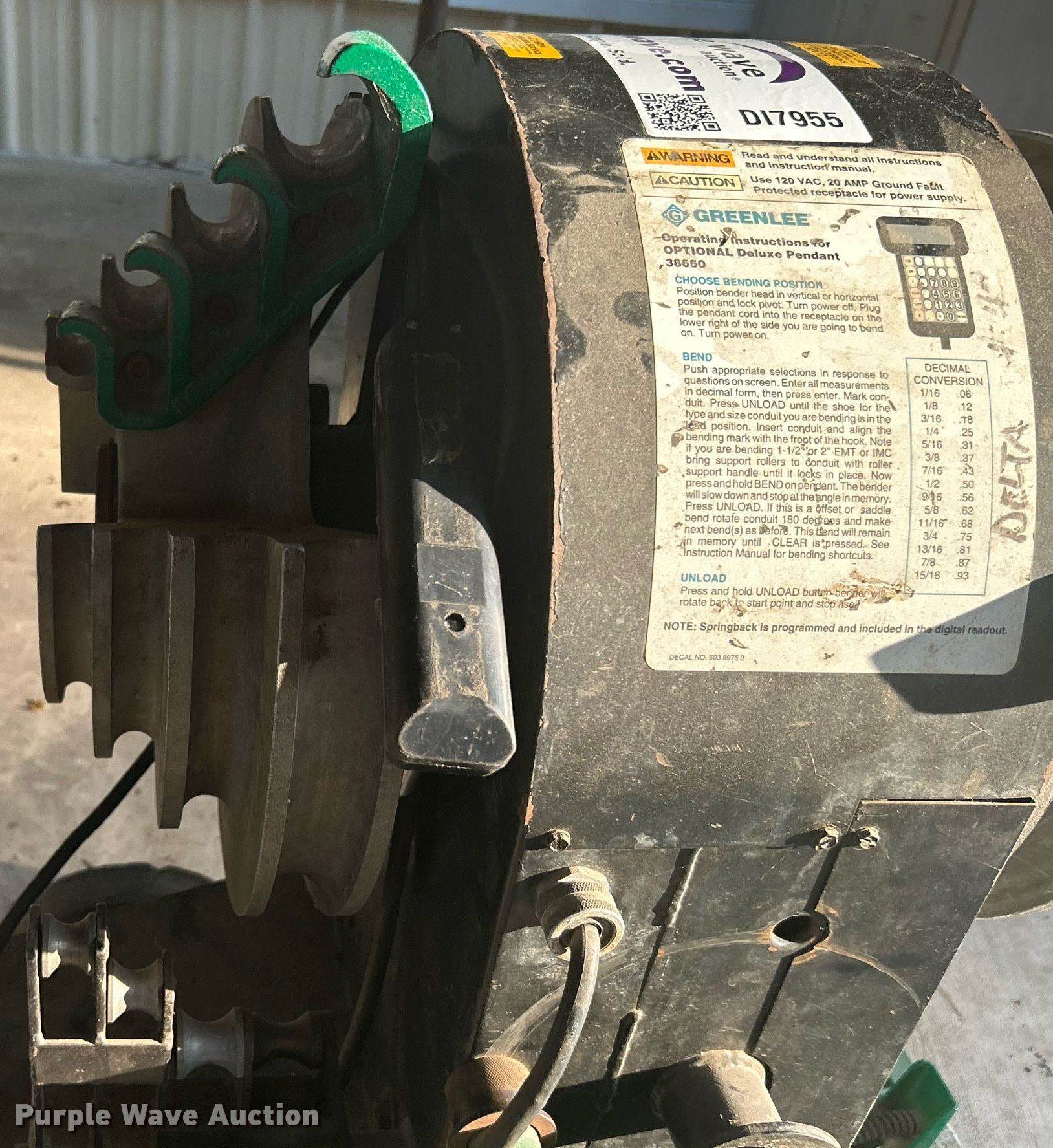 Greenlee 855 Smart Bender conduit bender has sold in Broken Arrow, Oklahoma for $687.50. Item DI7955 sold on August 31st, 2023.