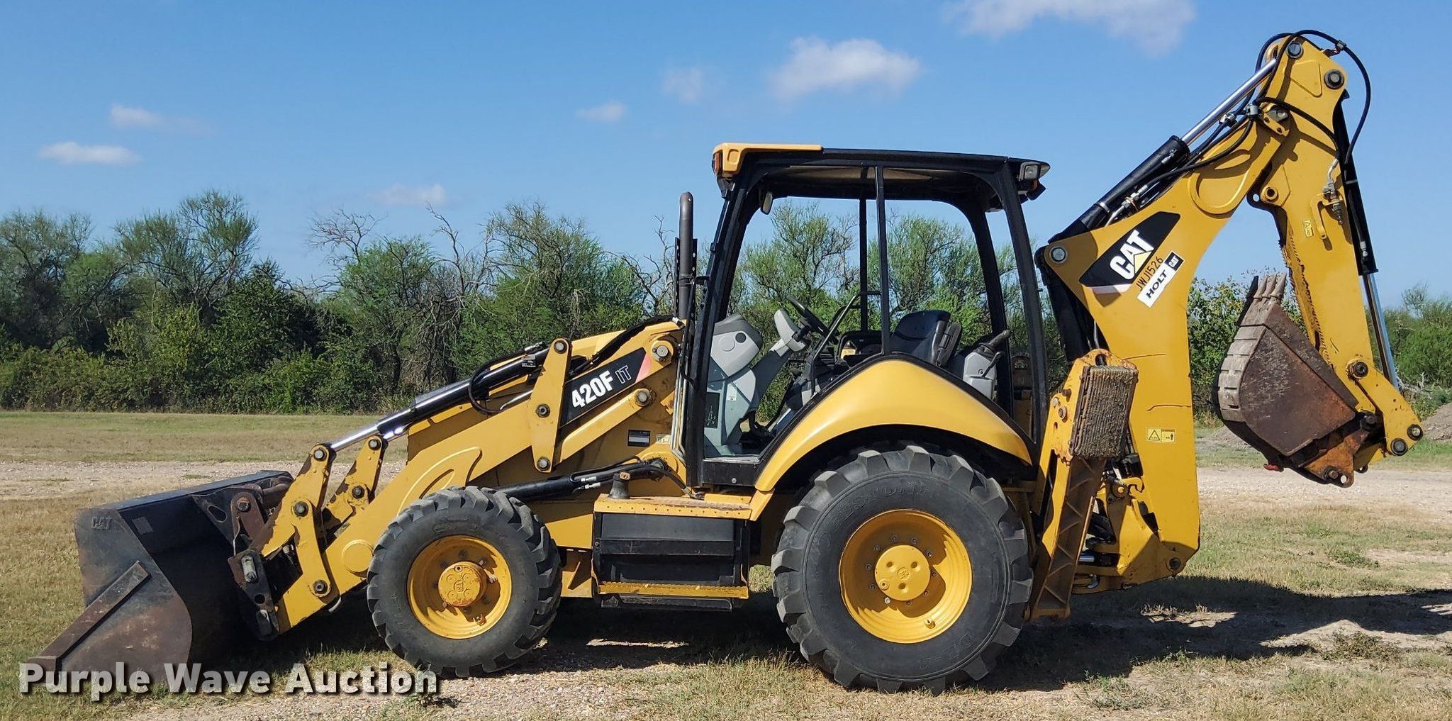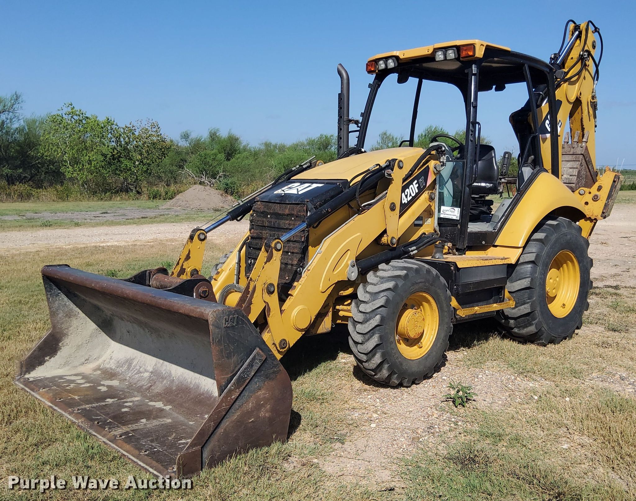 Purple Wave is selling a used Tractor Loader Backhoe in Texas. This item is a 2013 Caterpillar 420F IT backhoe with the following: Hours: 3,672 on meter, Serial: CAT0420FKJWJ01526