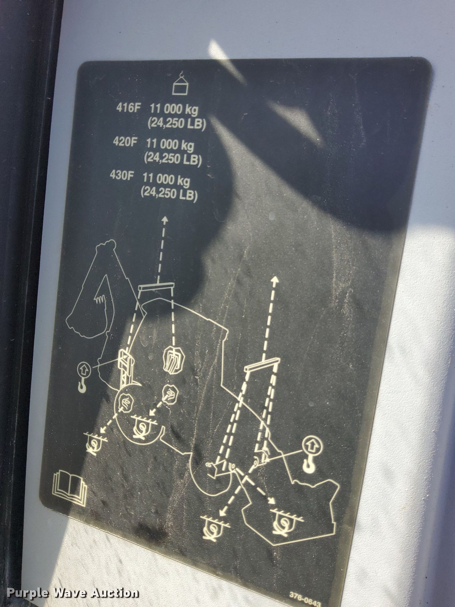 2013 Caterpillar 420F IT backhoe. Hours: 3,672 on meter, Serial: CAT0420FKJWJ01526. Engine Caterpillar C4.4 Acert, Serial: C7N13393, Displacement: 4.4L, Cylinders: 4, Fuel type: Diesel. Transmission Shuttle shift, 4F - 4R. Chassis Four wheel drive, Differential lock. Operators station OROPS, Backhoe controls: Pilot control, Pattern changer. Features Loader IT Carrier, Auxiliary electrical outlet, Quick coupler: Hydraulic, Auxiliary hydraulics, Bucket Caterpillar, Width: 94", Cutting edge: Bolt-on, Forks Length: 47", Backhoe Quick coupler: Manual, Auxiliary hydraulics, Bucket Gannon, Width: 17", Teeth: 4, Backhoe bucket Woods 4418136, Width: 34", Teeth: 7, Backhoe bucket Balderson 010 2121, Width: 11", Teeth: 3, Backhoe bucket Width: 21", Teeth: 5. Tires Front: 12.5/80-18, Rear: 19.5L-24. Falcon Lease Operating Company. 31 Salem Rd. Victoria, TX 77904