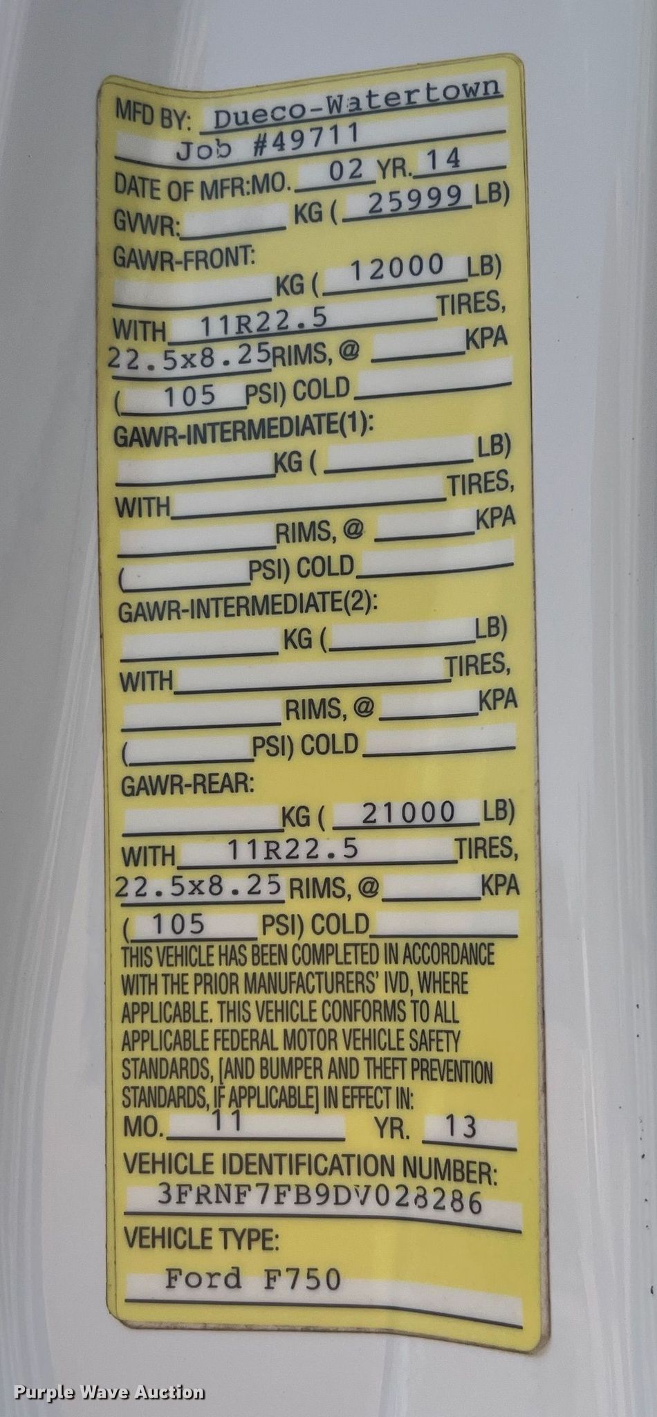 Purple Wave is selling a used Bucket Truck in Texas. This item is a 2013 Ford F750 Super Duty forestry bucket truck with the following: Miles: 105,432 on odometer, Hours: 8,004 on meter, VIN: 3FRNF7FB9DV028286