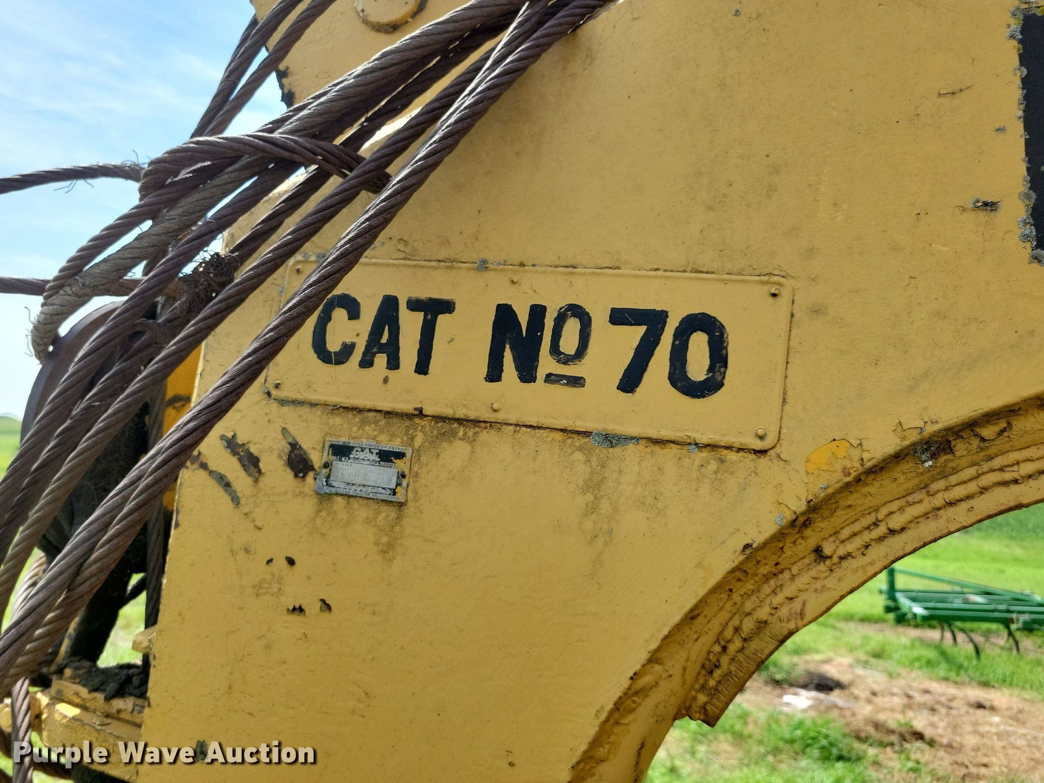 Caterpillar 70 scraper. Features. Cable lift, Axle ride, Rear push block. Tires Front: 16R20, Rear: 18-25, Brand: Goodyear. Limestone Ave. Winterset, IA 50273