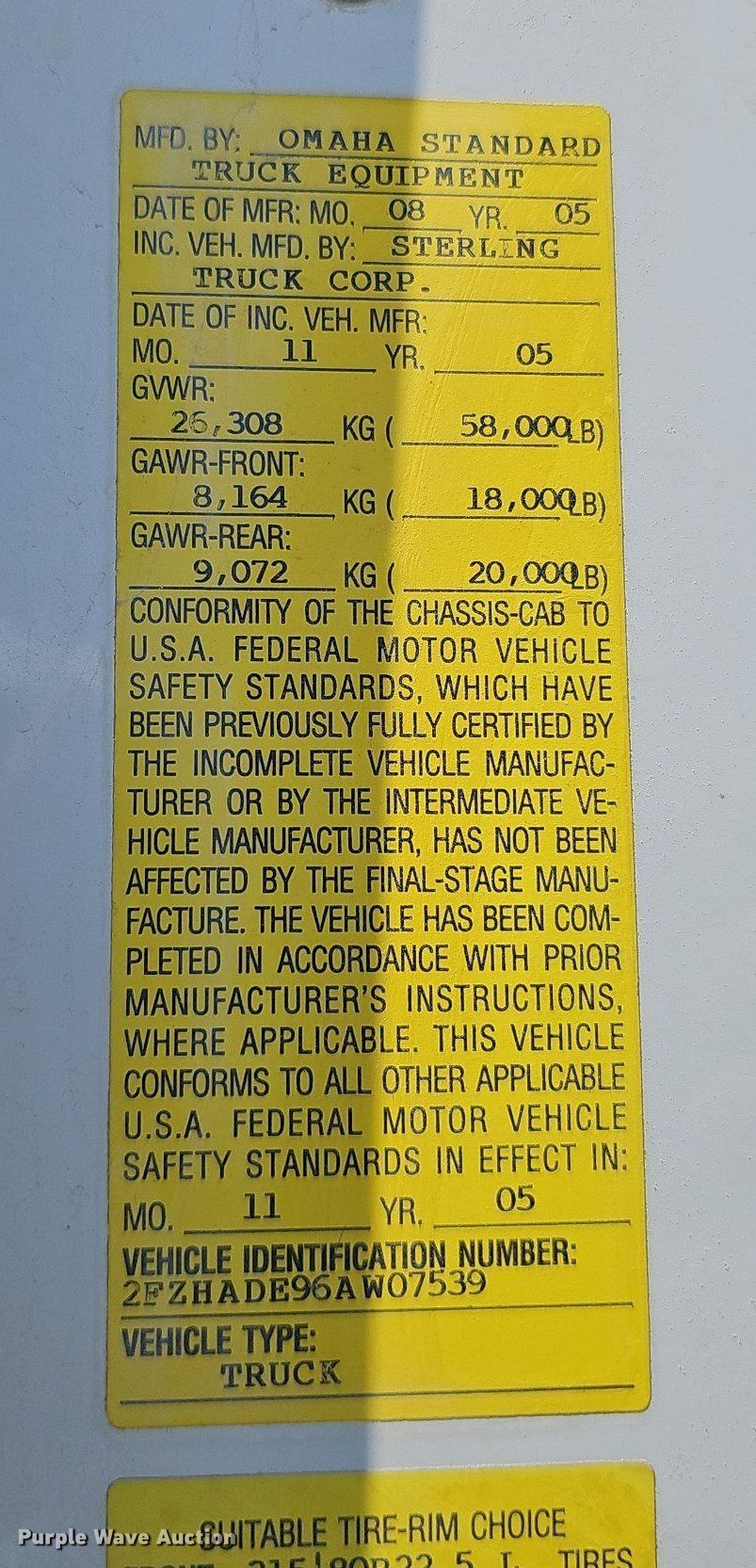 2006 Sterling LT9500 dump truck. Miles: 130,330 on odometer, Hours: 7,130 on meter, VIN: 2FZHAZDE96AW07539. Engine Caterpillar C13 Acert, Cylinders: 6, Fuel type: Diesel. Transmission Automatic. Chassis Axles: Tandem, Differential lock: Inter-axle, Suspension: Spring over walking beam, Brakes: Air, Front mount PTO, GVWR: 58,000 lbs FAWR: 18,000 lbs, IAWR: 20,000 lbs, RAWR: 20,000 lbs, Wheelbase: 188". Interior AC, Heat, Heated mirrors, Cruise control. Features Dump bed 11' L x 96" W, Side height: 36", Side board height: 12", Bed type: Steel, Ram: Single, Spreader Hi-Way XT 221S, Plow Width: 144". Tires Front: 315/80R22.5, Rear: 11R22.5. Notes (2) end gates included, Windshield chipped or cracked. Iowa title. Title distribution may be delayed up to 14 days from verification of funds. Lawrence Trenching LLC. 21854 Platteview Road. Gretna, NE 68028