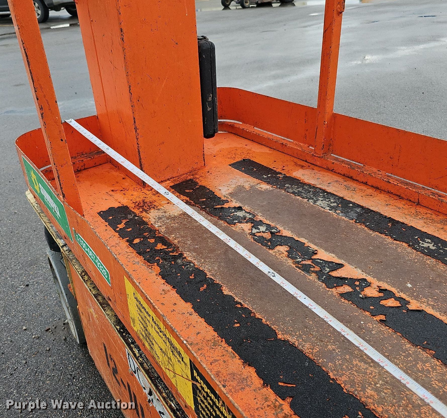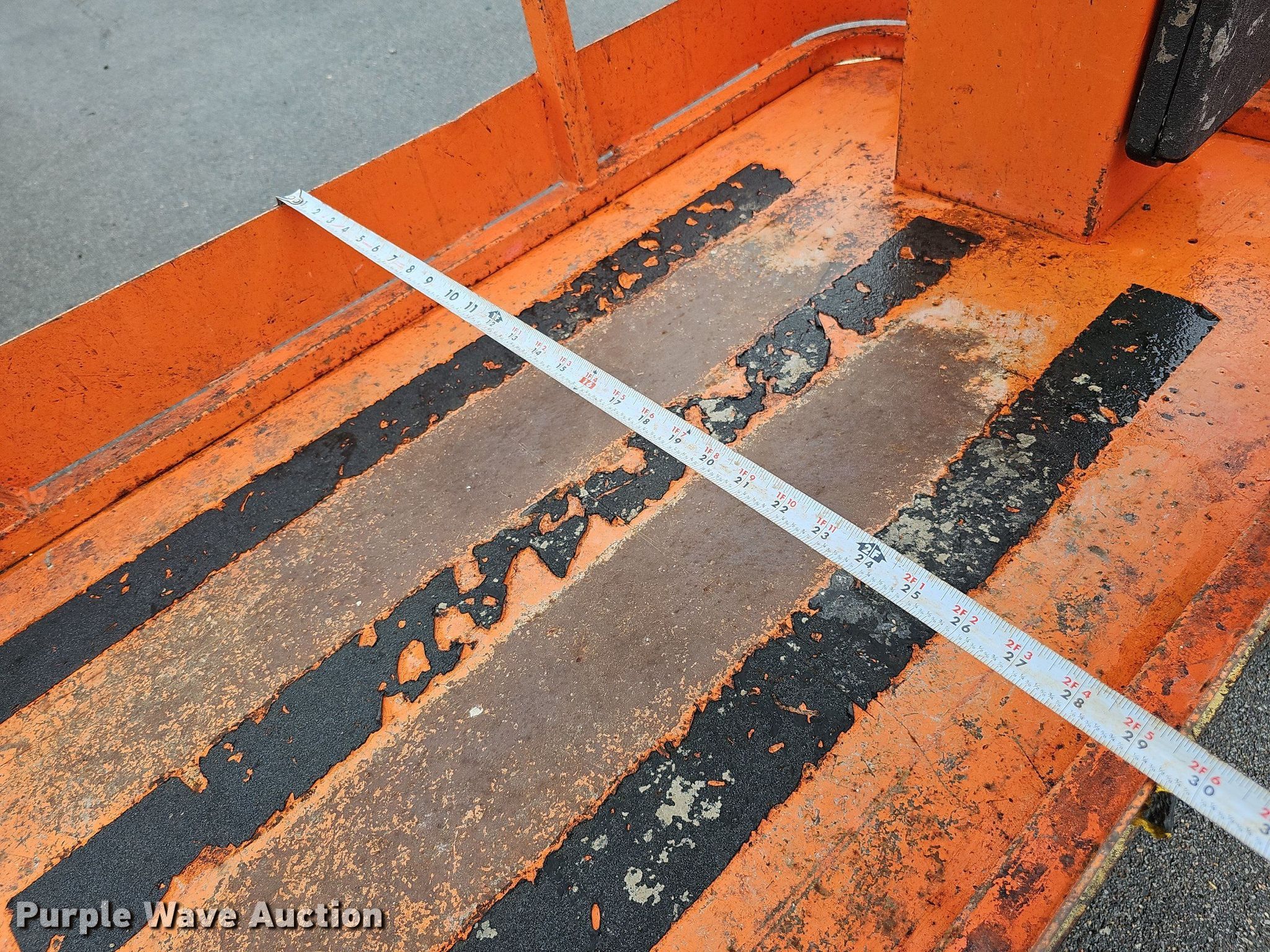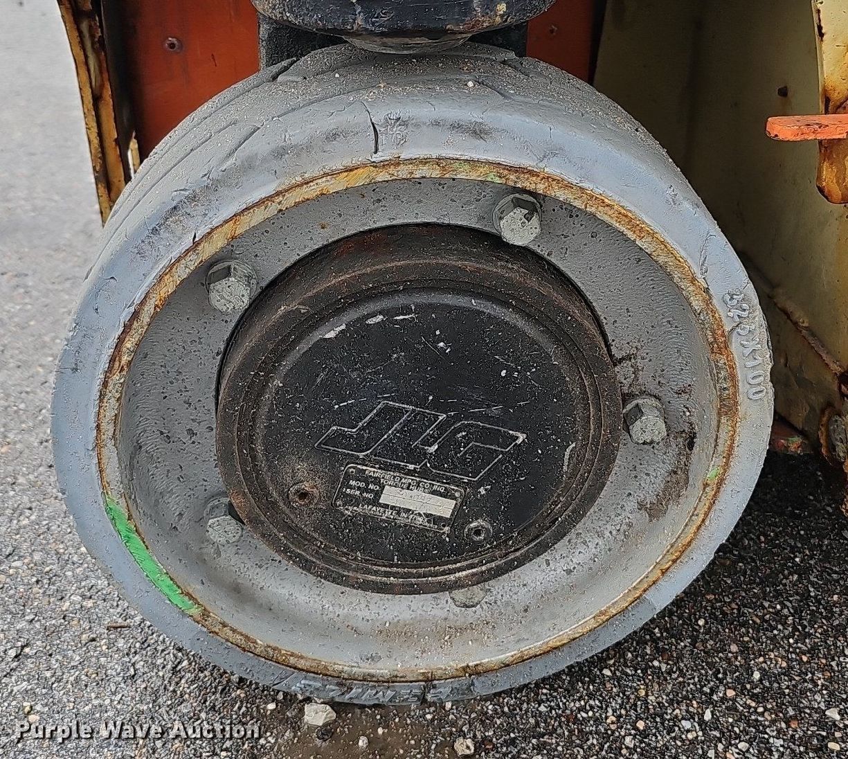2010 JLG 1230ES vertical lift. Hours: 427 on meter, Serial: 0200197552. Electric Motor Volts: 24. Features Maximum lift capacity: 500 lbs, Maximum lift height: 12', Platform: 52" L x 29.5" W, Controls: Platform, Ground. Tires Tire size: 323x100, Solid. Jordan Machinery / S & N Auto Sales. 25050 U.S. 275. Waterloo, NE 68069