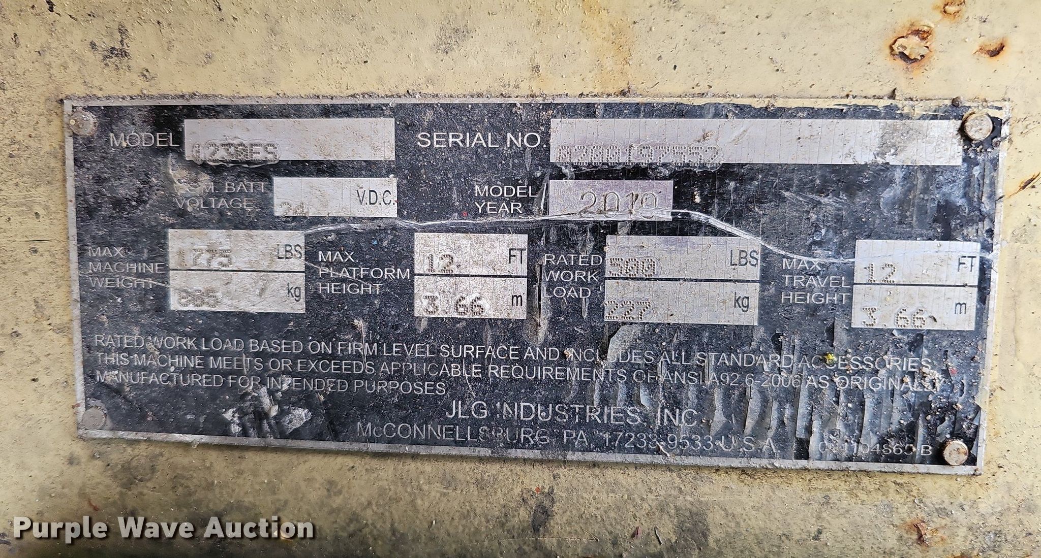 Purple Wave is selling a used Scissor or Vertical Lift in Nebraska. This item is a 2010 JLG 1230ES vertical lift with the following: Hours: 427 on meter, Serial: 0200197552