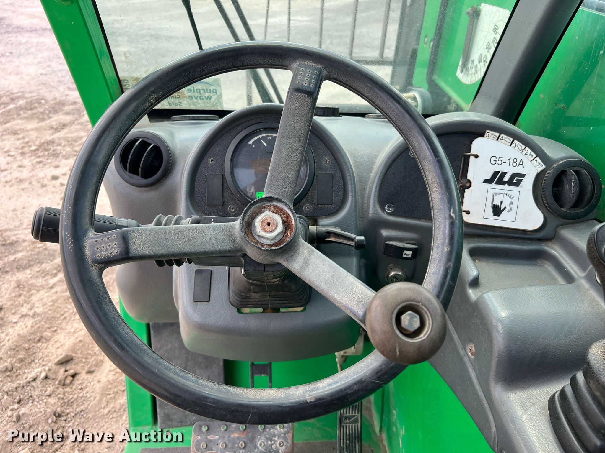 Purple Wave is selling a used Telehandler in Texas. This item is a 2015 JLG G5-18A telehandler with the following: Hours: 3,421 on meter, Serial: GTD46J0002752M