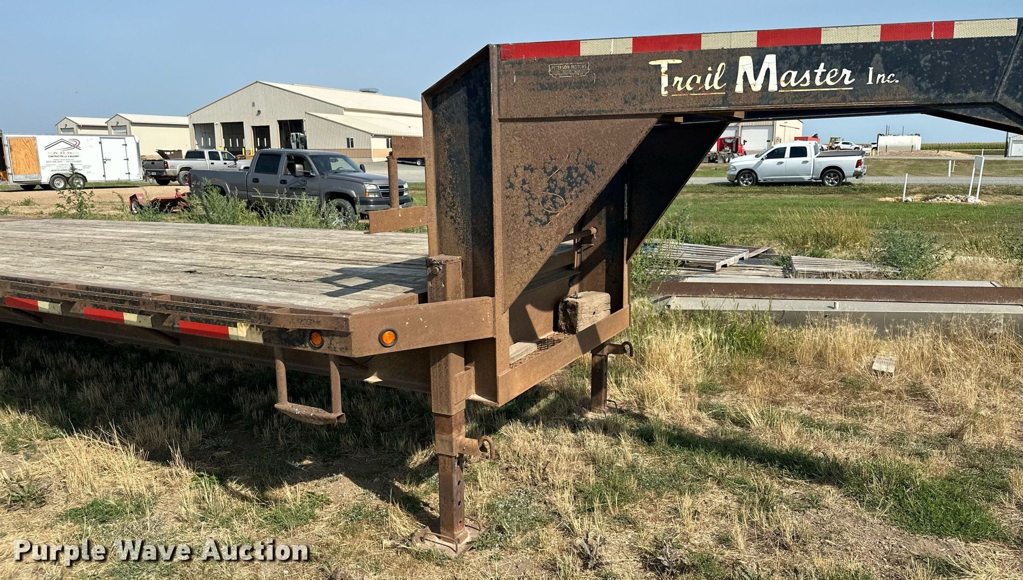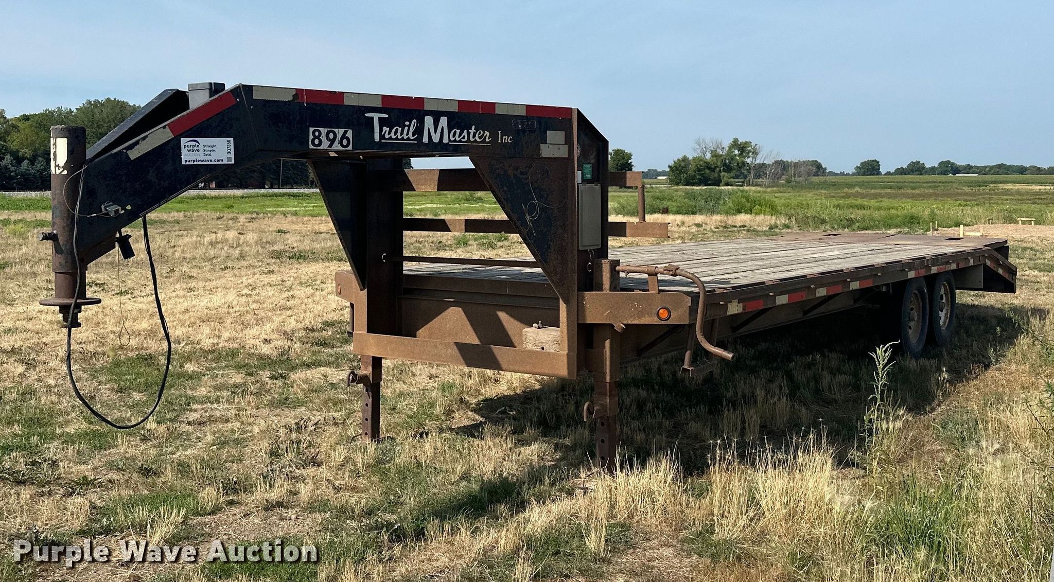 2006 Trail Master equipment trailer. VIN: 5BEBF25236C142381. Dimensions Overall: 33' 5" L x 102" W, Deck: 20' 1" L x 102" W, Deck height: 3', Ramps: Manual Length: 4' 5". Features Deck type: Wood. Chassis Hitch: Gooseneck, Landing gear: Dual, Suspension: Spring, Brakes: Electric, Axles: Tandem. Tires Steel wheels, Size: 235/85R16. Iowa title. Title distribution may be delayed up to 14 days from verification of funds. Christensen Family Farms. 23971 Co Rd 10. Sleepy Eye, MN 56085