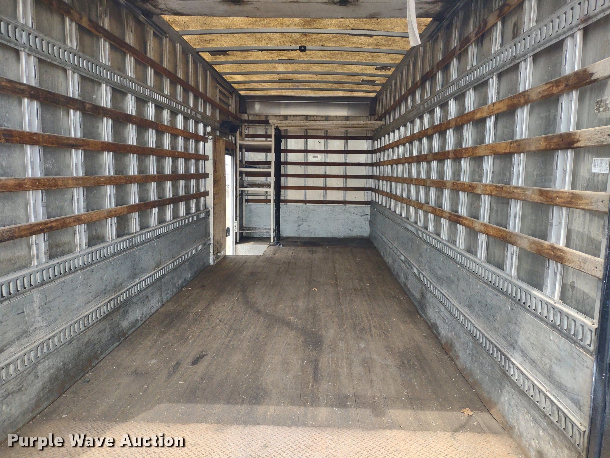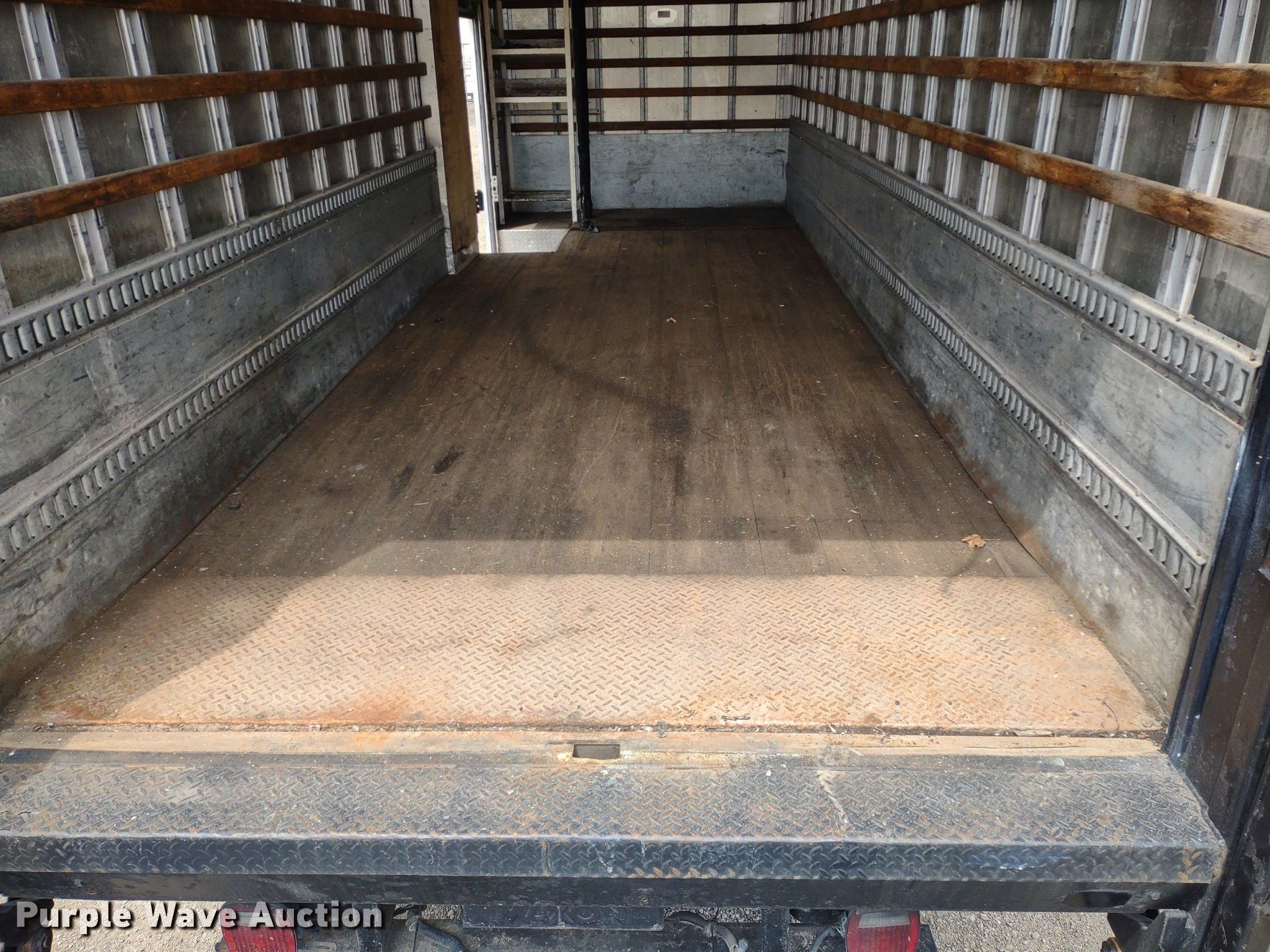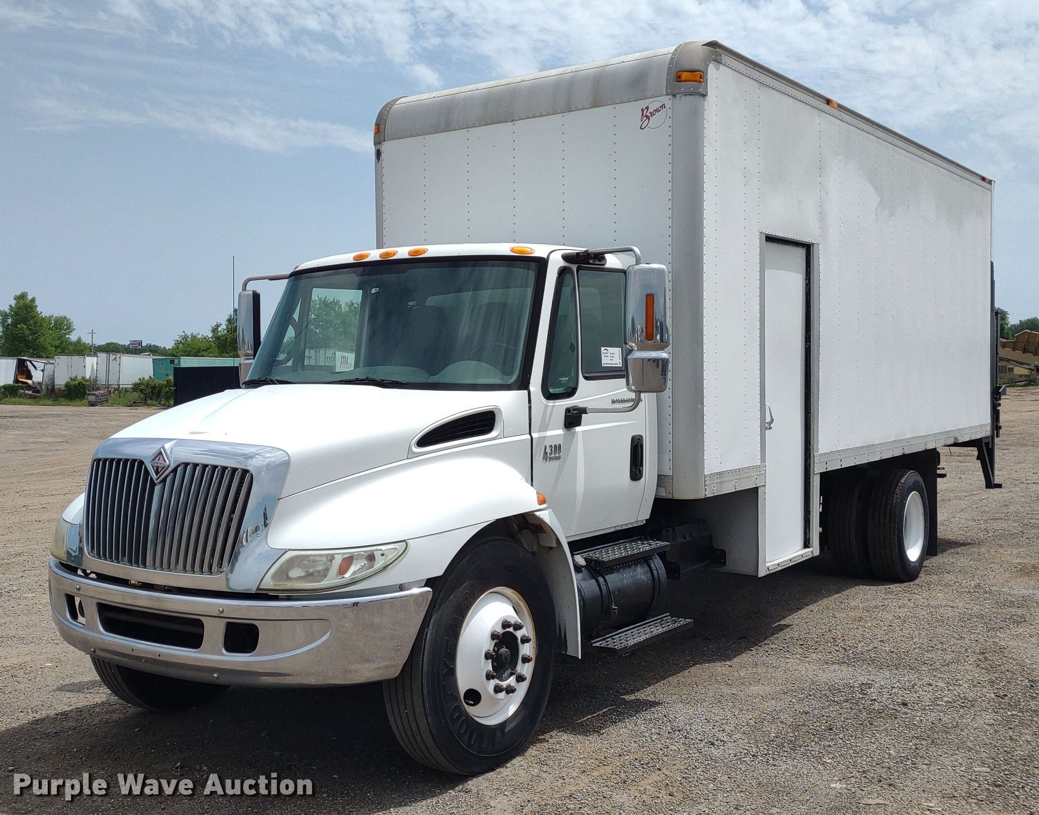 2004 International 4300 box truck. Miles: 536,410 on odometer, Hours: 13,558 on meter, VIN: 1HTMMAAM14H678585, Unit #: 2049. Engine International DT466, Displacement: 7.6L, Cylinders: 6, Fuel type: Diesel. Transmission Automatic. Chassis Axles: Single, Suspension: Spring, Brakes: Hydraulic. Interior AC, Heat, Heated mirrors, Power windows, Power locks, Cruise control, Auxiliary controls. Features Box bed Brown 491714221, 22' L x 96" W x 102" H, Floor: Wood, End gate lift Maxon RC-33, Capacity: 3,000 lbs.. Tires Front: 11R22.5, Rear: 275/70R22.5. Sunflower Paving Inc./RD Johnson Excavating. 4123 Northeast Seward Avenue. Topeka, KS 66616