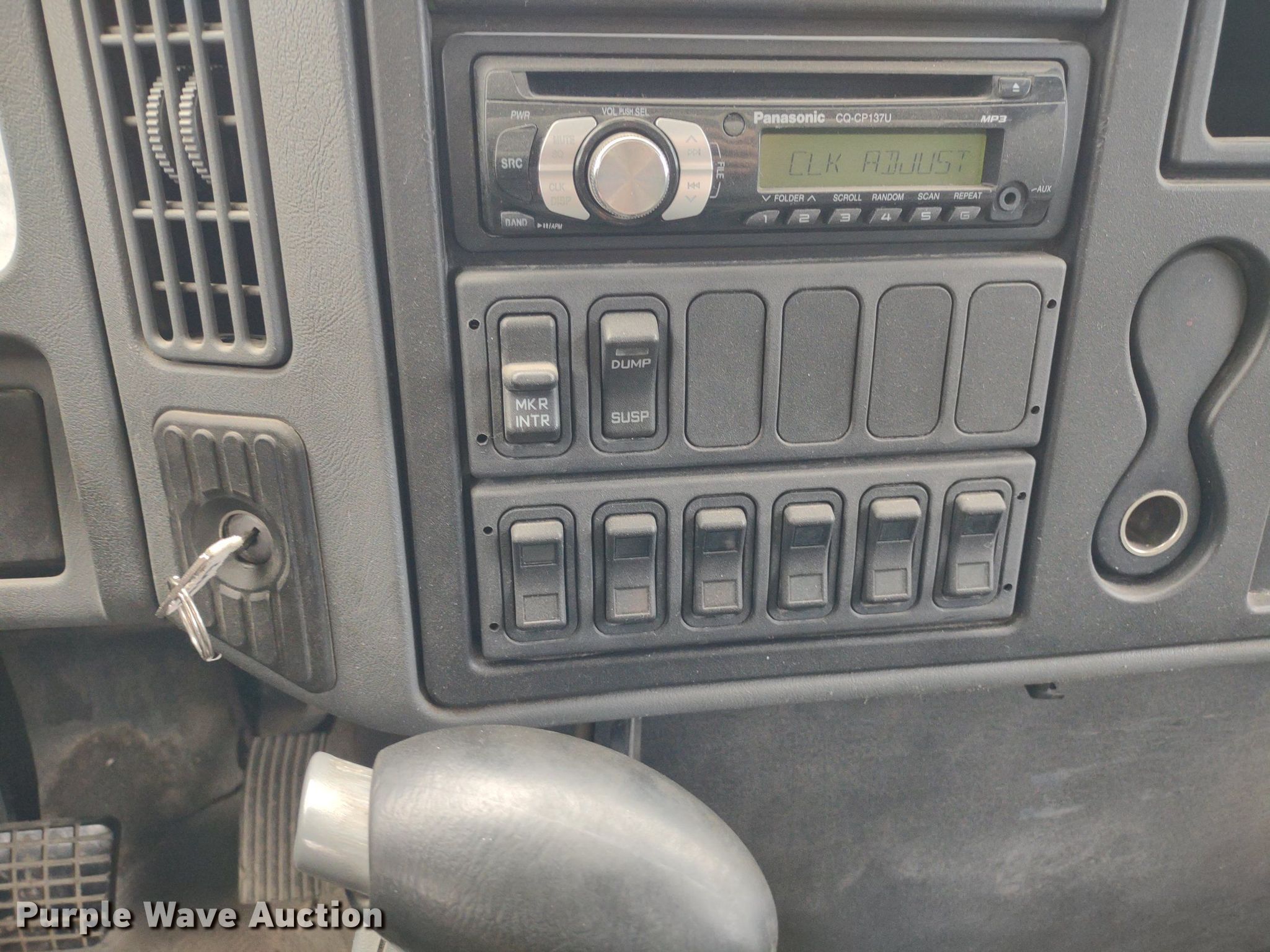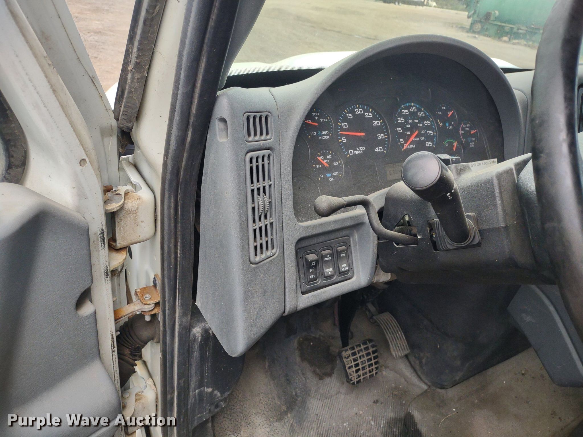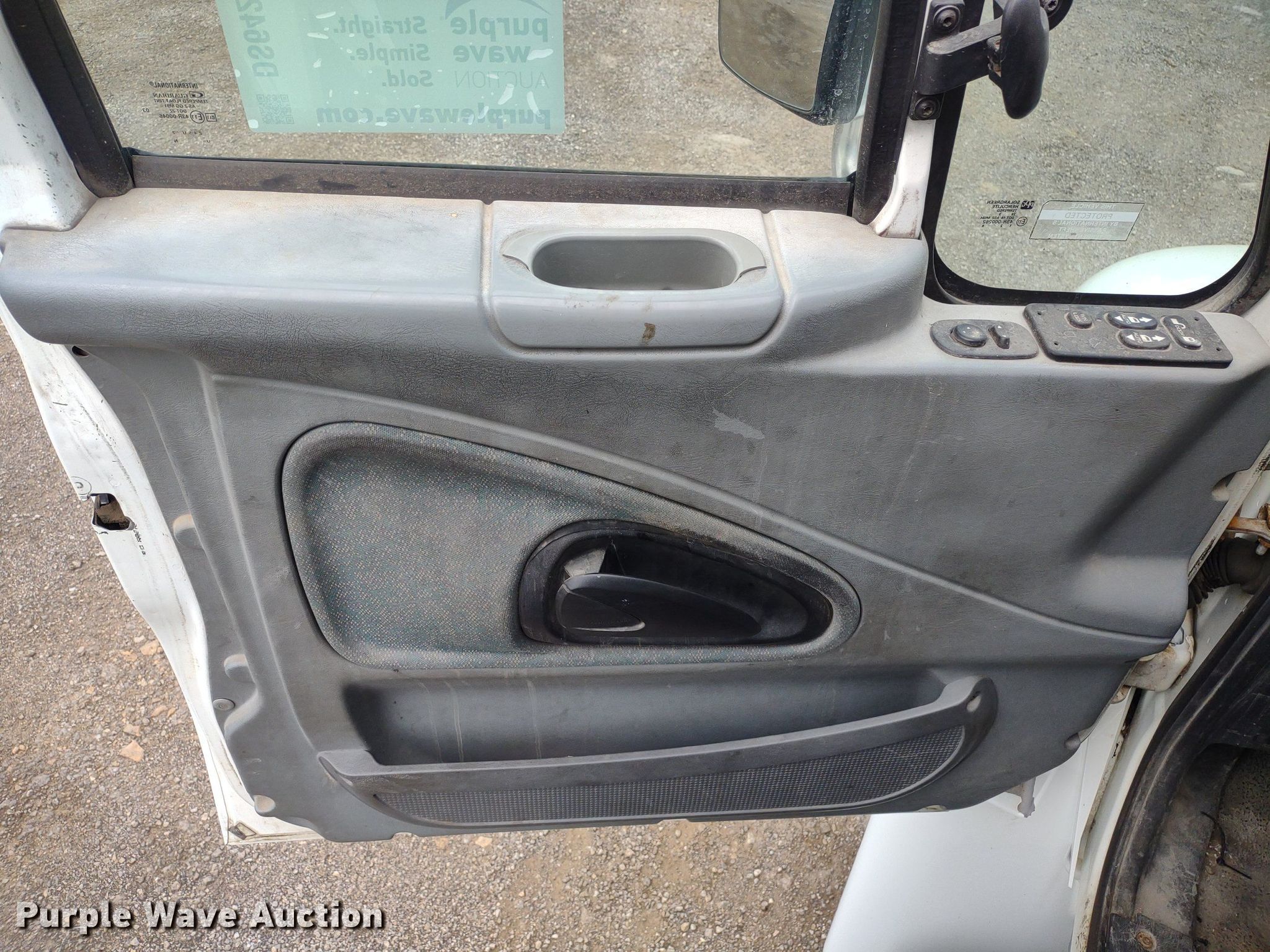2004 International 4300 box truck. Miles: 536,410 on odometer, Hours: 13,558 on meter, VIN: 1HTMMAAM14H678585, Unit #: 2049. Engine International DT466, Displacement: 7.6L, Cylinders: 6, Fuel type: Diesel. Transmission Automatic. Chassis Axles: Single, Suspension: Spring, Brakes: Hydraulic. Interior AC, Heat, Heated mirrors, Power windows, Power locks, Cruise control, Auxiliary controls. Features Box bed Brown 491714221, 22' L x 96" W x 102" H, Floor: Wood, End gate lift Maxon RC-33, Capacity: 3,000 lbs.. Tires Front: 11R22.5, Rear: 275/70R22.5. Sunflower Paving Inc./RD Johnson Excavating. 4123 Northeast Seward Avenue. Topeka, KS 66616