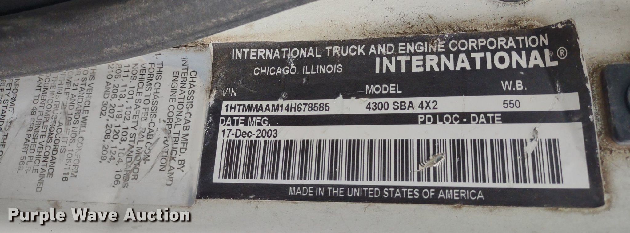 Purple Wave is selling a used Box Truck in Kansas. This item is a 2004 International 4300 box truck with the following: Miles: 536,410 on odometer, Hours: 13,558 on meter, VIN: 1HTMMAAM14H678585, Unit #: 2049