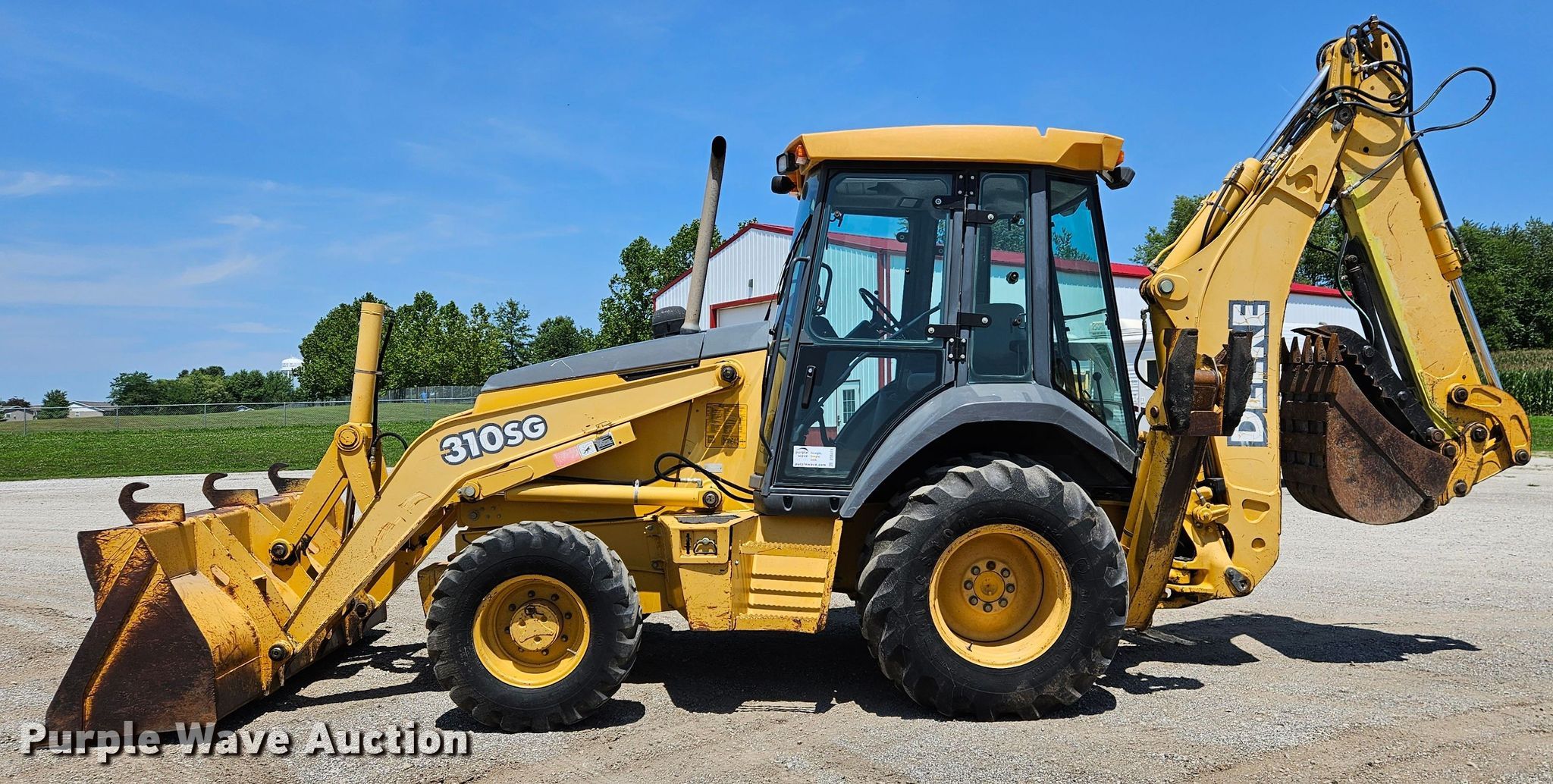 2003 John Deere 310SG backhoe. Hours: 2,968 on meter, Serial: TO310SG920638. Engine John Deere 4045TT, Displacement: 4.5L, Cylinders: 4, Fuel type: Diesel. Transmission Powershift, 4F - 4R. Chassis Four wheel drive, Differential lock. Operators station Enclosed cab, AC, Heat, Backhoe controls: Wobble stick / two stick. Features Loader Bucket Bucket leveler, Capacity: 1.3 cu.yd., Width: 92", Cutting edge: Bolt-on, Backhoe Extendable stick, Thumb: Hydraulic, Bucket Width: 24", Teeth: 5.. Tires Front: 12.5/80-18, Rear: 19.5-24. Lance Construction. Savannah, MO 64485