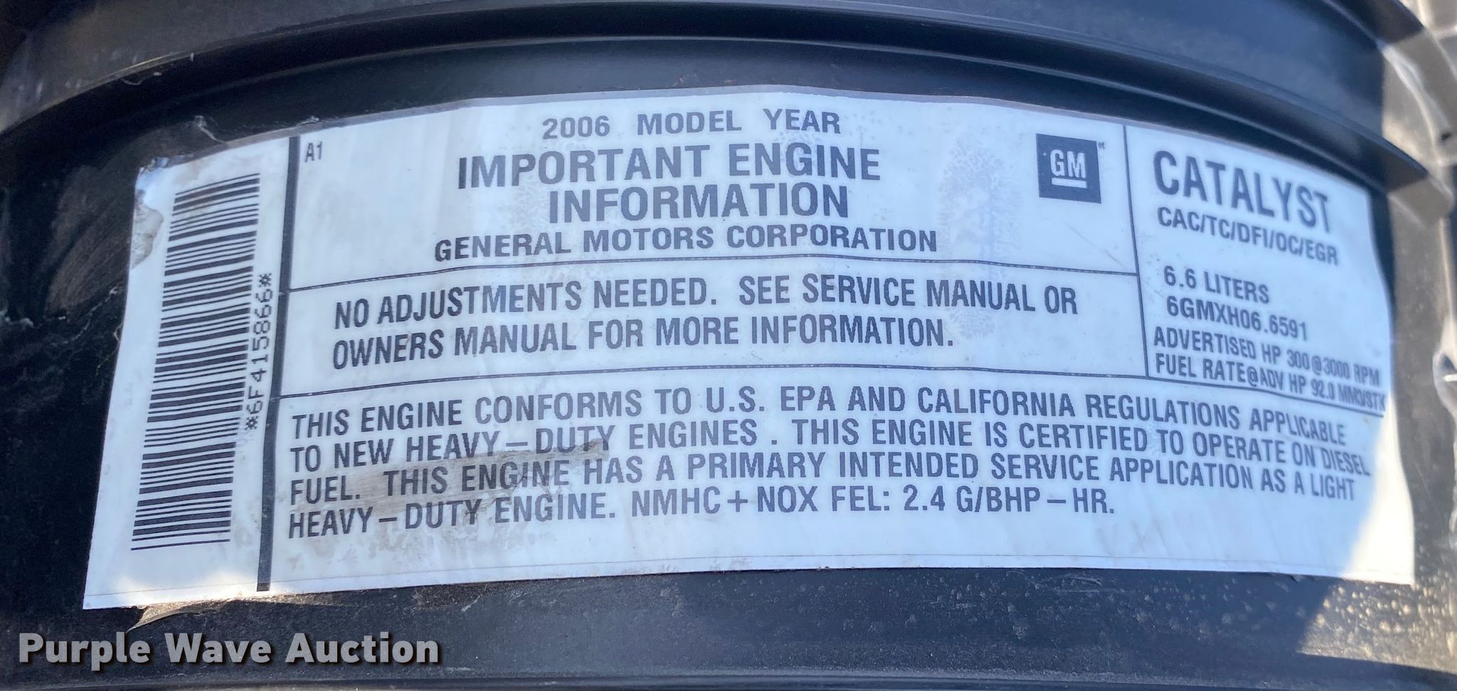 2006 Chevrolet C5500 utility / service truck. Miles: 166,169 on odometer, VIN: 1GBE5C1256F415866. Engine Displacement: 6.6L, Cylinders: 8, Fuel type: Diesel. Transmission Automatic. Chassis Axles: Single, Suspension: Spring, Brakes: Hydraulic. Interior AC, Heat, Cruise control, Brake controller. Features Bed Reading, 11' L x 92" W, Power inverter. Tires Size: 225/70R19.5. Oklahoma title. 15107 North 137th East Avenue. Collinsville, OK 74021