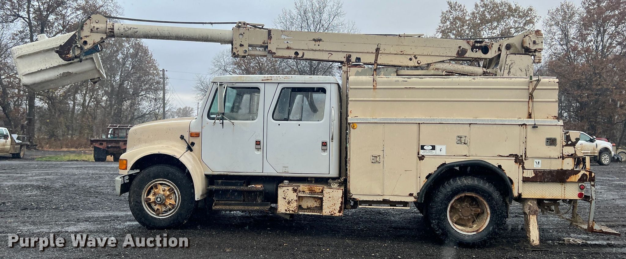 This 1990 International 4700 crew cab bucket truck will sell to the highest bidder regardless of price.